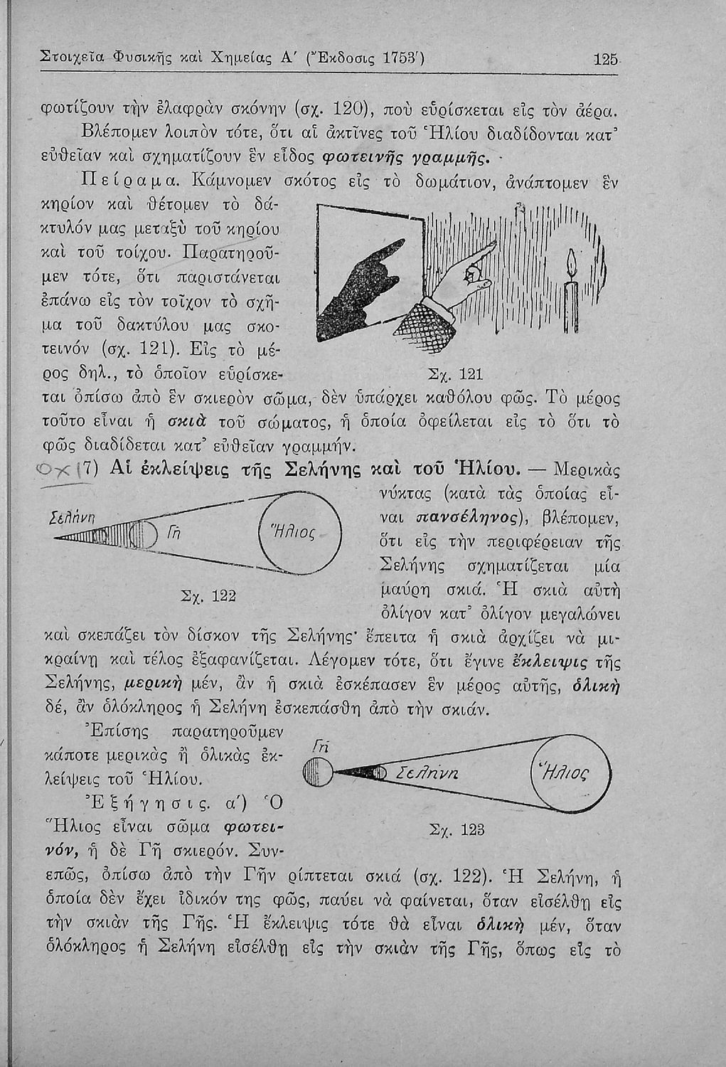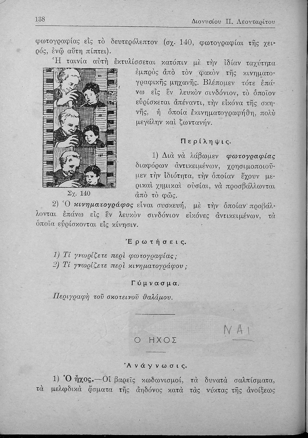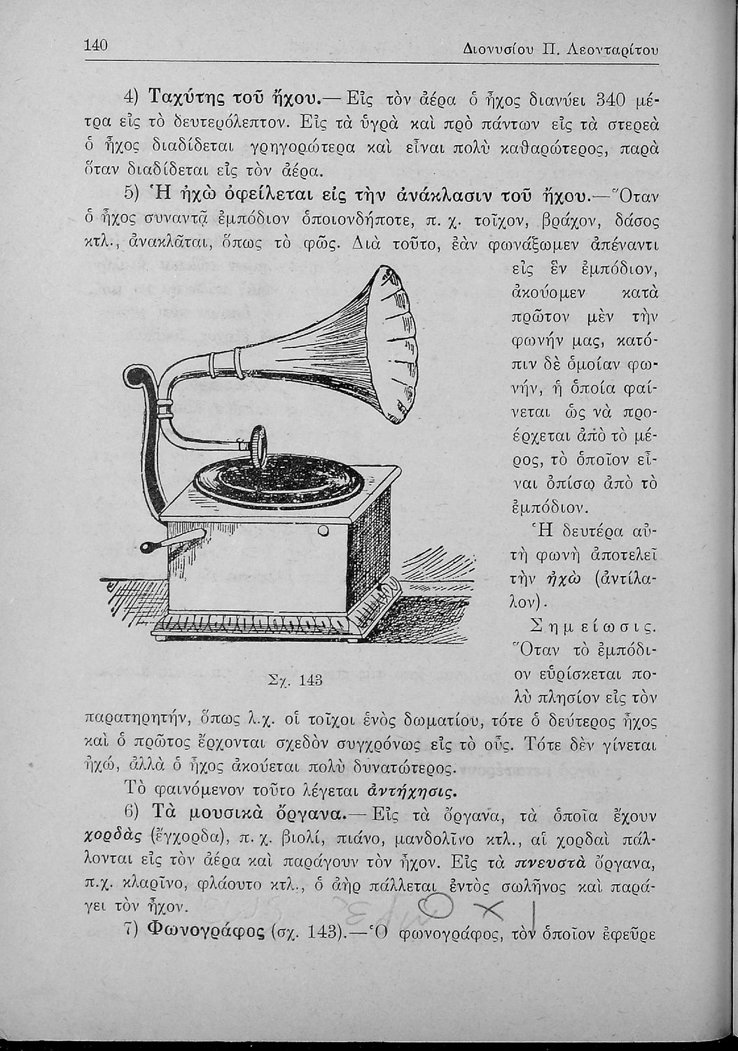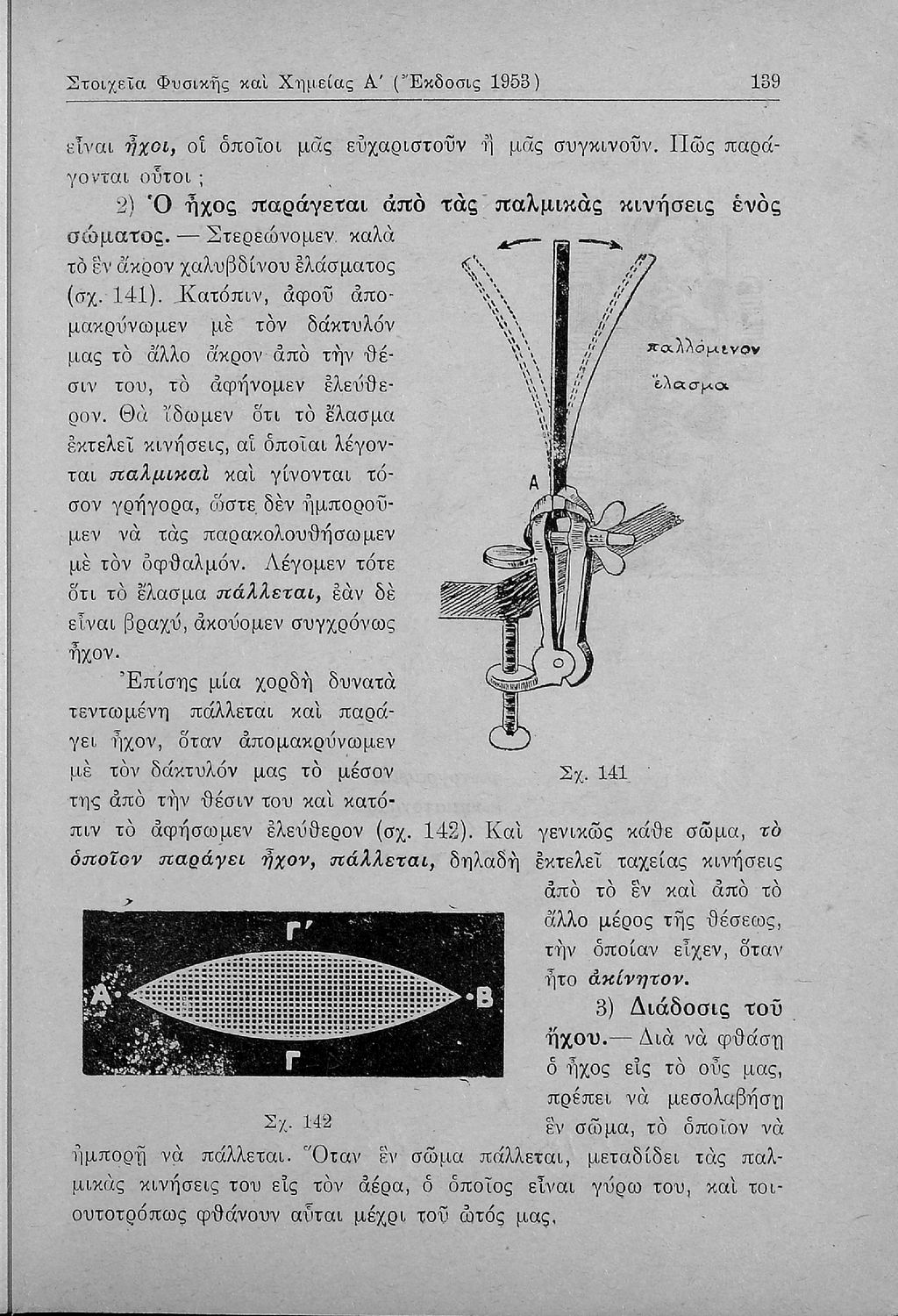 Βαθμίδα εκπαίδευσης: Δευτεροβάθμια Τάξη: Α' Γυμνασίου Μάθημα: Φυσική Γλώσσα: Απλή καθαρεύουσα Παρουσίαση περιεχομένου: Σχολικό εγχειρίδιο της Α΄ Γυμνασίου για το μάθημα της Φυσικής. Παρέχει βασικές γνώσεις της Φυσικής επιστήμης και της Χημείας. Αναλύει τα φαινόμενα της αδράνειας, της βαρύτητας, της υδροστατικής πίεσης κ.α. Όσον αφορά τη Χημεία αναφέρεται στις ιδιότητες των μετάλλων, τα οξέα, τις βάσεις και τα άλατα. Αναφέρεται στην πρακτική εφαρμογή της φυσικής και της χημείας στην καθημερινότητά. Επίσης, περιλαμβάνει πολλά από τα όργανα, που χρησιμοποιούνται στη φυσική. Περιέχει εικόνες και σχεδιαγράμματα τα οποία βοηθούν τη διδασκαλία. |
