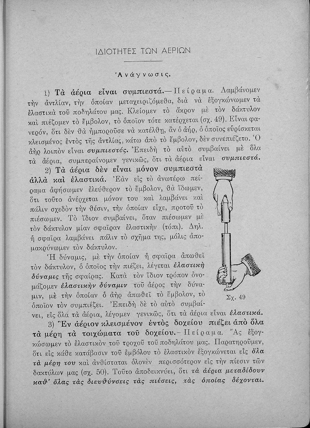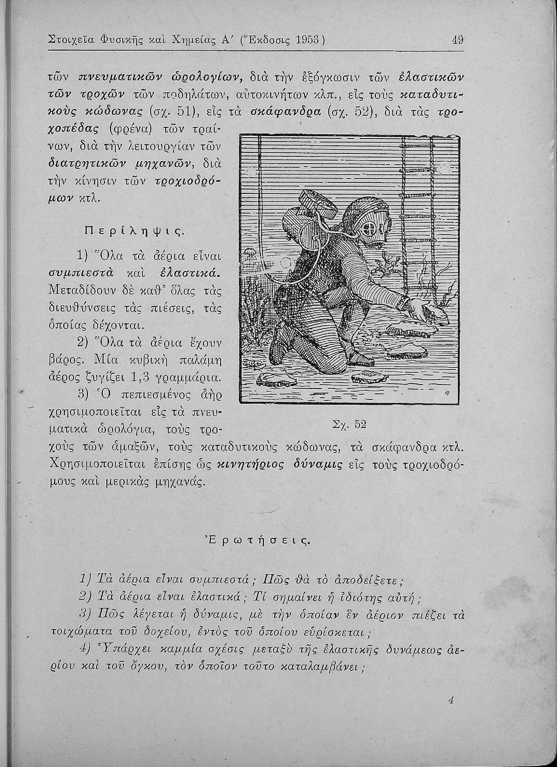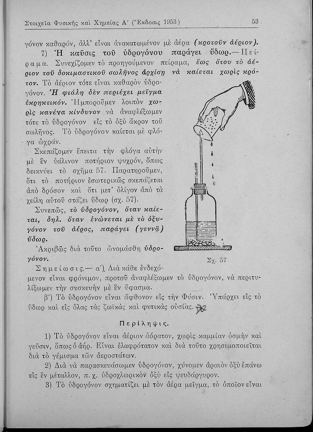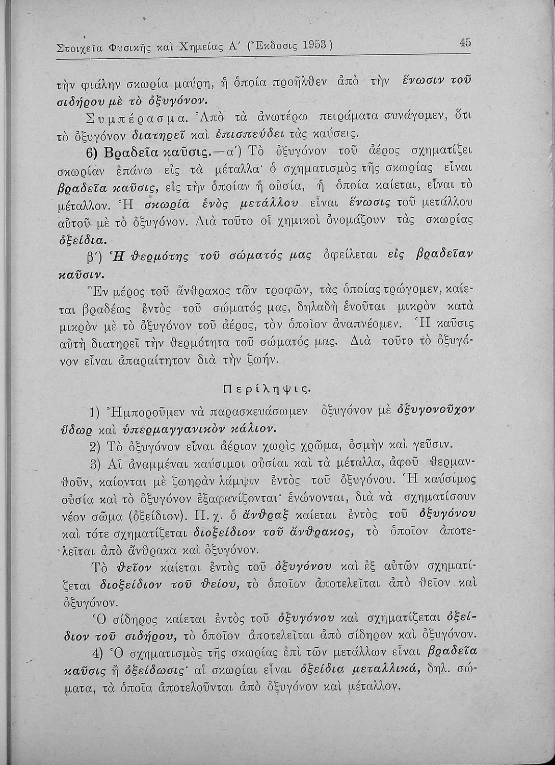 Σχολικό εγχειρίδιο Φυσικής και Χημείας που προσδιορίζει τη μηχανική στερεών σωμάτων, αναφέρει τις ιδιότητες ποικίλων στοιχείων της φύσης (οξυγόνο, υδρογόνο, αέρα, νερό) περιγράφοντας τις χημικές ενώσεις που ...
