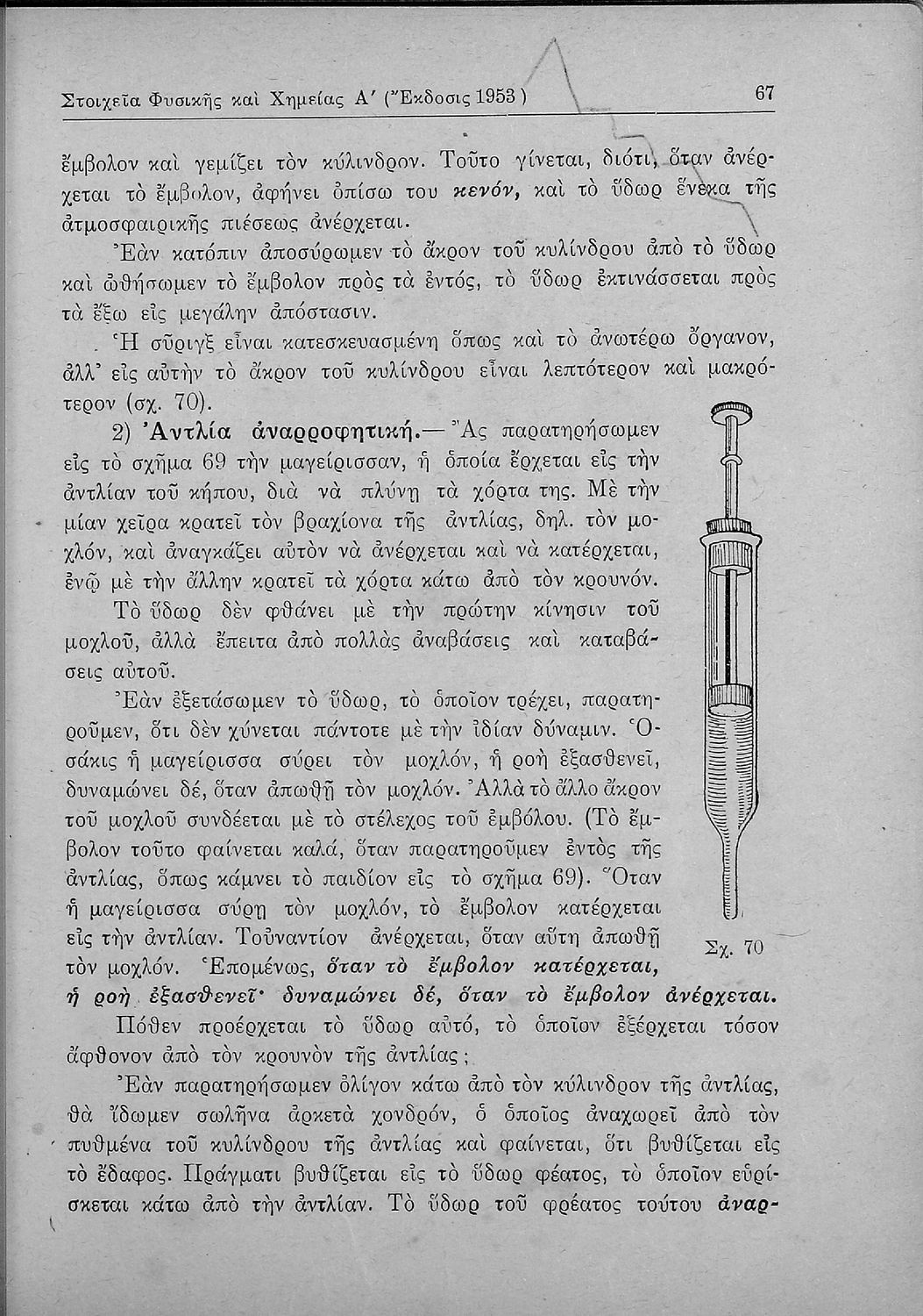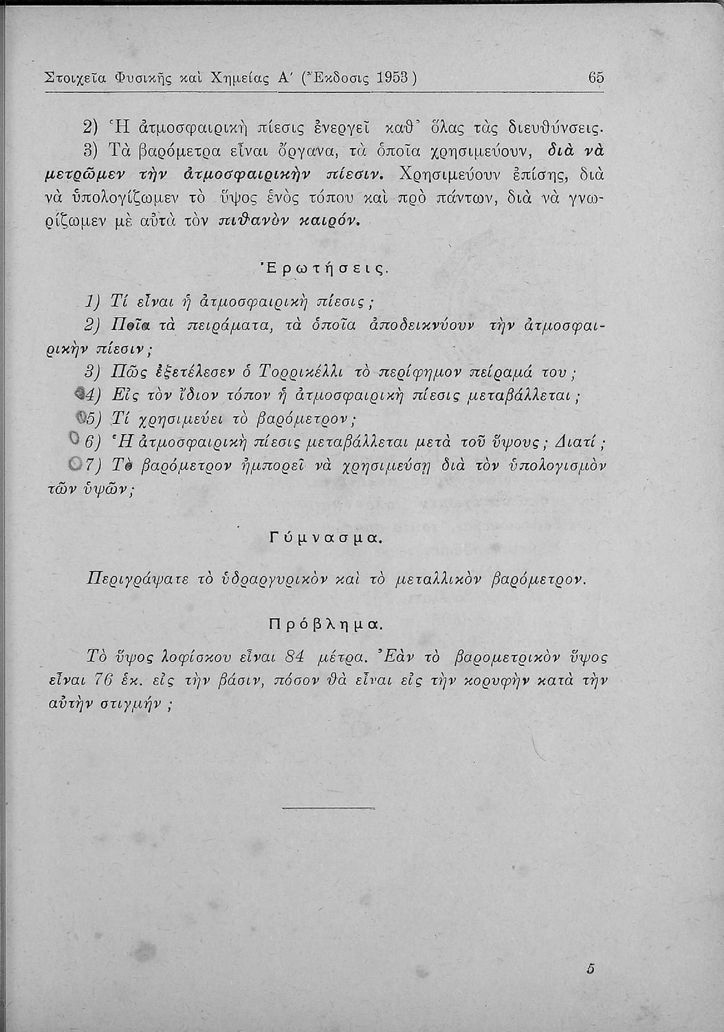 Σχολικό εγχειρίδιο Φυσικής και Χημείας που προσδιορίζει τη μηχανική στερεών σωμάτων, αναφέρει τις ιδιότητες ποικίλων στοιχείων της φύσης (οξυγόνο, υδρογόνο, αέρα, νερό) περιγράφοντας τις χημικές ενώσεις που ...