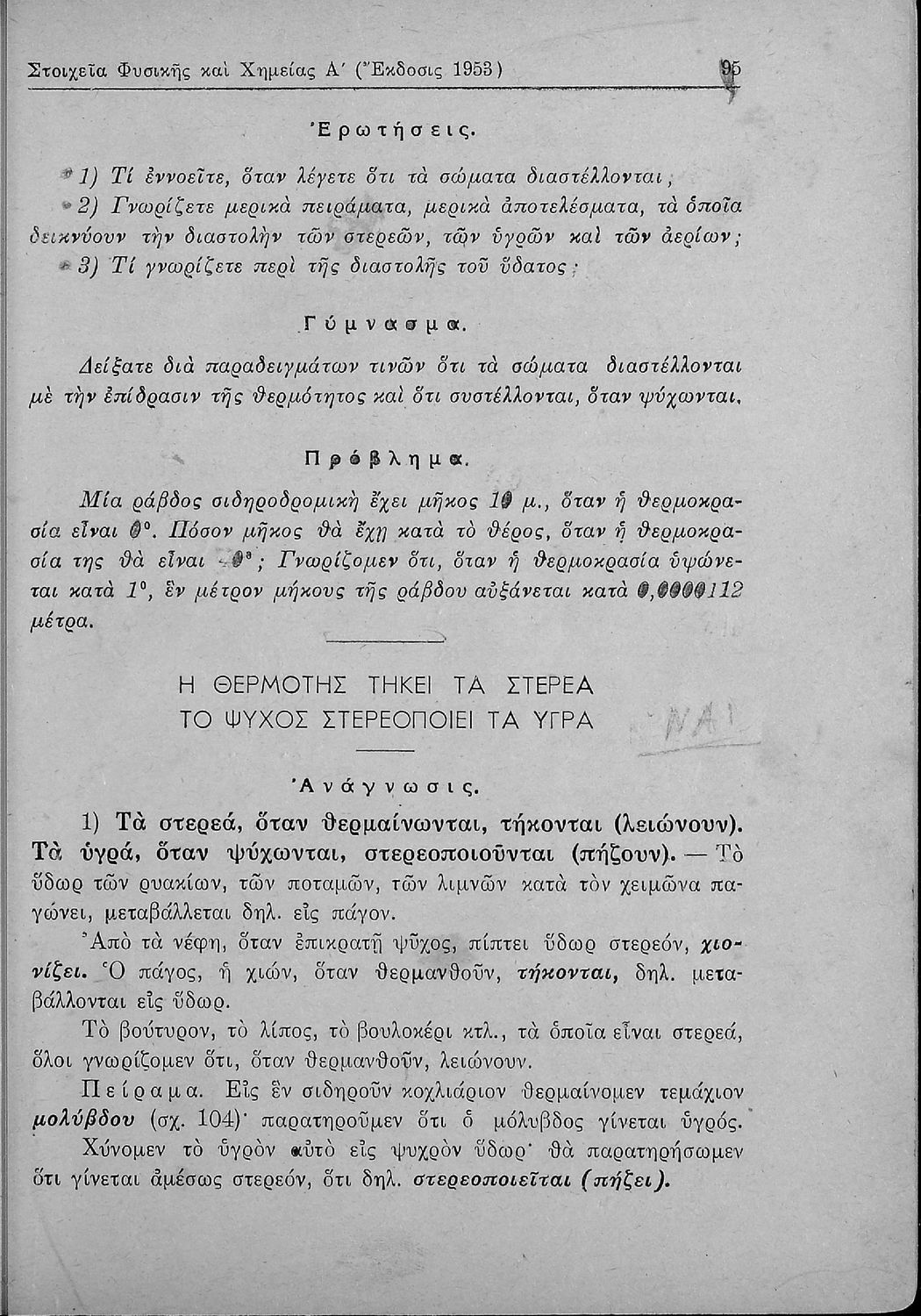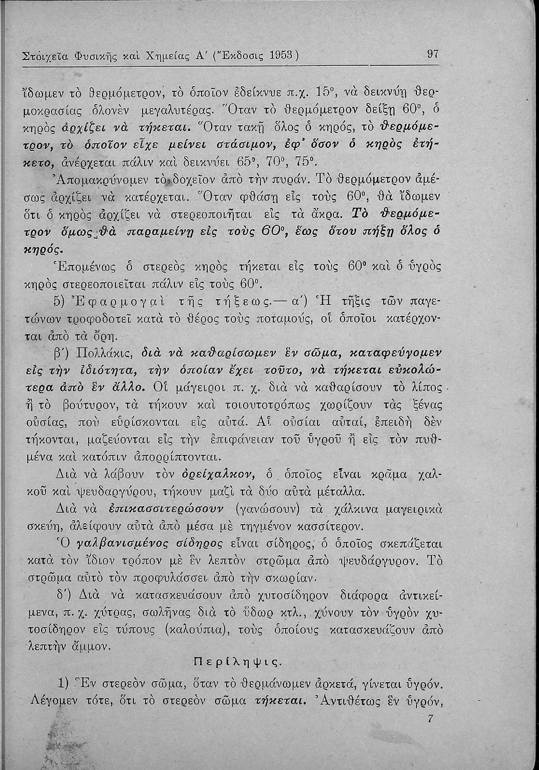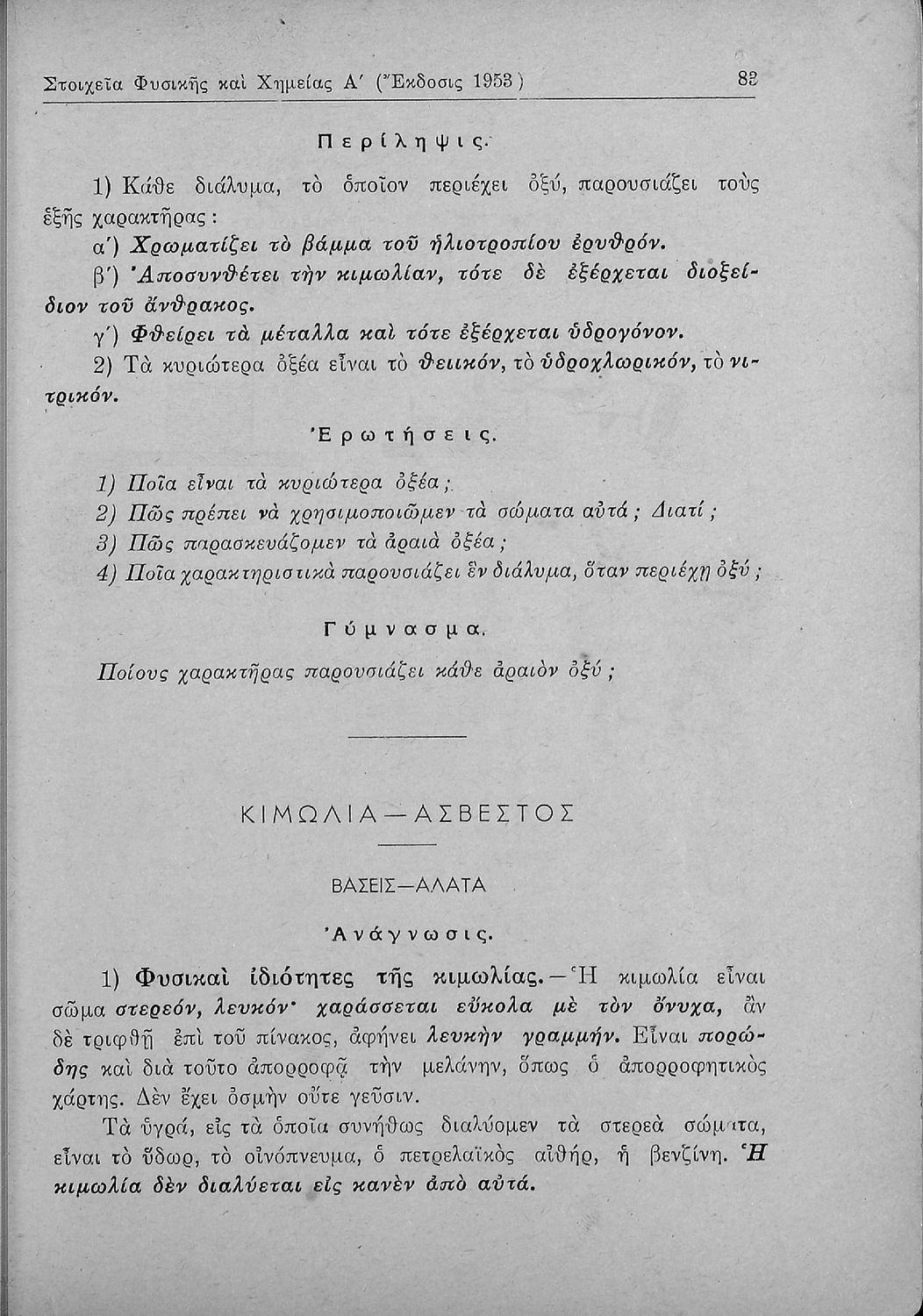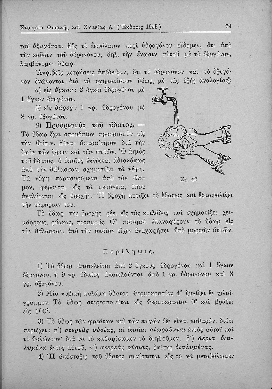 Σχολικό εγχειρίδιο Φυσικής και Χημείας που προσδιορίζει τη μηχανική στερεών σωμάτων, αναφέρει τις ιδιότητες ποικίλων στοιχείων της φύσης (οξυγόνο, υδρογόνο, αέρα, νερό) περιγράφοντας τις χημικές ενώσεις που ...
