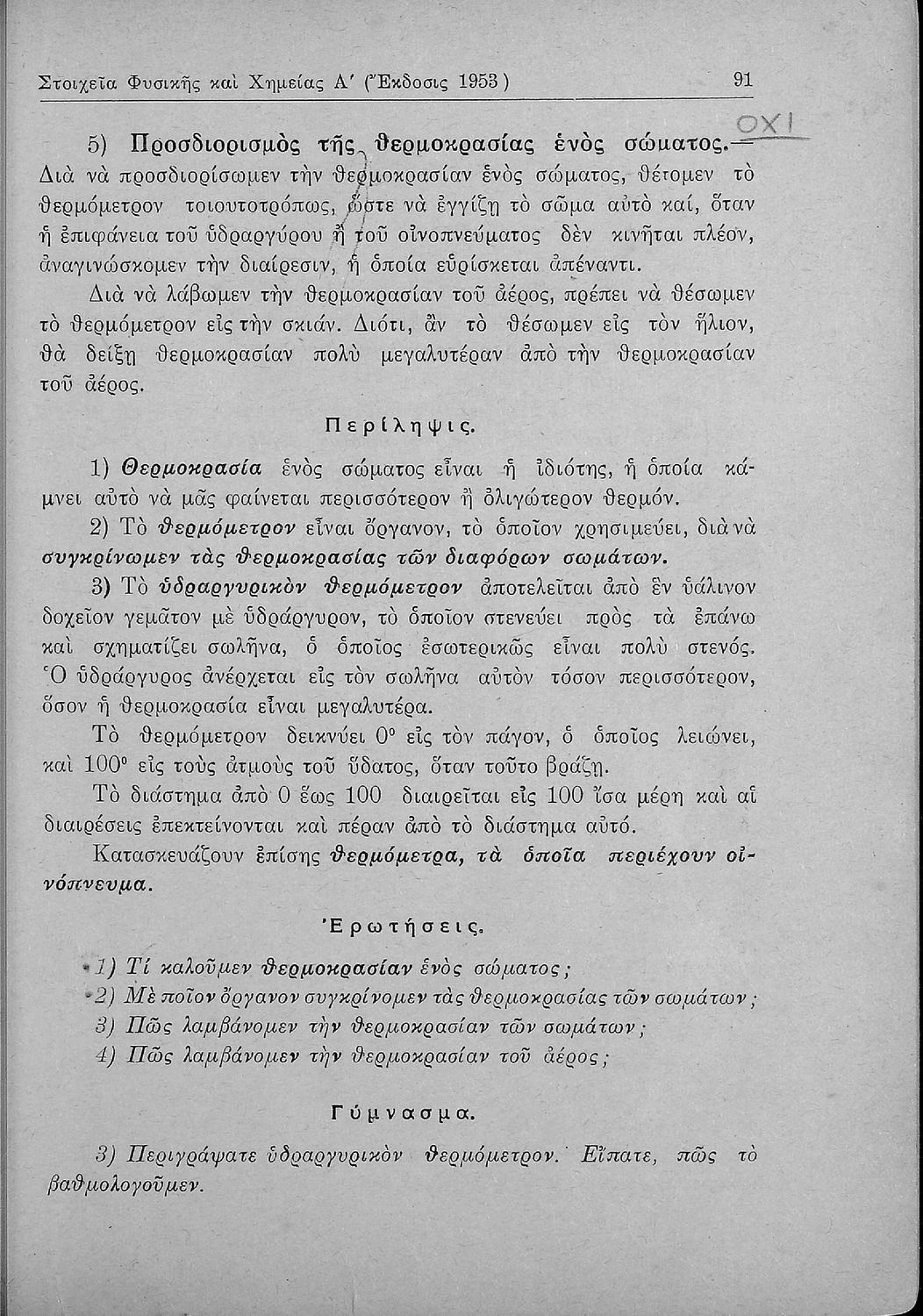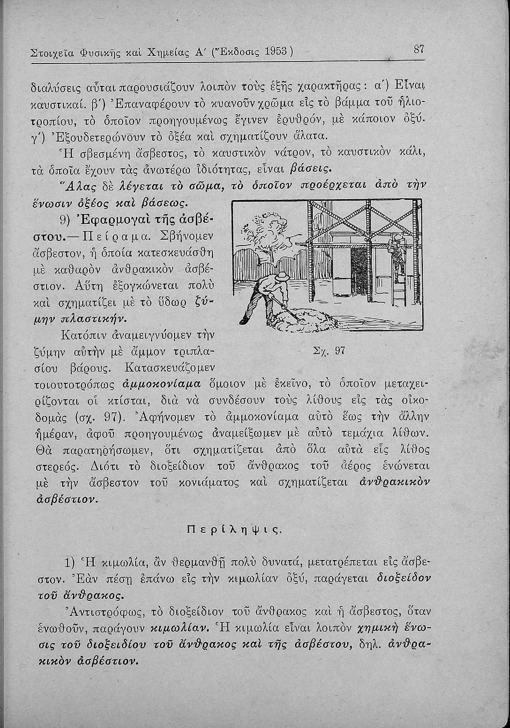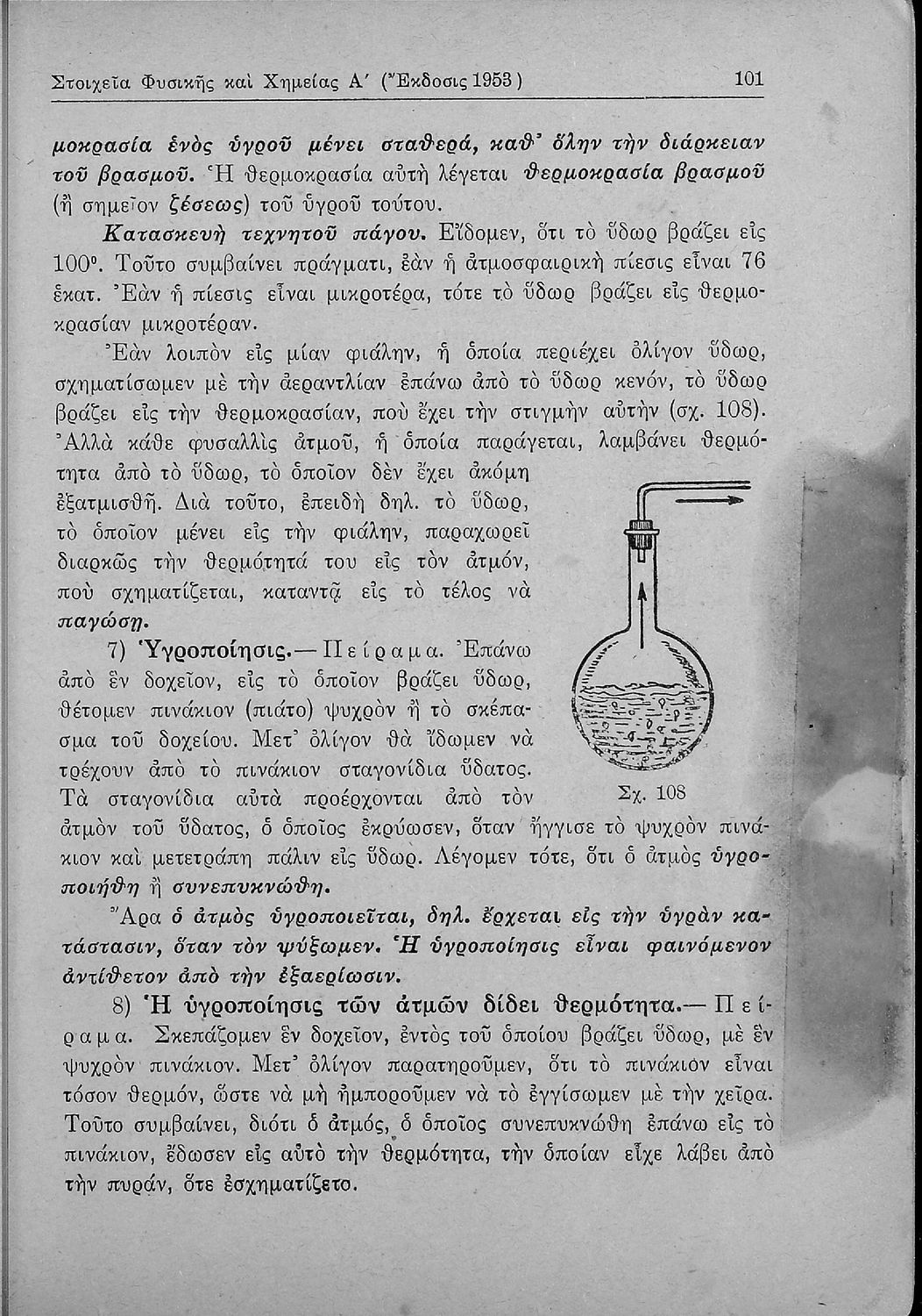 Σχολικό εγχειρίδιο Φυσικής και Χημείας που προσδιορίζει τη μηχανική στερεών σωμάτων, αναφέρει τις ιδιότητες ποικίλων στοιχείων της φύσης (οξυγόνο, υδρογόνο, αέρα, νερό) περιγράφοντας τις χημικές ενώσεις που ...