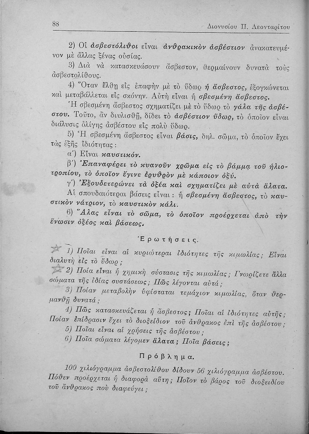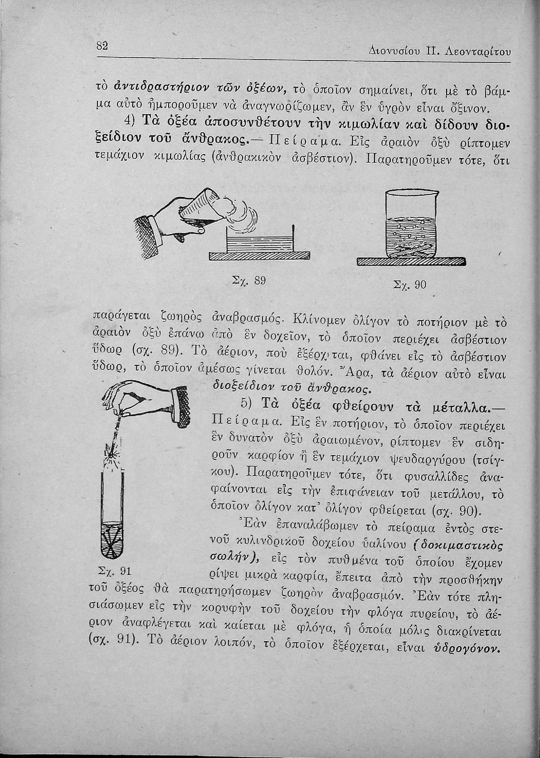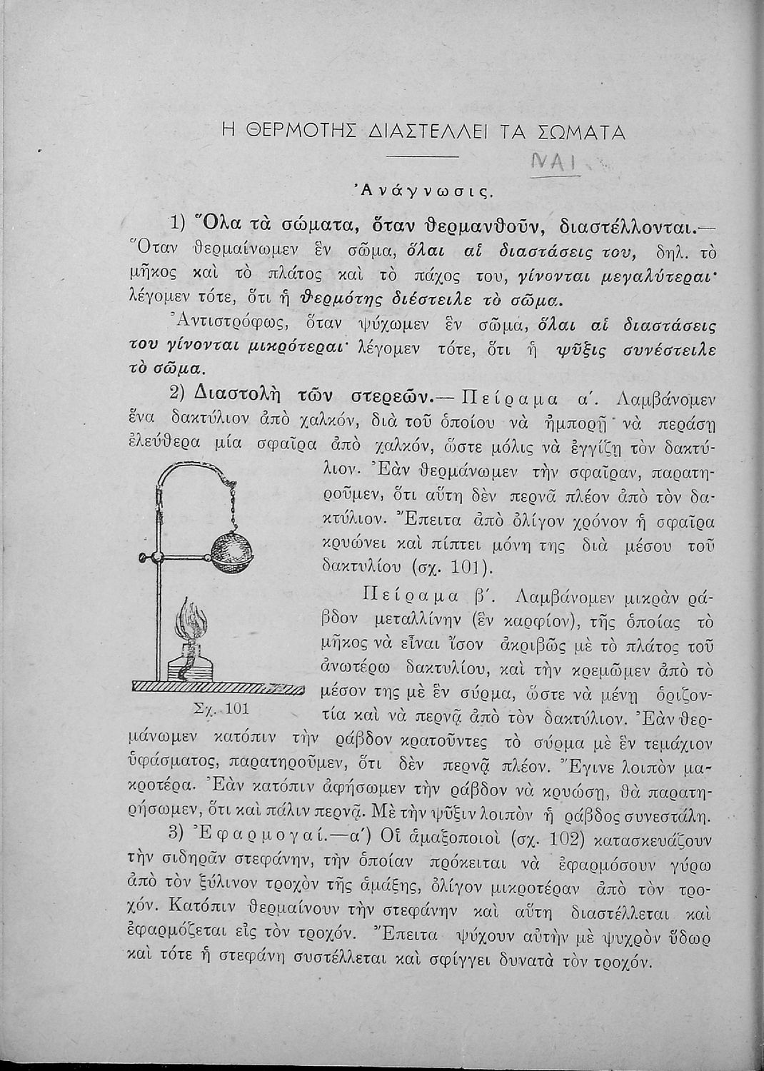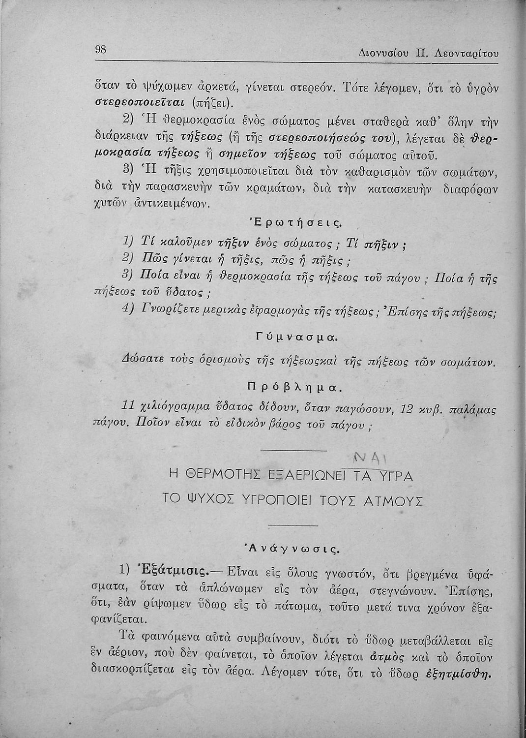 Σχολικό εγχειρίδιο Φυσικής και Χημείας που προσδιορίζει τη μηχανική στερεών σωμάτων, αναφέρει τις ιδιότητες ποικίλων στοιχείων της φύσης (οξυγόνο, υδρογόνο, αέρα, νερό) περιγράφοντας τις χημικές ενώσεις που ...