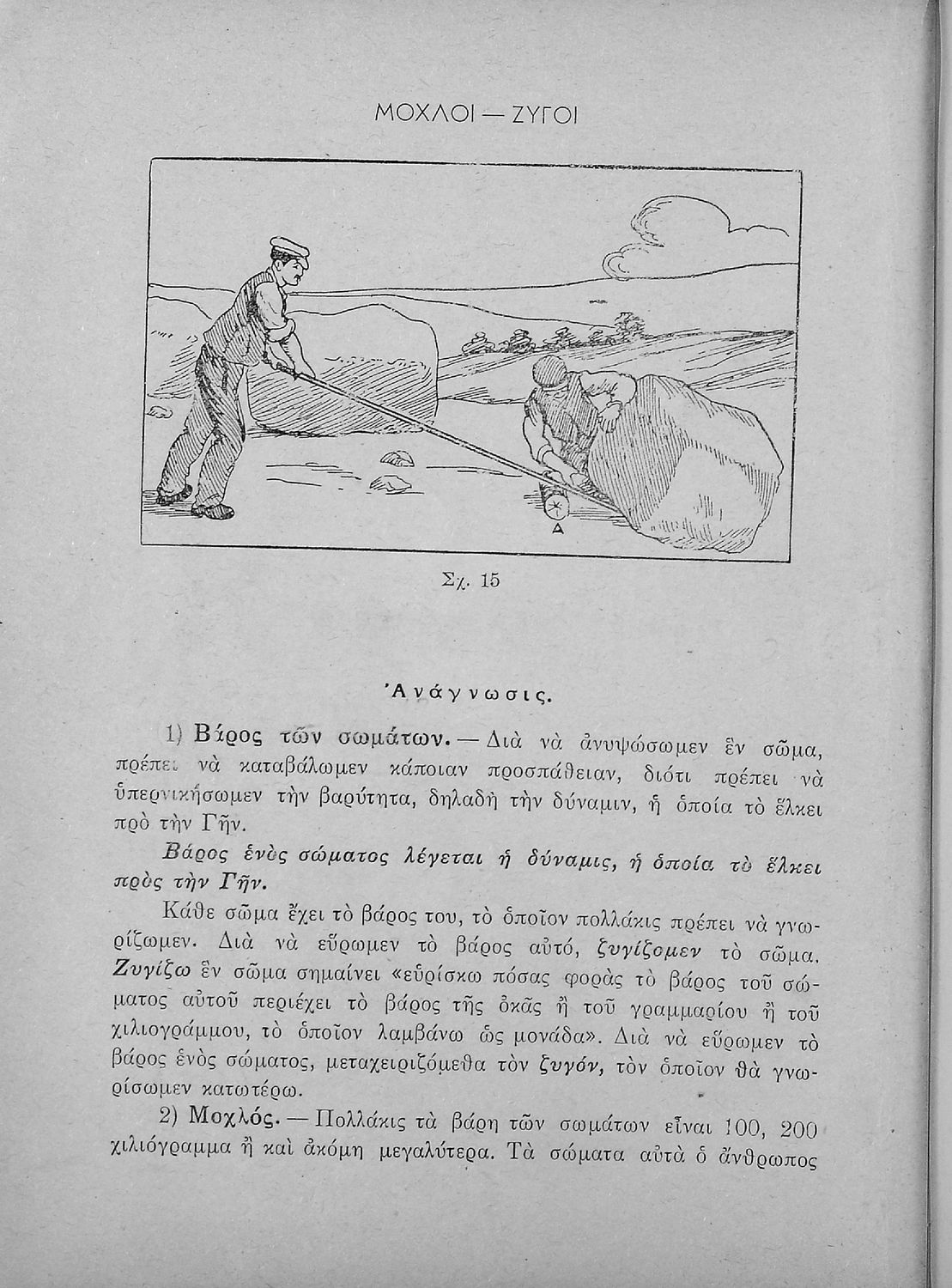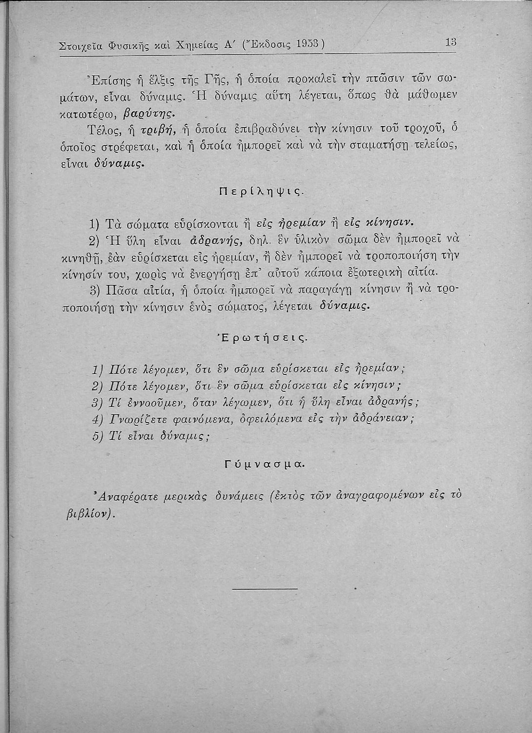 Σχολικό εγχειρίδιο Φυσικής και Χημείας που προσδιορίζει τη μηχανική στερεών σωμάτων, αναφέρει τις ιδιότητες ποικίλων στοιχείων της φύσης (οξυγόνο, υδρογόνο, αέρα, νερό) περιγράφοντας τις χημικές ενώσεις που ...