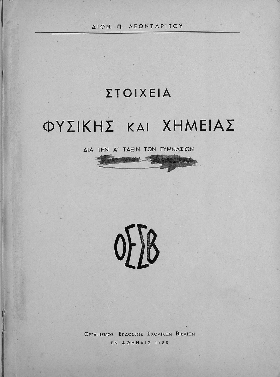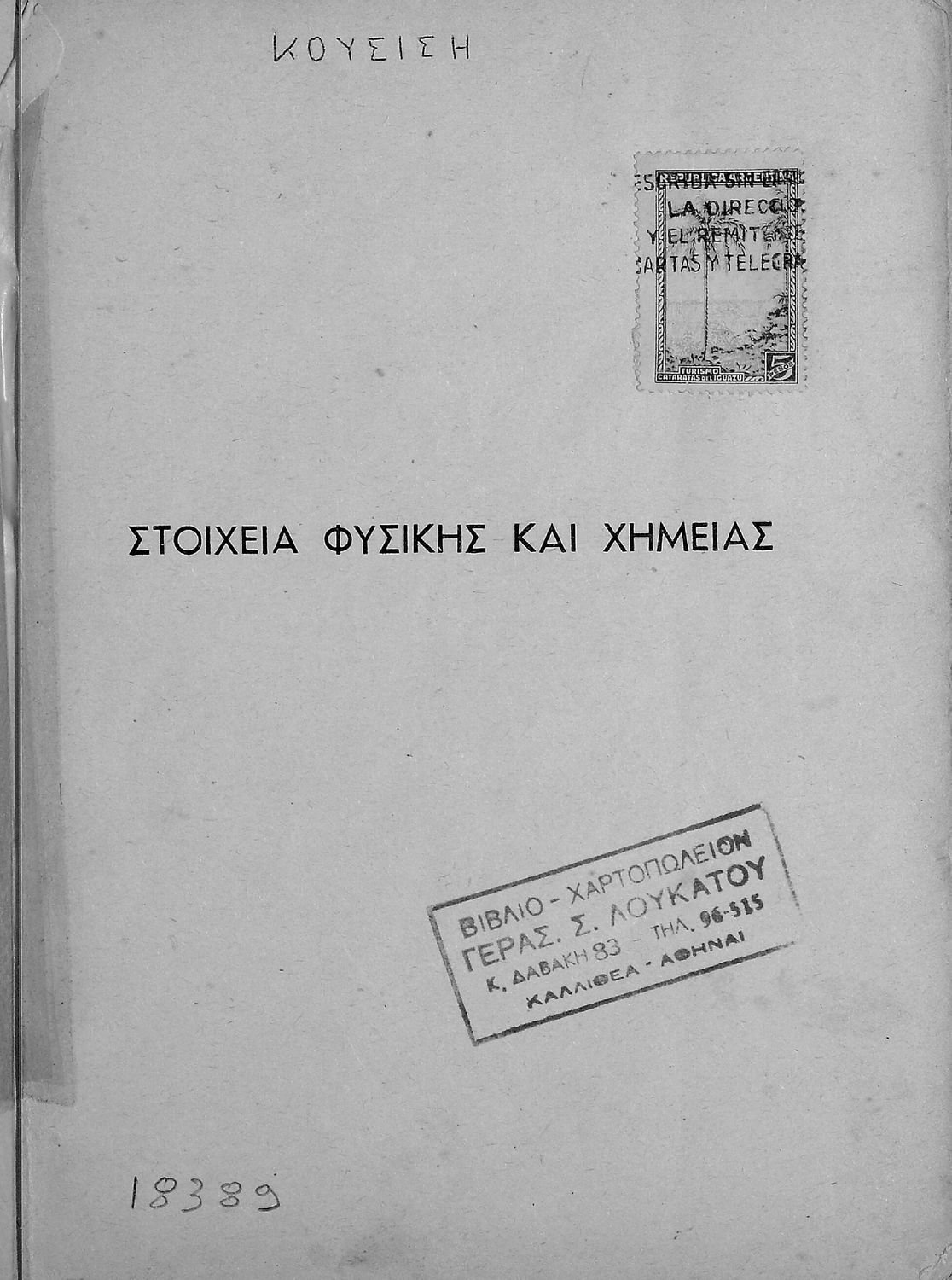 Τίτλος: Στοιχεία Φυσικής και Χημείας δια την Α΄ Τάξιν των Γυμνασίων
