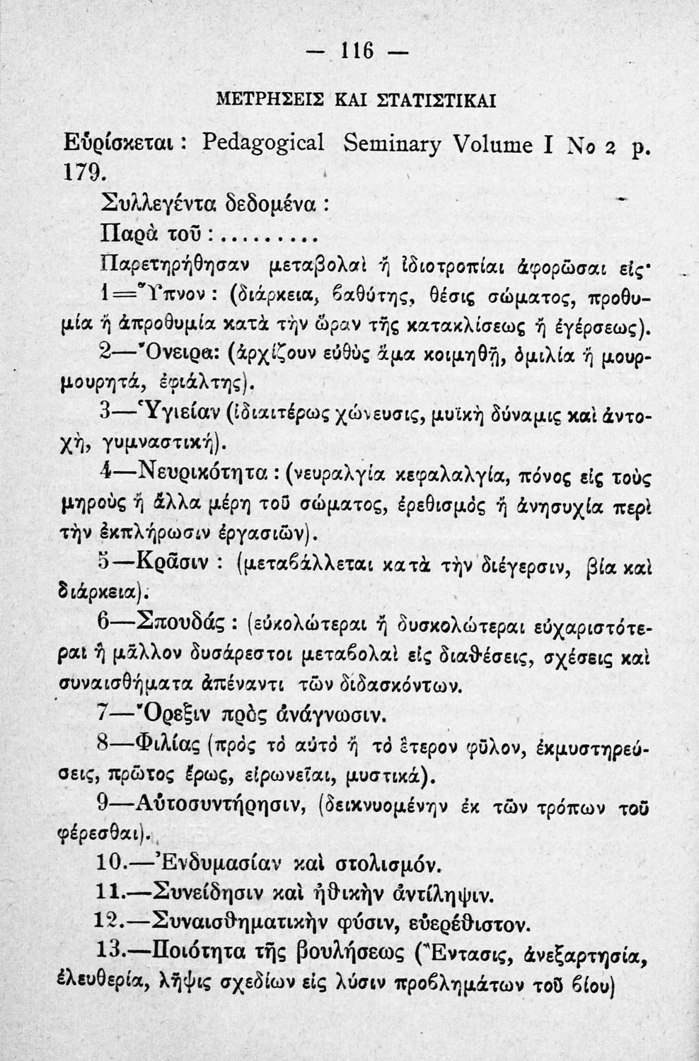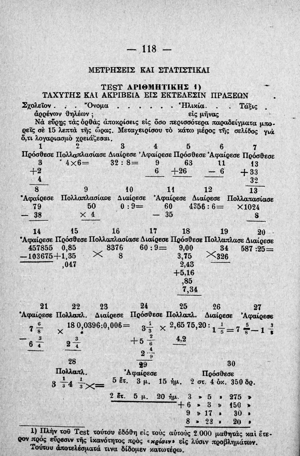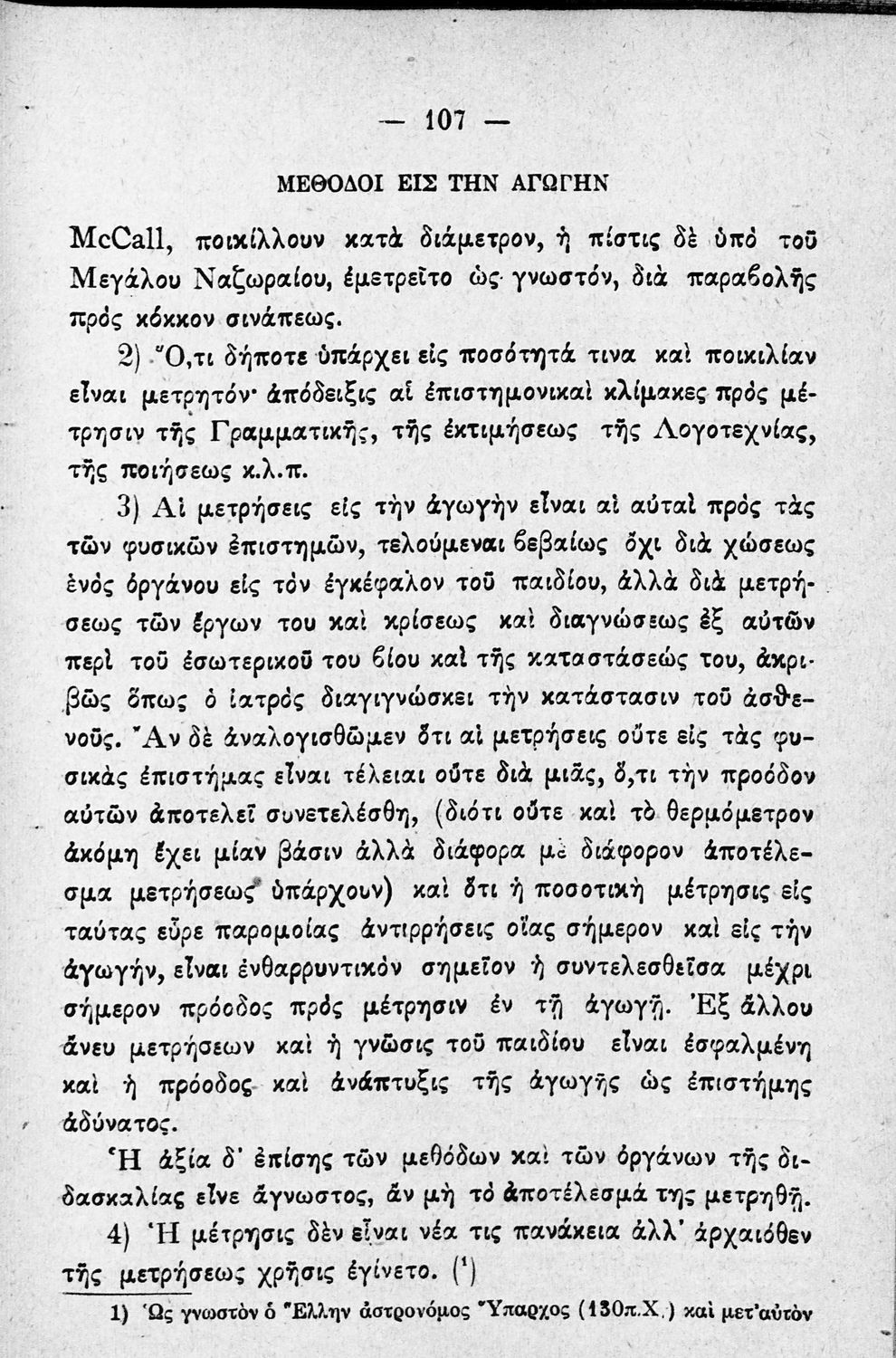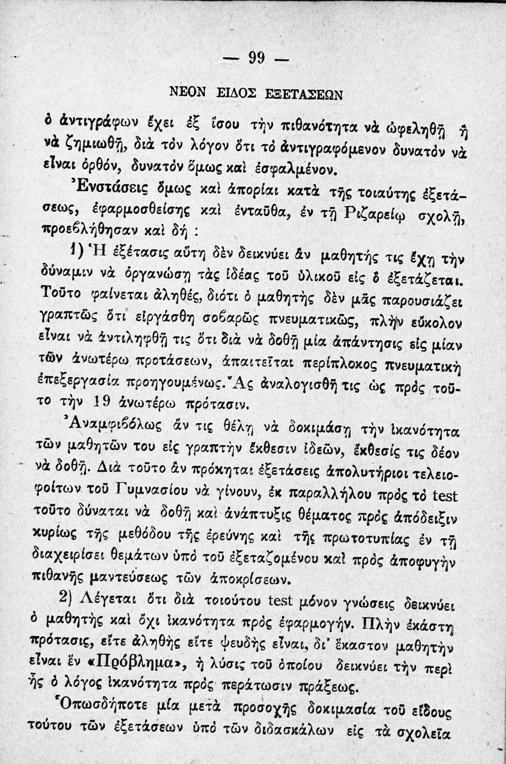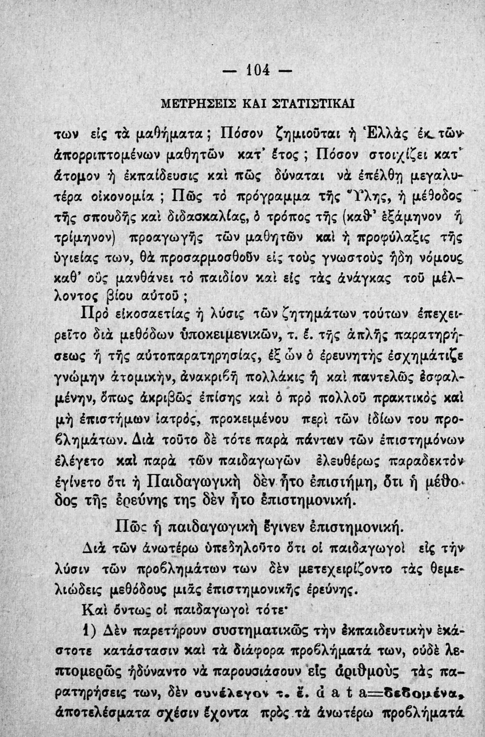 Παρουσίαση περιεχομένου: Παιδαγωγικό βοήθημα που αναφέρεται στη δημοκρατική μέθοδο εργασίας στο σχολείο, στο νέο είδος εξετάσεων, στις μετρήσεις και στατιστικές μεθόδους καθώς και στις πνευματικές και παιδευτικές μετρήσεις των Ελληνόπουλων. Ο συγγραφέας ήταν Επιμελητής της Πειραματικής Παιδαγωγικής του Πανεπιστημίου Αθηνών.