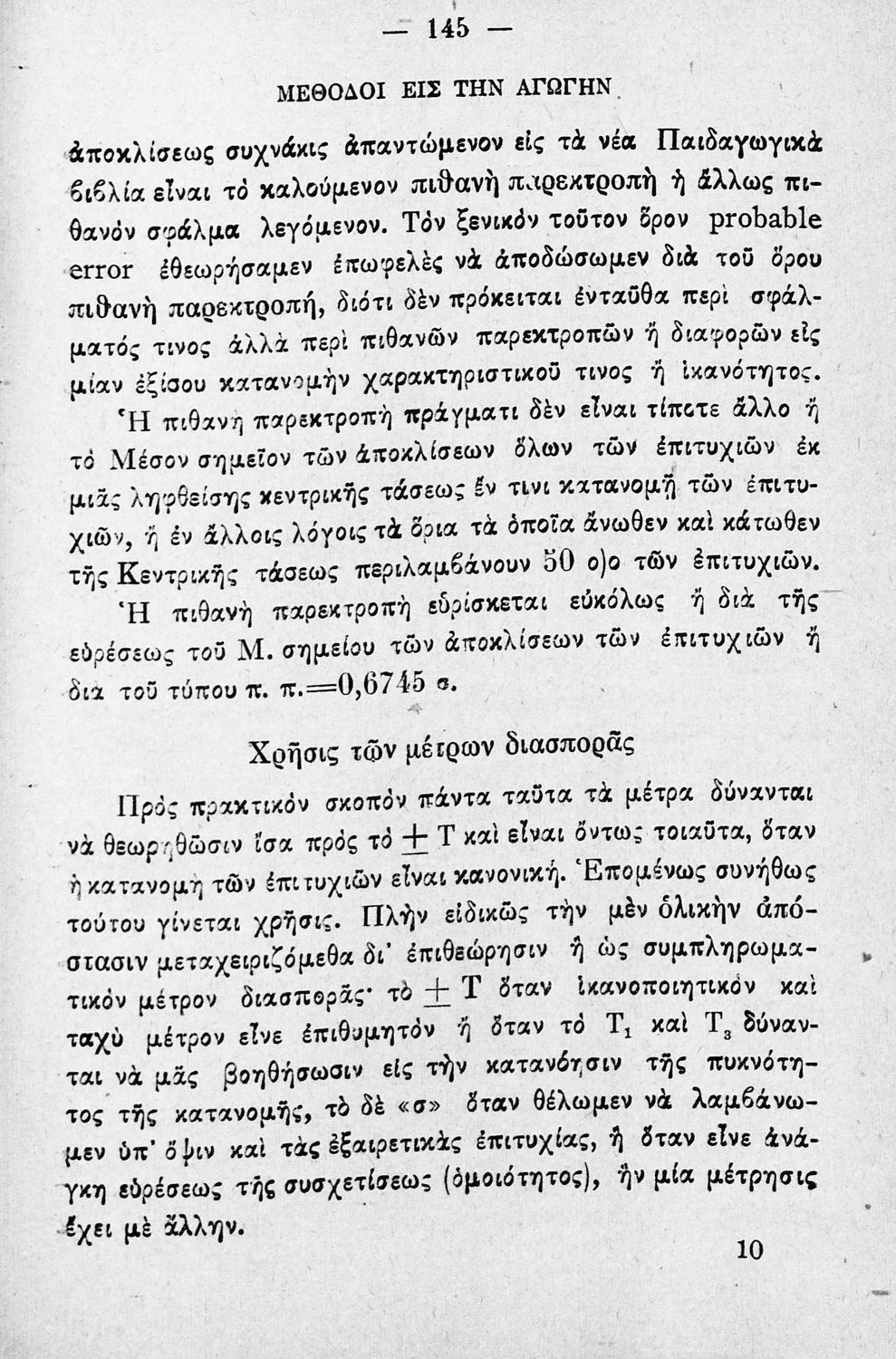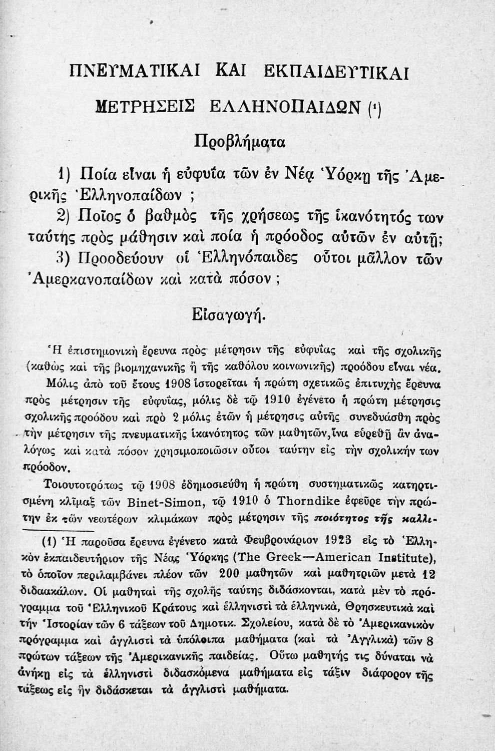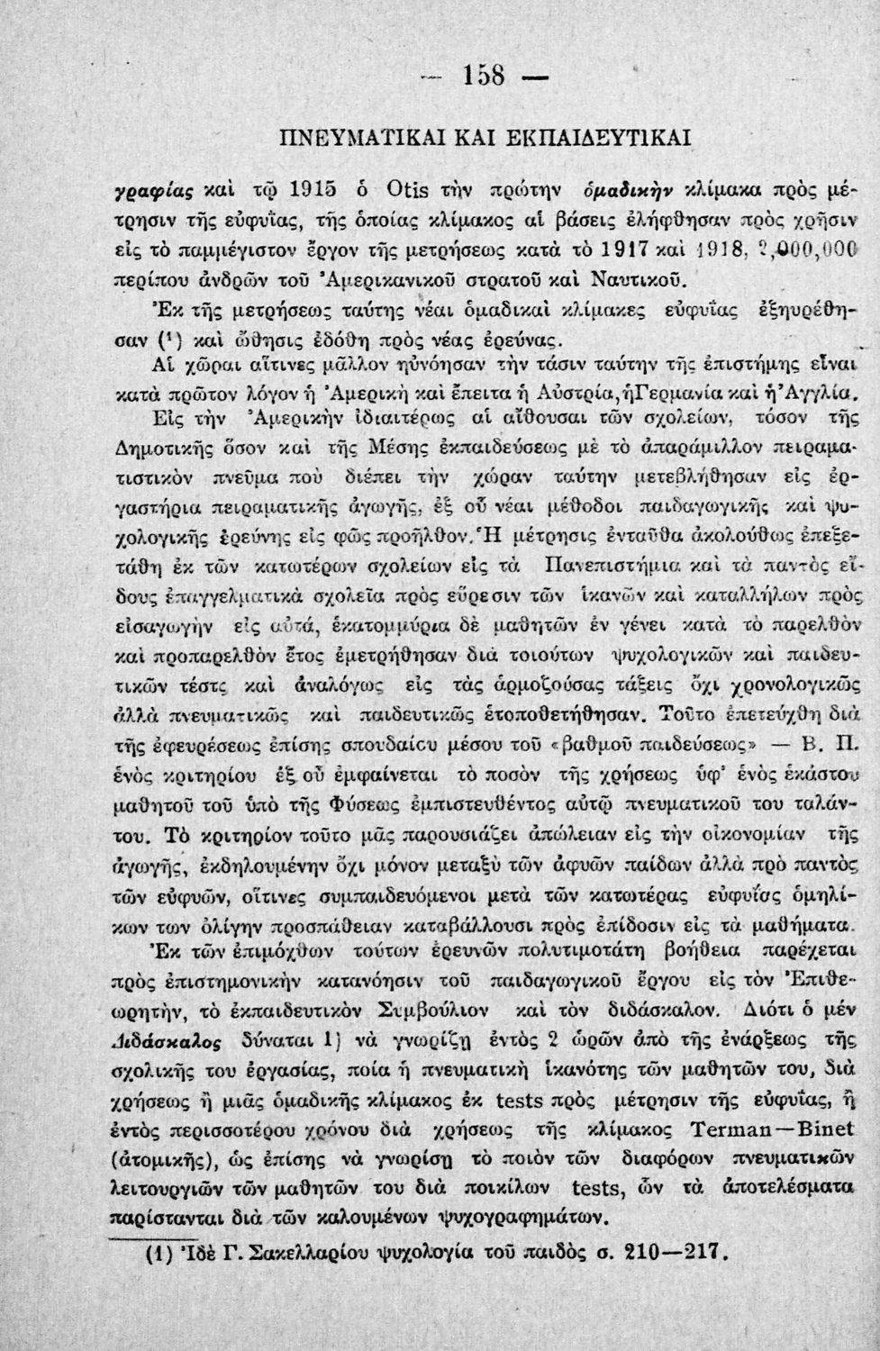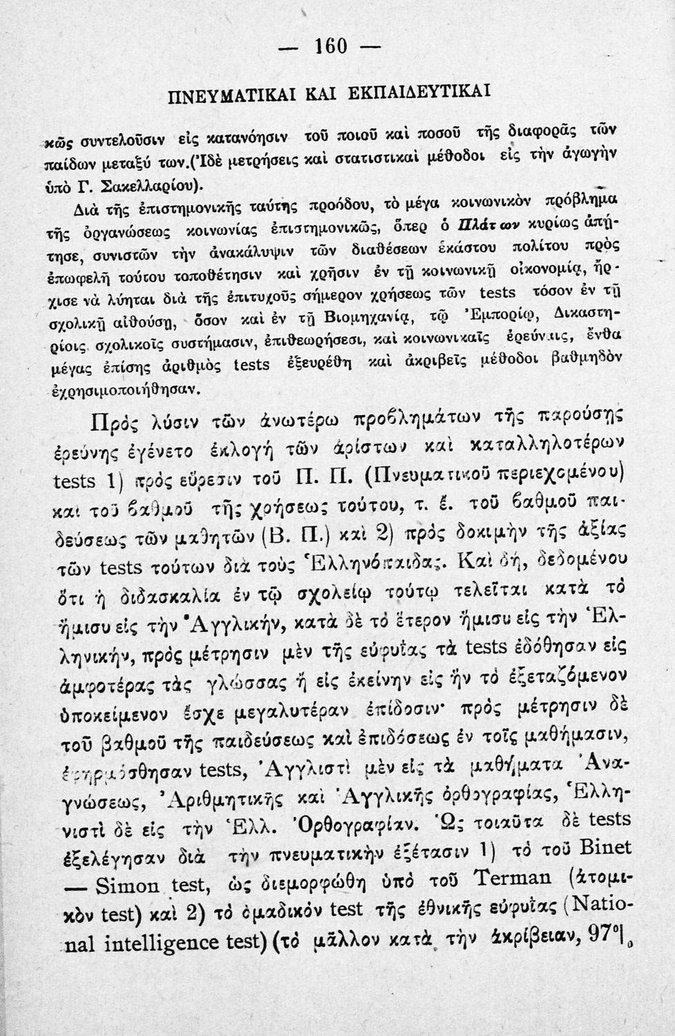 Παιδαγωγικό βοήθημα που αναφέρεται στη δημοκρατική μέθοδο εργασίας στο σχολείο, στο νέο είδος εξετάσεων, στις μετρήσεις και στατιστικές μεθόδους καθώς και στις πνευματικές και παιδευτικές μετρήσεις των Ελληνόπουλων. Ο συγγραφέας ήταν Επιμελητής της Πειραματικής Παιδαγωγικής του Πανεπιστημίου Αθηνών.