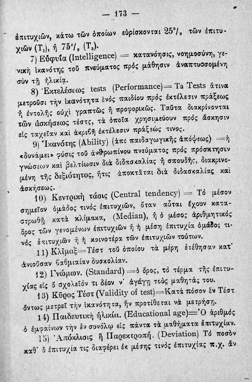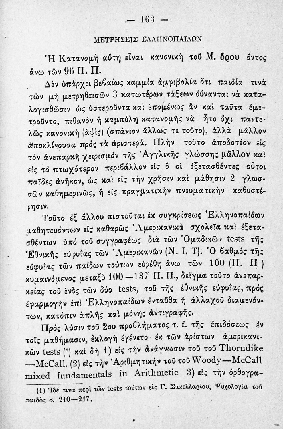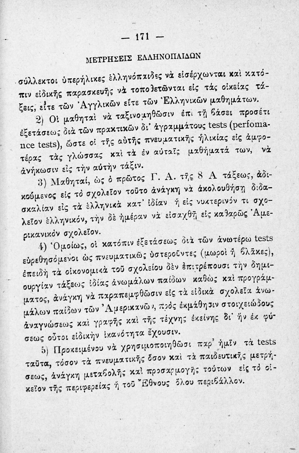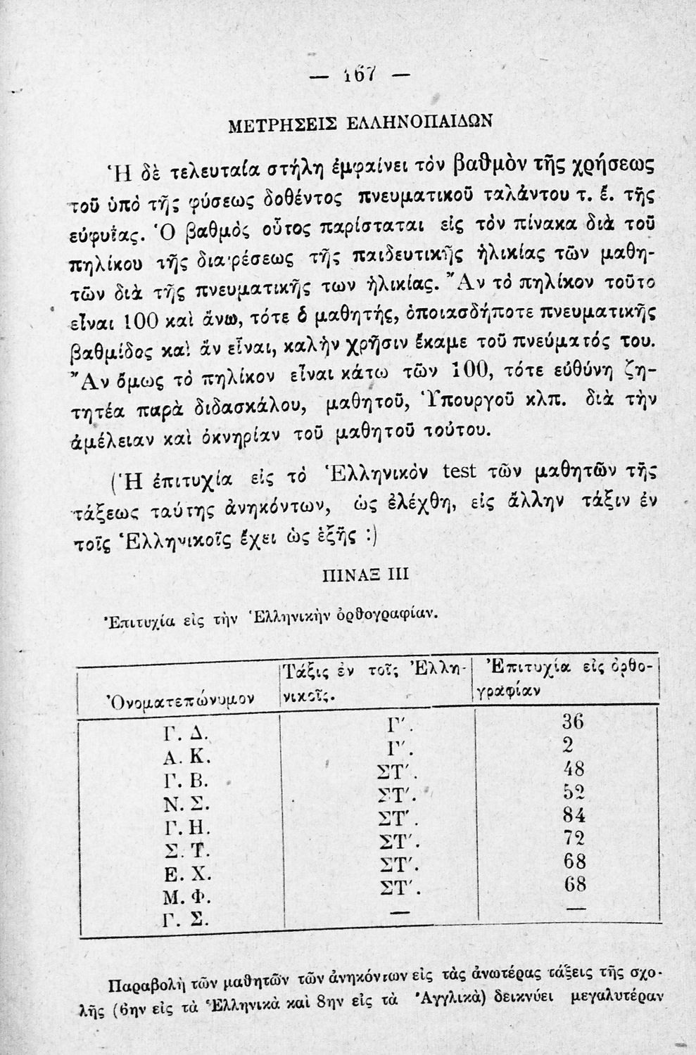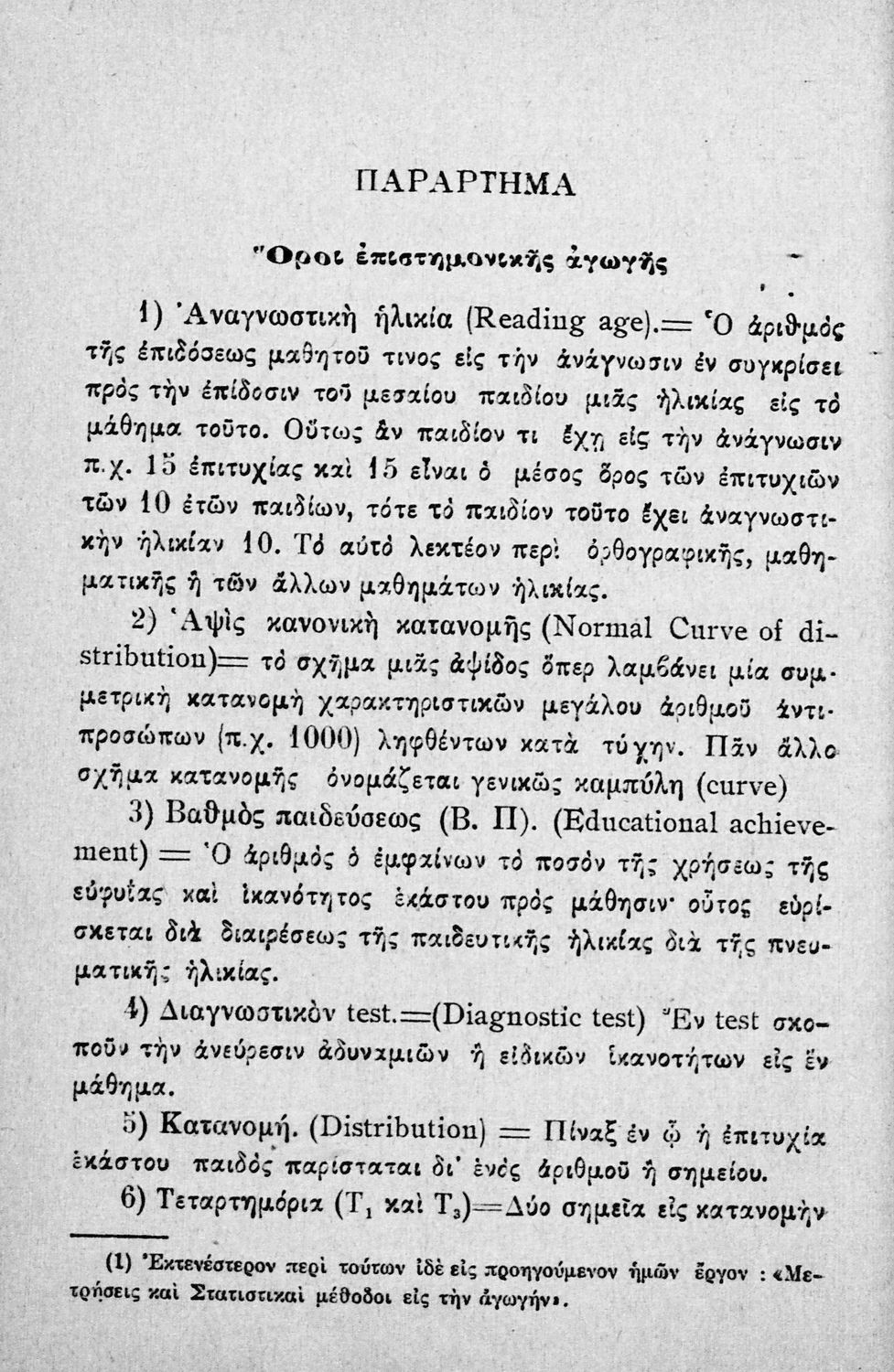Παρουσίαση περιεχομένου: Παιδαγωγικό βοήθημα που αναφέρεται στη δημοκρατική μέθοδο εργασίας στο σχολείο, στο νέο είδος εξετάσεων, στις μετρήσεις και στατιστικές μεθόδους καθώς και στις πνευματικές και παιδευτικές μετρήσεις των Ελληνόπουλων. Ο συγγραφέας ήταν Επιμελητής της Πειραματικής Παιδαγωγικής του Πανεπιστημίου Αθηνών.