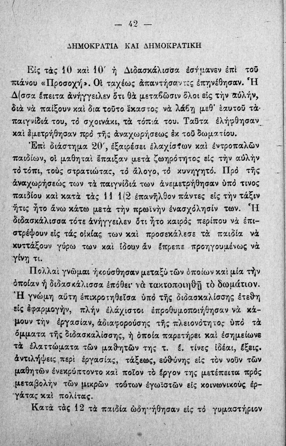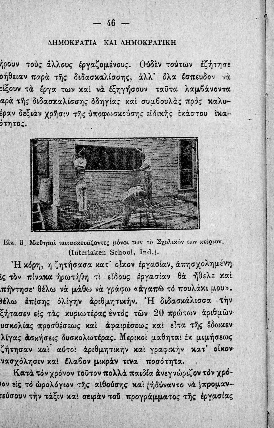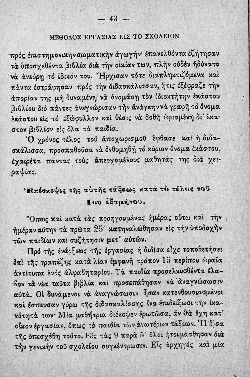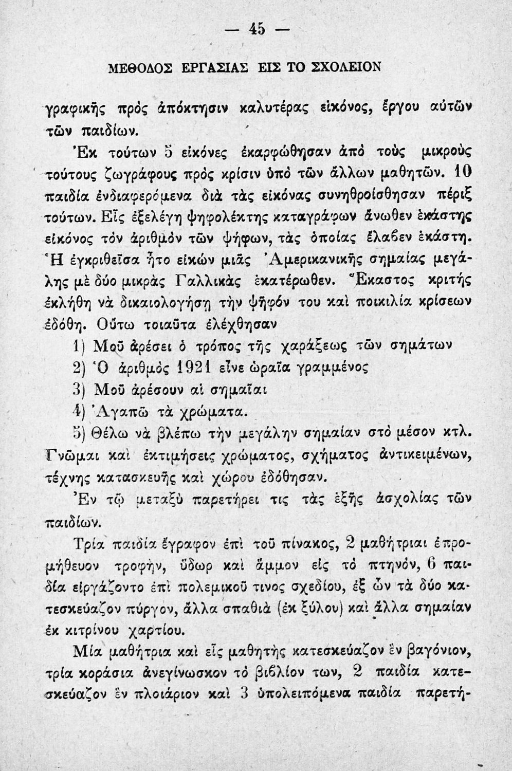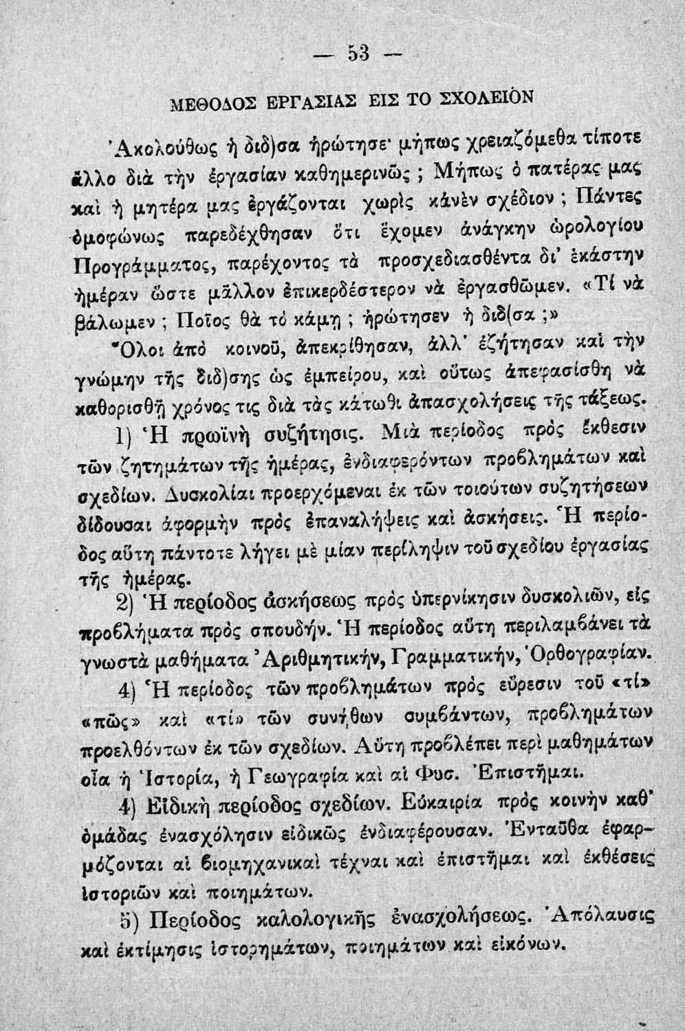 Παιδαγωγικό βοήθημα που αναφέρεται στη δημοκρατική μέθοδο εργασίας στο σχολείο, στο νέο είδος εξετάσεων, στις μετρήσεις και στατιστικές μεθόδους καθώς και στις πνευματικές και παιδευτικές μετρήσεις των Ελληνόπουλων. Ο συγγραφέας ήταν Επιμελητής της Πειραματικής Παιδαγωγικής του Πανεπιστημίου Αθηνών.