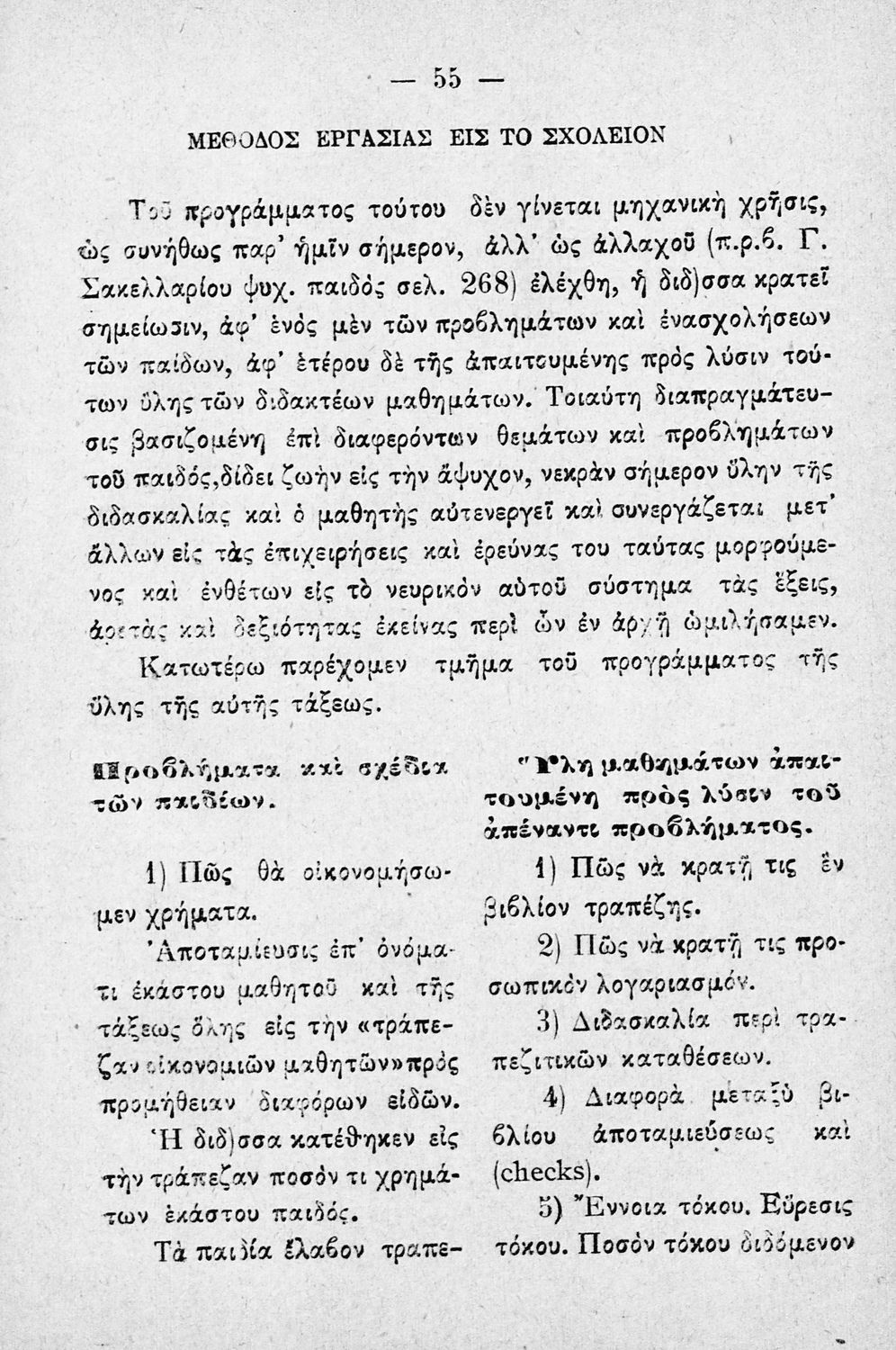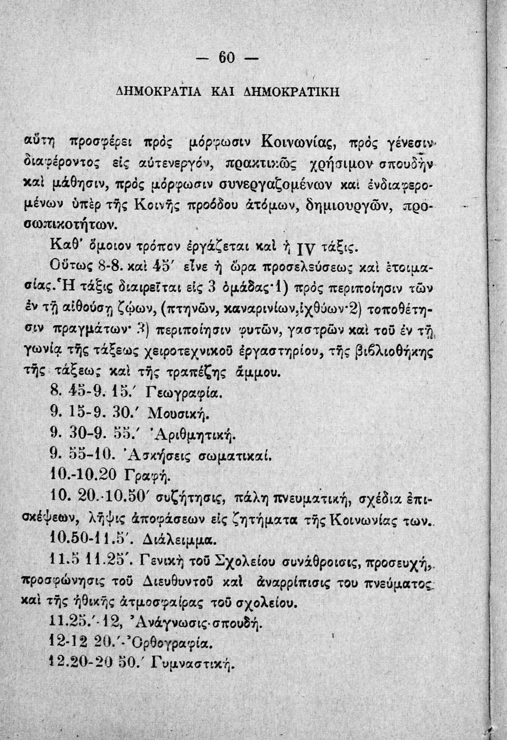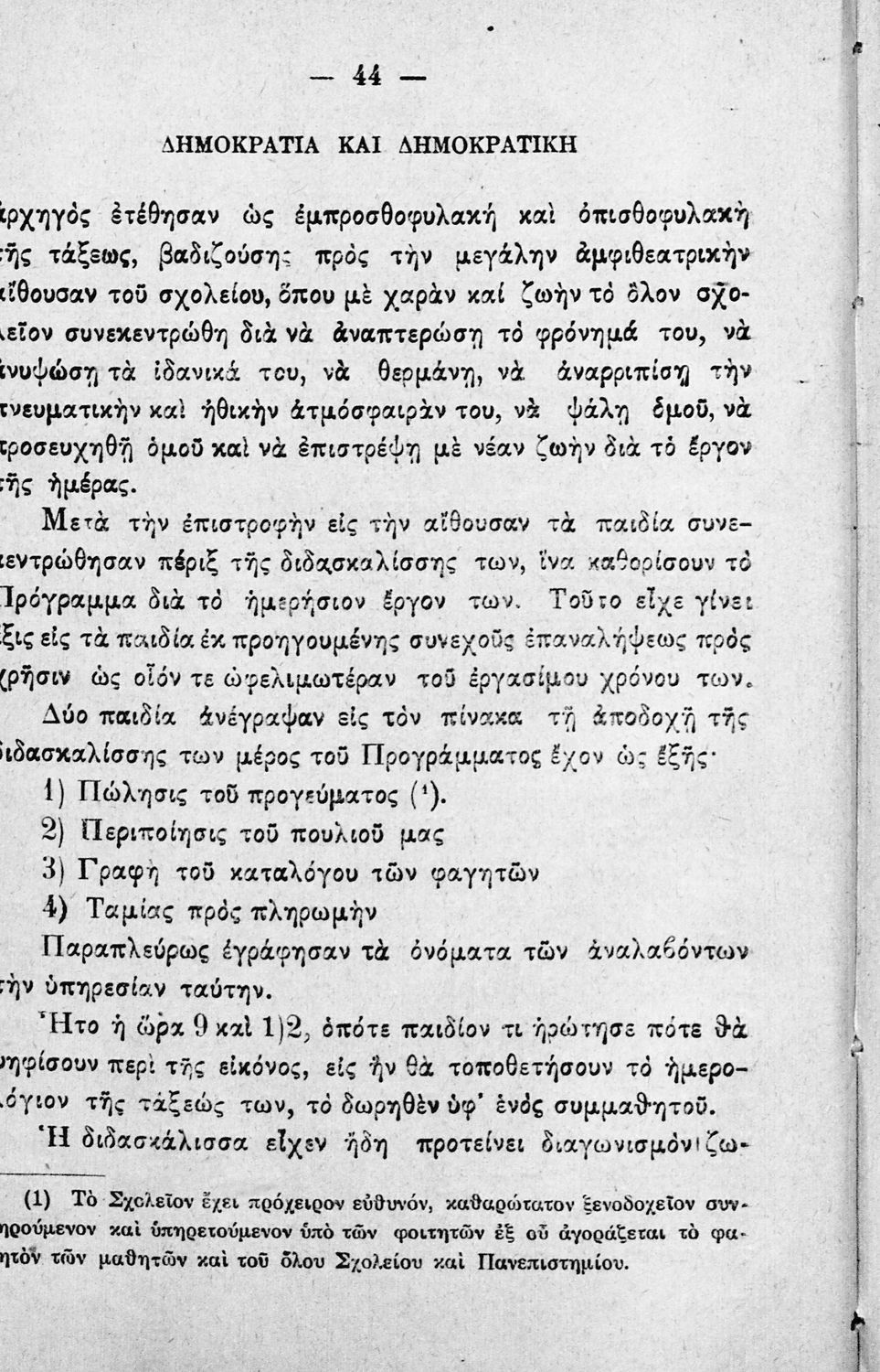 Βαθμίδα εκπαίδευσης: Δευτεροβάθμια Γλώσσα: Καθαρεύουσα Παρουσίαση περιεχομένου: Παιδαγωγικό βοήθημα που αναφέρεται στη δημοκρατική μέθοδο εργασίας στο σχολείο, στο νέο είδος εξετάσεων, στις μετρήσεις και στατιστικές μεθόδους καθώς και στις πνευματικές και παιδευτικές μετρήσεις των Ελληνόπουλων. Ο συγγραφέας ήταν Επιμελητής της Πειραματικής Παιδαγωγικής του Πανεπιστημίου Αθηνών. |