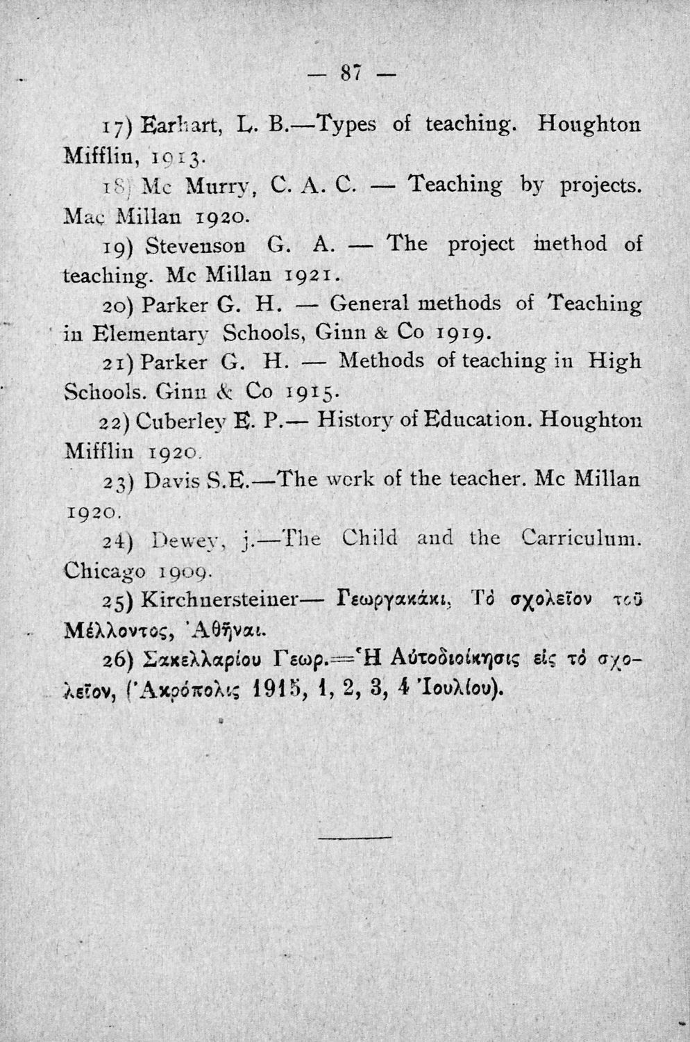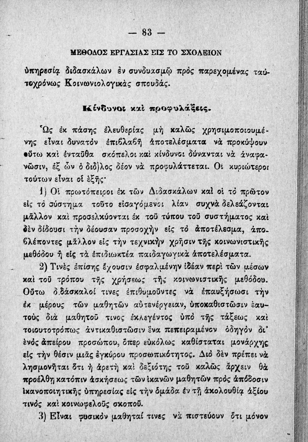 Βαθμίδα εκπαίδευσης: Δευτεροβάθμια Γλώσσα: Καθαρεύουσα Παρουσίαση περιεχομένου: Παιδαγωγικό βοήθημα που αναφέρεται στη δημοκρατική μέθοδο εργασίας στο σχολείο, στο νέο είδος εξετάσεων, στις μετρήσεις και στατιστικές μεθόδους καθώς και στις πνευματικές και παιδευτικές μετρήσεις των Ελληνόπουλων. Ο συγγραφέας ήταν Επιμελητής της Πειραματικής Παιδαγωγικής του Πανεπιστημίου Αθηνών. |