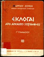 Σχολικό εγχειρίδιο Αρχαίων Ελληνικών Γ΄ Γυμνασίου που περιλαμβάνει αποσπάσματα έργων αρχαίων Ελλήνων συγγραφέων, ερμηνευτικά σχόλια και βιογραφικά σημειώματα.