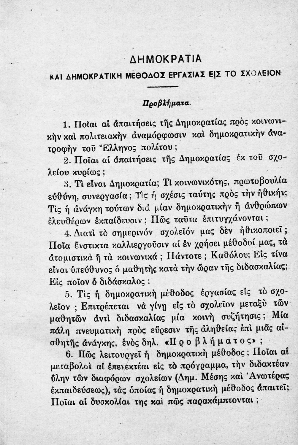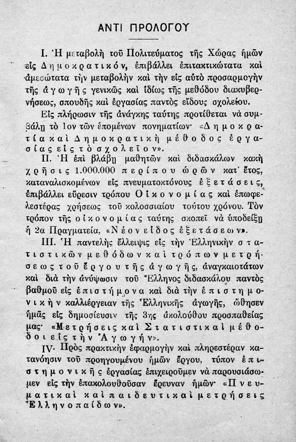 Παρουσίαση περιεχομένου: Παιδαγωγικό βοήθημα που αναφέρεται στη δημοκρατική μέθοδο εργασίας στο σχολείο, στο νέο είδος εξετάσεων, στις μετρήσεις και στατιστικές μεθόδους καθώς και στις πνευματικές και παιδευτικές μετρήσεις των Ελληνόπουλων. Ο συγγραφέας ήταν Επιμελητής της Πειραματικής Παιδαγωγικής του Πανεπιστημίου Αθηνών.