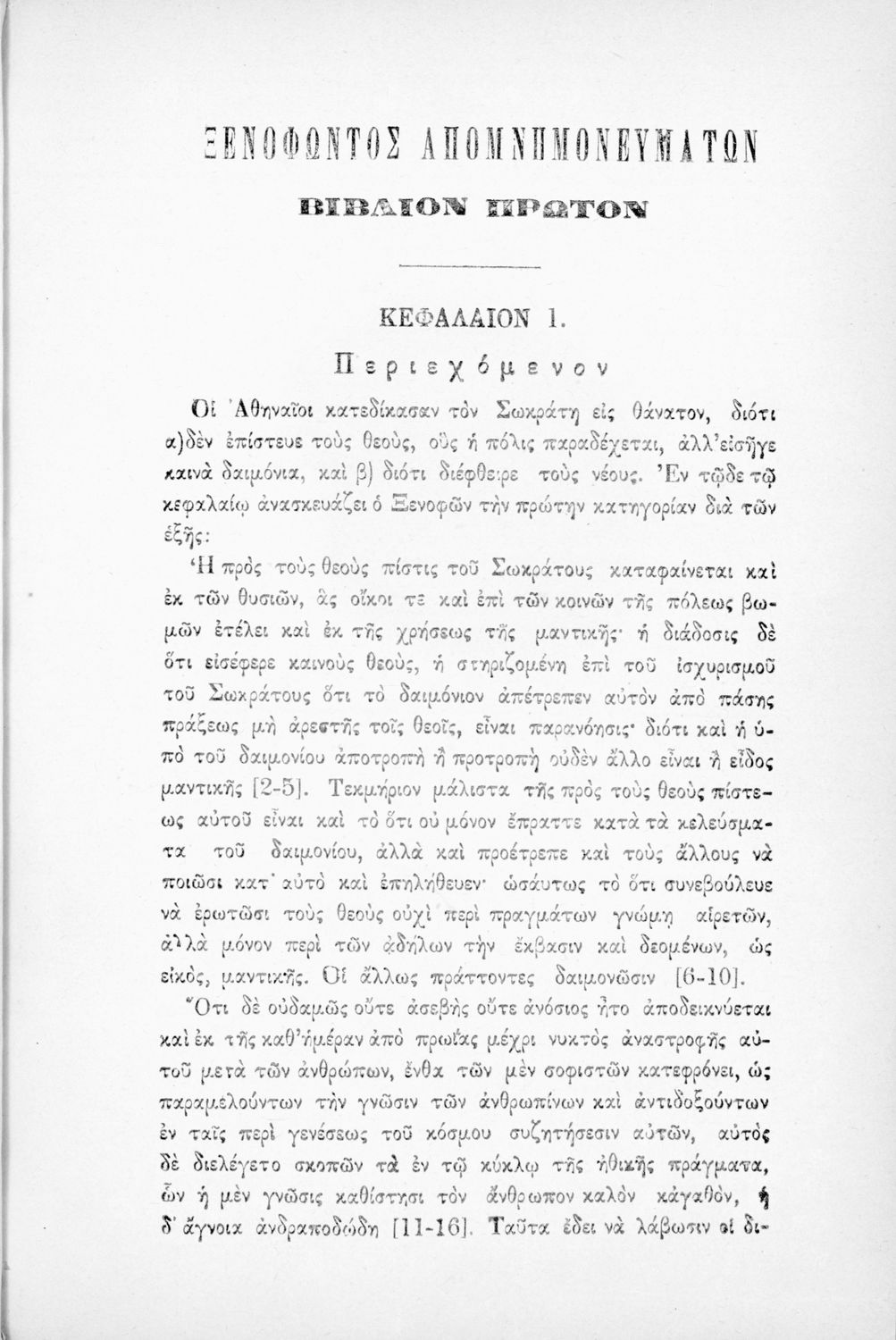 Παρουσίαση περιεχομένου: Μαθητικό βοήθημα Αρχαίων Ελληνικών για τα Ελληνικά Σχολεία, Παρθεναγωγεία και Γυμνάσια που περιέχει αποσπάσματα από τα Απομνημονεύματα του Ξενοφώντα, εισαγωγή στο έργο, ερμηνευτική ανάλυση, λεξικό και παράρτημα σχετικά με την ηθική του Σωκράτη.