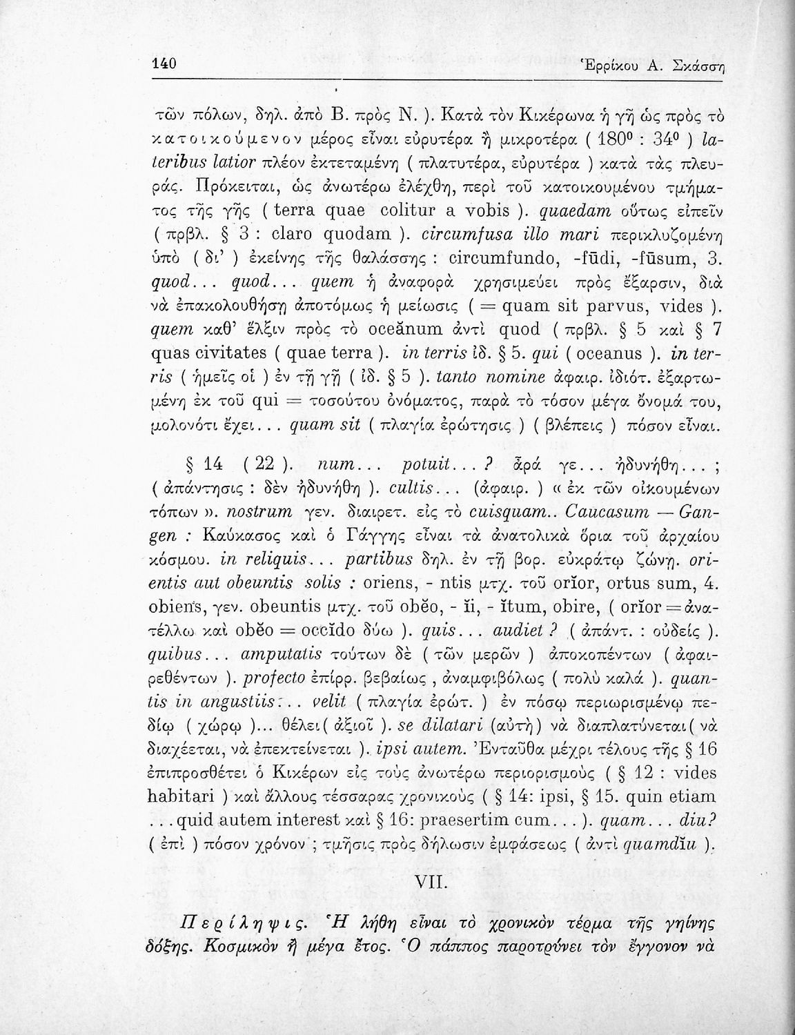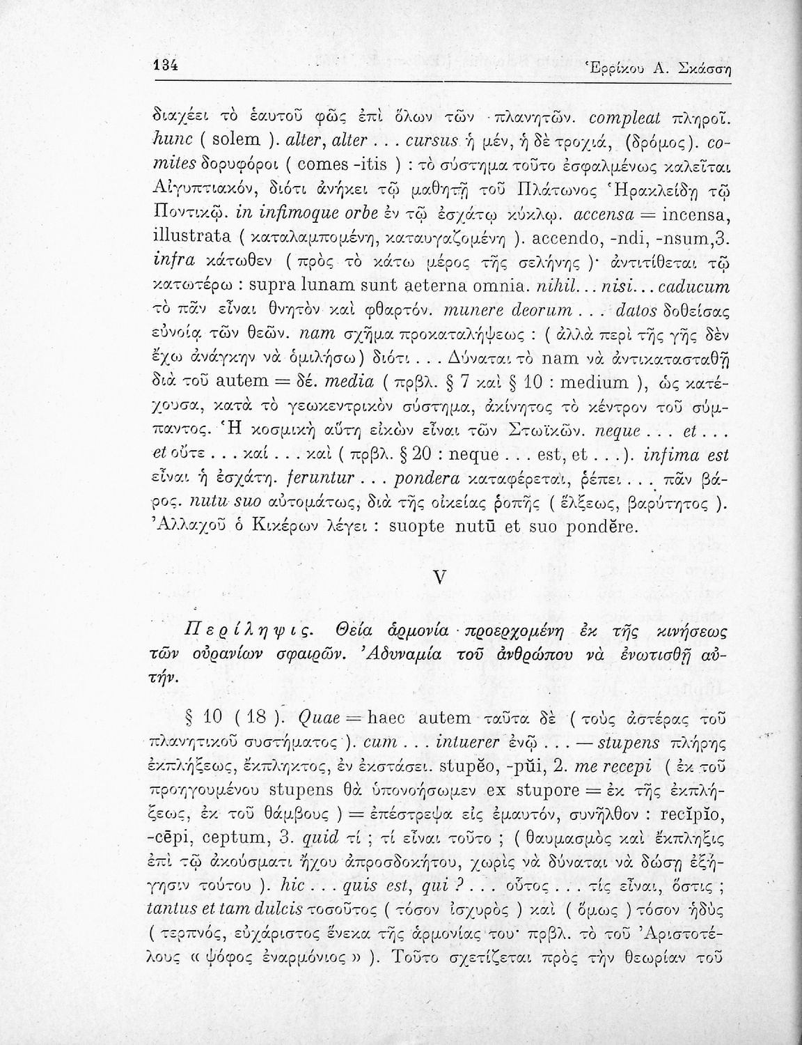 Πόπλιος Βιργίλιος Μάρων (P. Vergilius Maro), Μάρκος Τύλλιος Κικέρωνας (Marcus Tullius Ciceco), Κουίντος Οράτιος Φλάκκος (Q. Horati Flacci), Φωκίωνας Β. Βουσβούνης, Ερρίκος Σκάσσης, Ζαφείριος Ν. Φραγκίσκος (σχόλια)