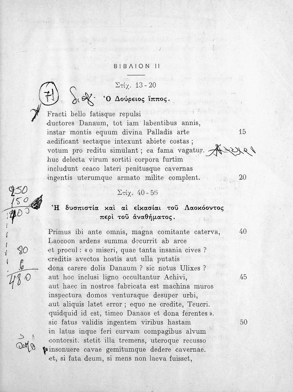 Κωδικός αναγνώρισης: 01-18394 Τίτλος: Ουεργιλίου Αινειάς Εκλογαί M. Tullii Ciceronis Somnium Scipionis de re publica liber VIΟρατίου Ωδαί Συγγραφέας: Πόπλιος Βιργίλιος Μάρων (P. Vergilius Maro), Μάρκος Τύλλιος Κικέρωνας (Marcus Tullius Ciceco), Κουίντος Οράτιος Φλάκκος (Q. Horati Flacci), Φωκίωνας Β. Βουσβούνης, Ερρίκος Σκάσσης, Ζαφείριος Ν. Φραγκίσκος (εισαγωγή/σχόλια) Μέγεθος και υπόστρωμα: Σχολικό εγχειρίδιο, 20εκ., σκληρό εξώφυλλο, 188 σελίδες. |