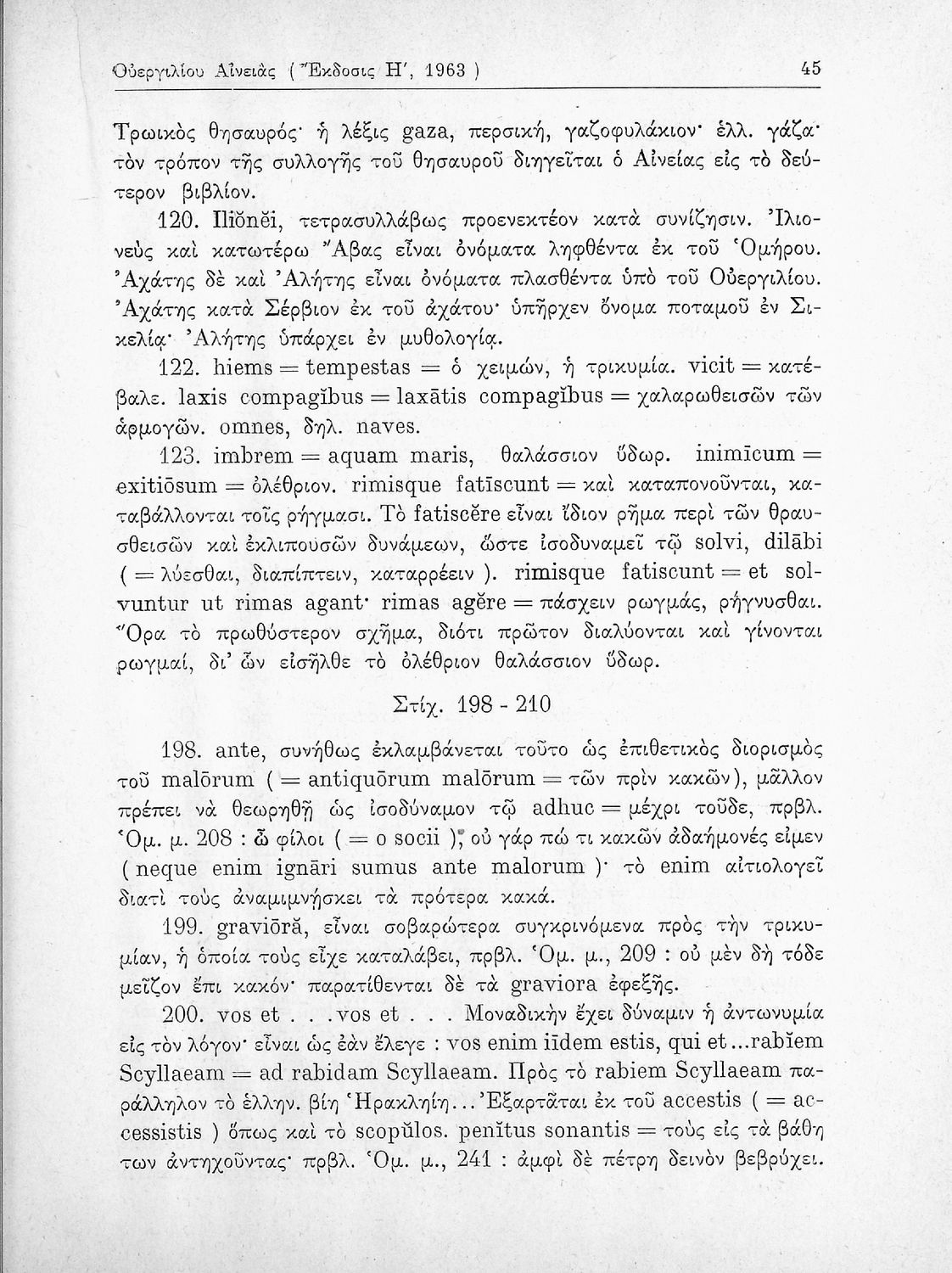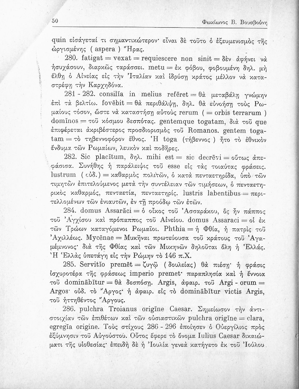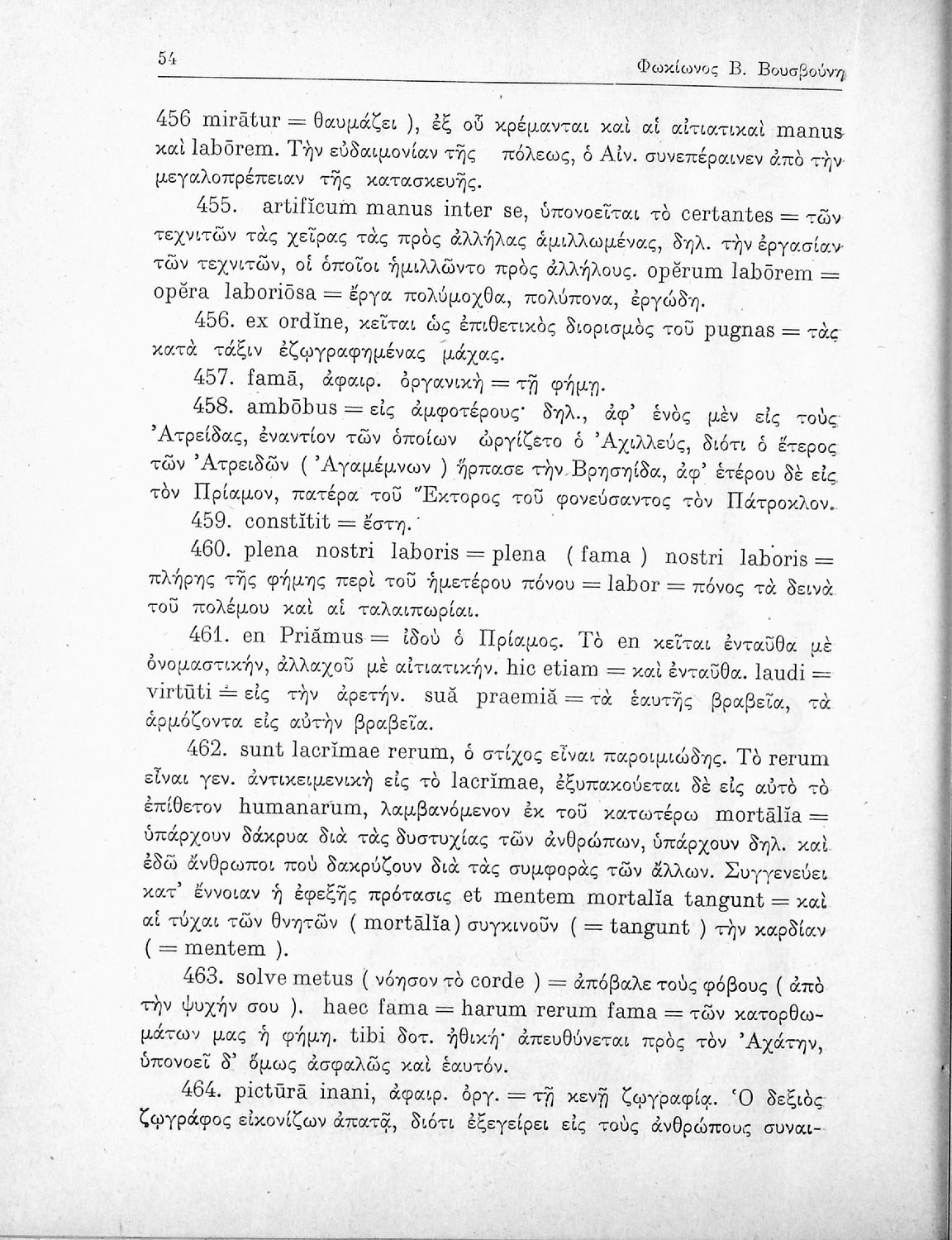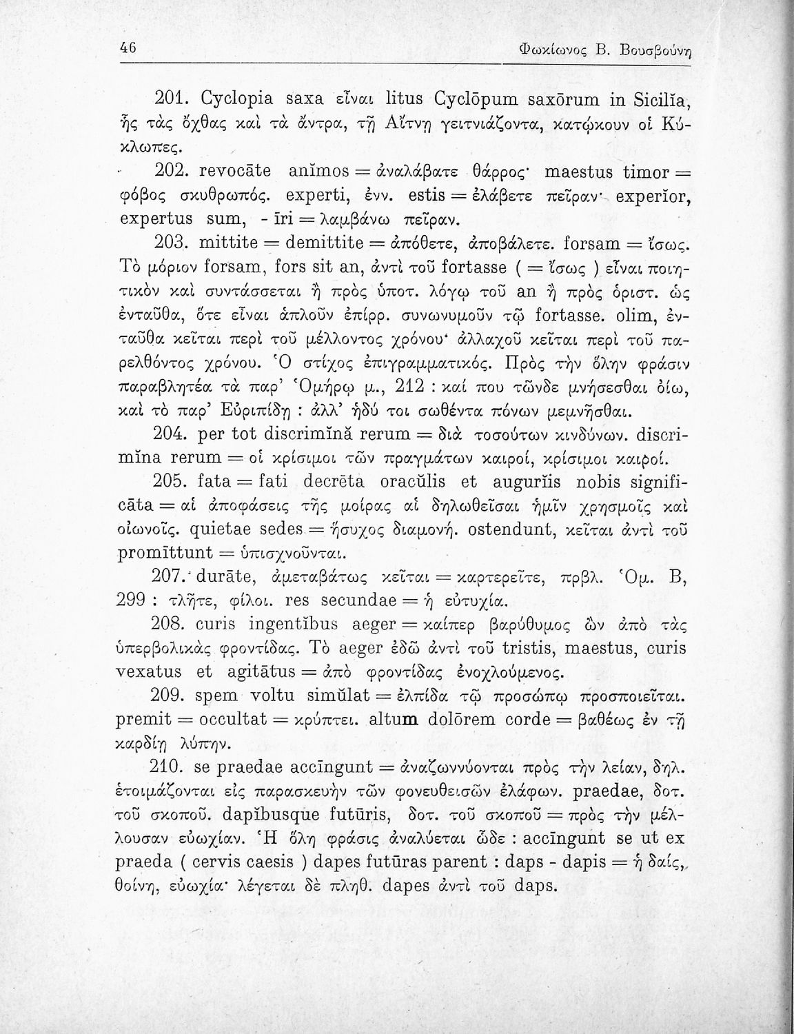 Πόπλιος Βιργίλιος Μάρων (P. Vergilius Maro), Μάρκος Τύλλιος Κικέρωνας (Marcus Tullius Ciceco), Κουίντος Οράτιος Φλάκκος (Q. Horati Flacci), Φωκίωνας Β. Βουσβούνης, Ερρίκος Σκάσσης, Ζαφείριος Ν. Φραγκίσκος (σχόλια)