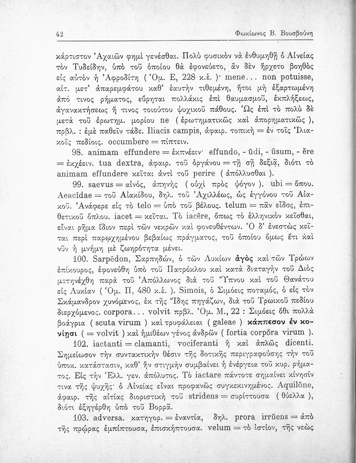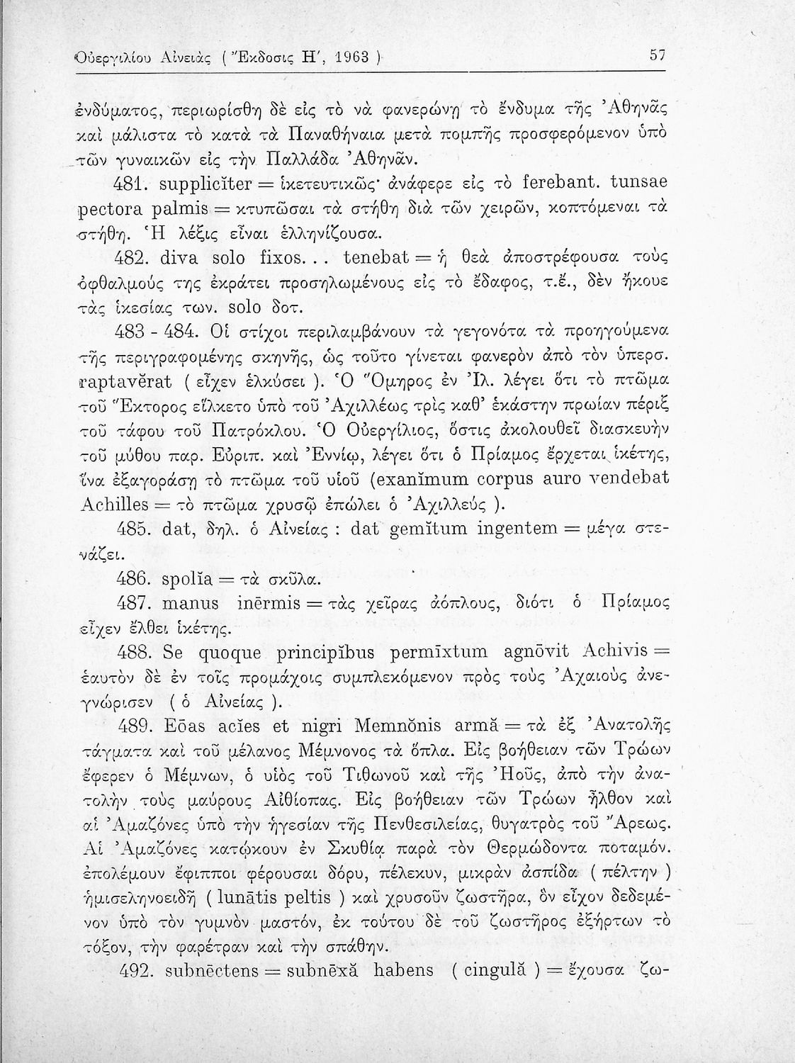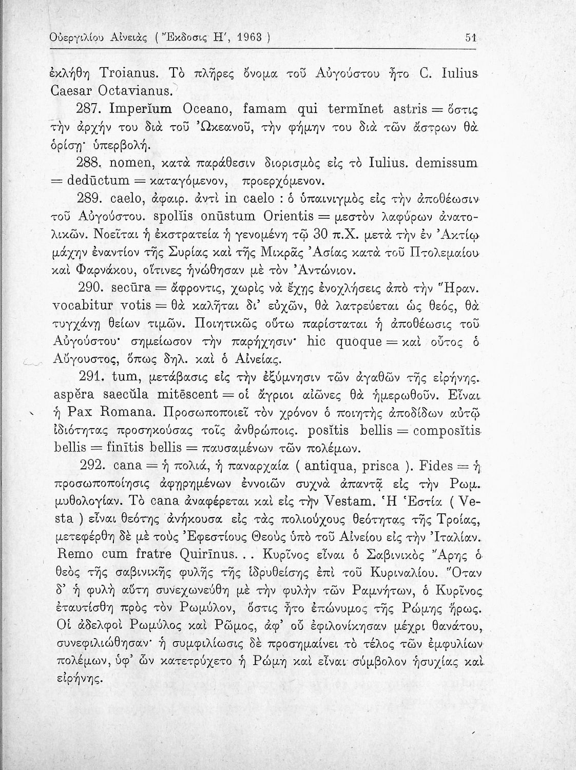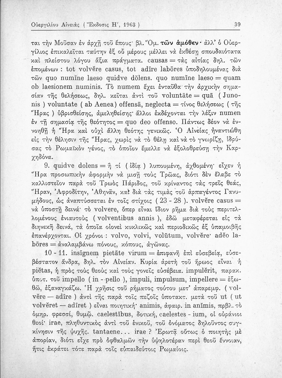 Πόπλιος Βιργίλιος Μάρων (P. Vergilius Maro), Μάρκος Τύλλιος Κικέρωνας (Marcus Tullius Ciceco), Κουίντος Οράτιος Φλάκκος (Q. Horati Flacci), Φωκίωνας Β. Βουσβούνης, Ερρίκος Σκάσσης, Ζαφείριος Ν. Φραγκίσκος (σχόλια)