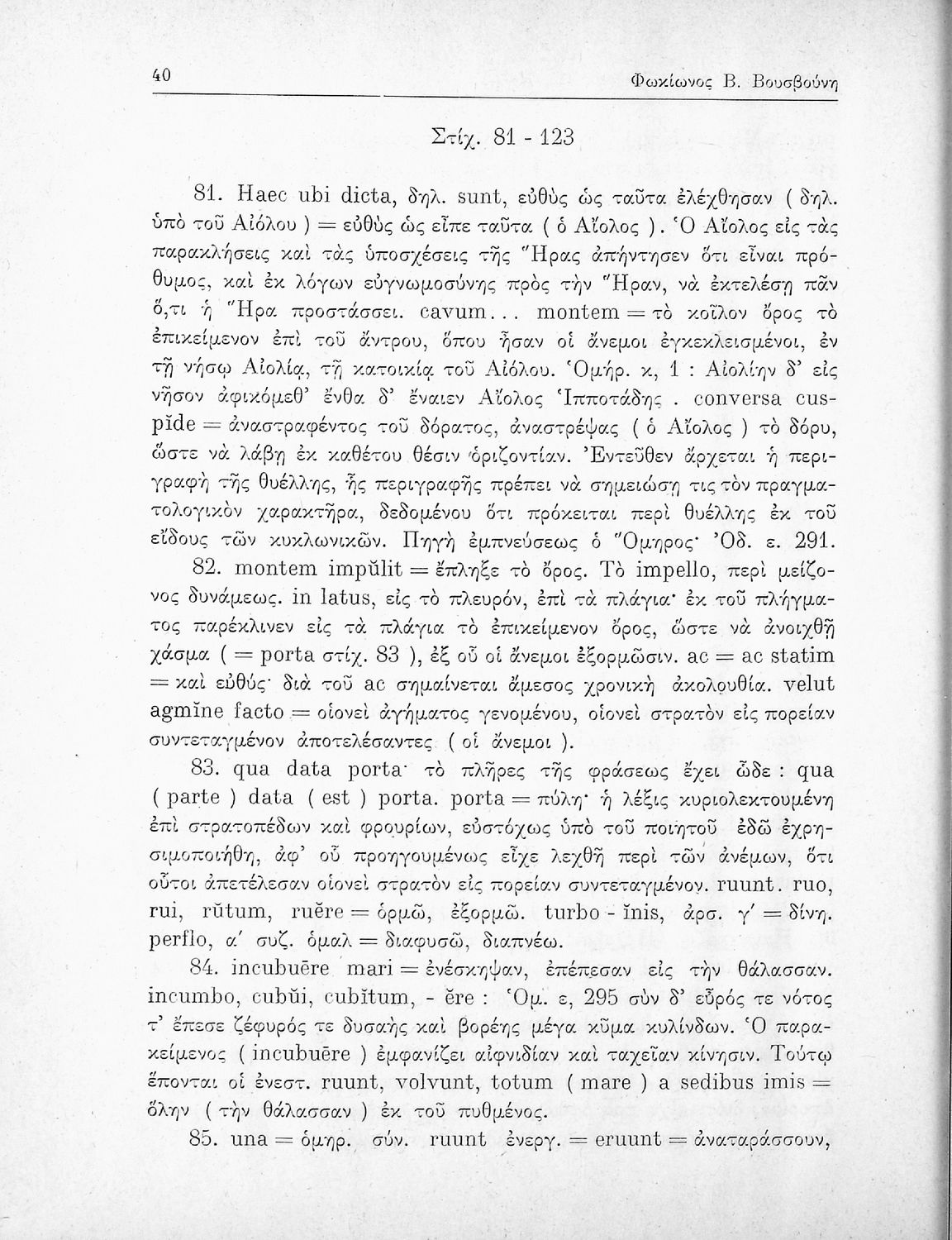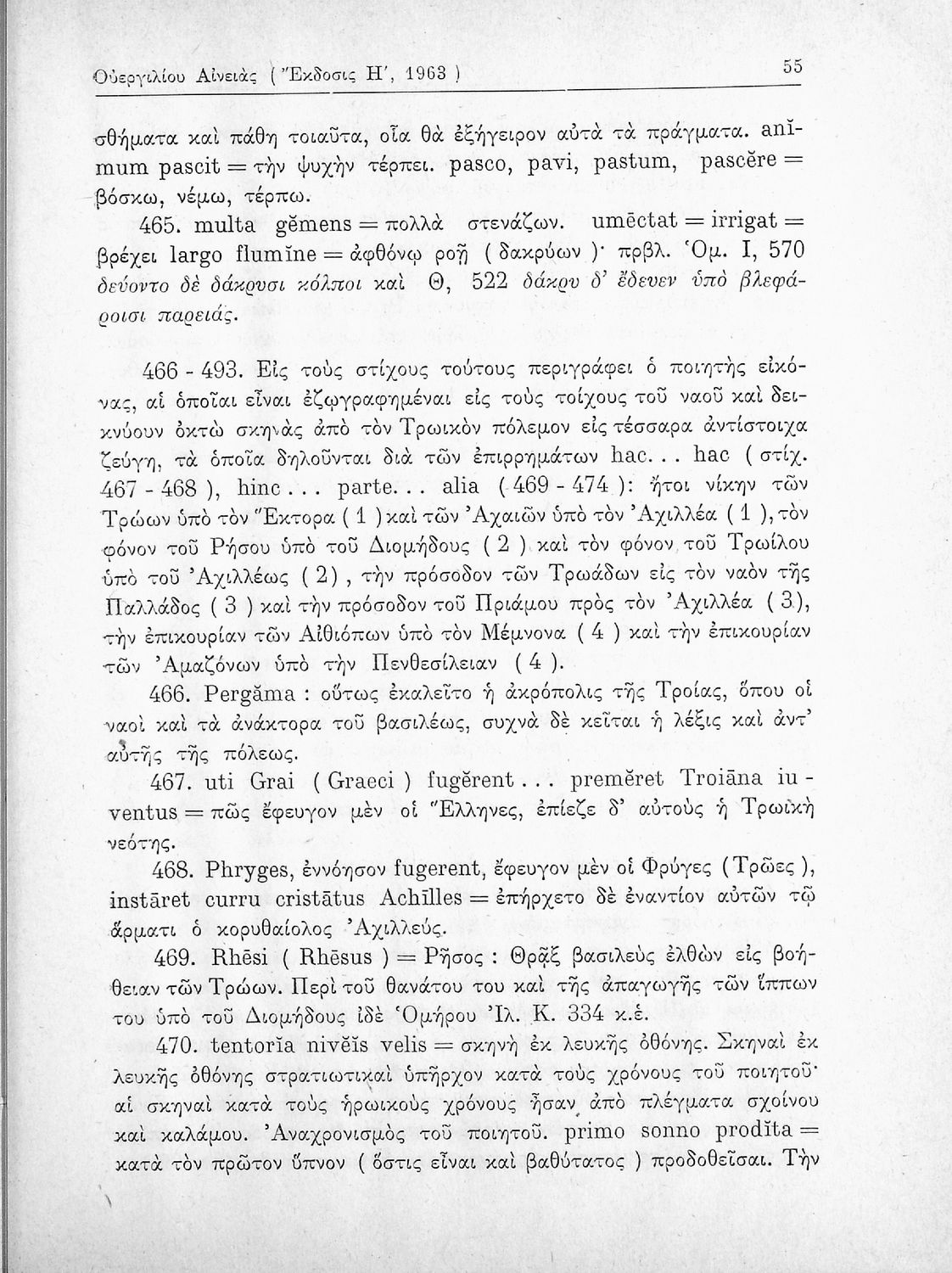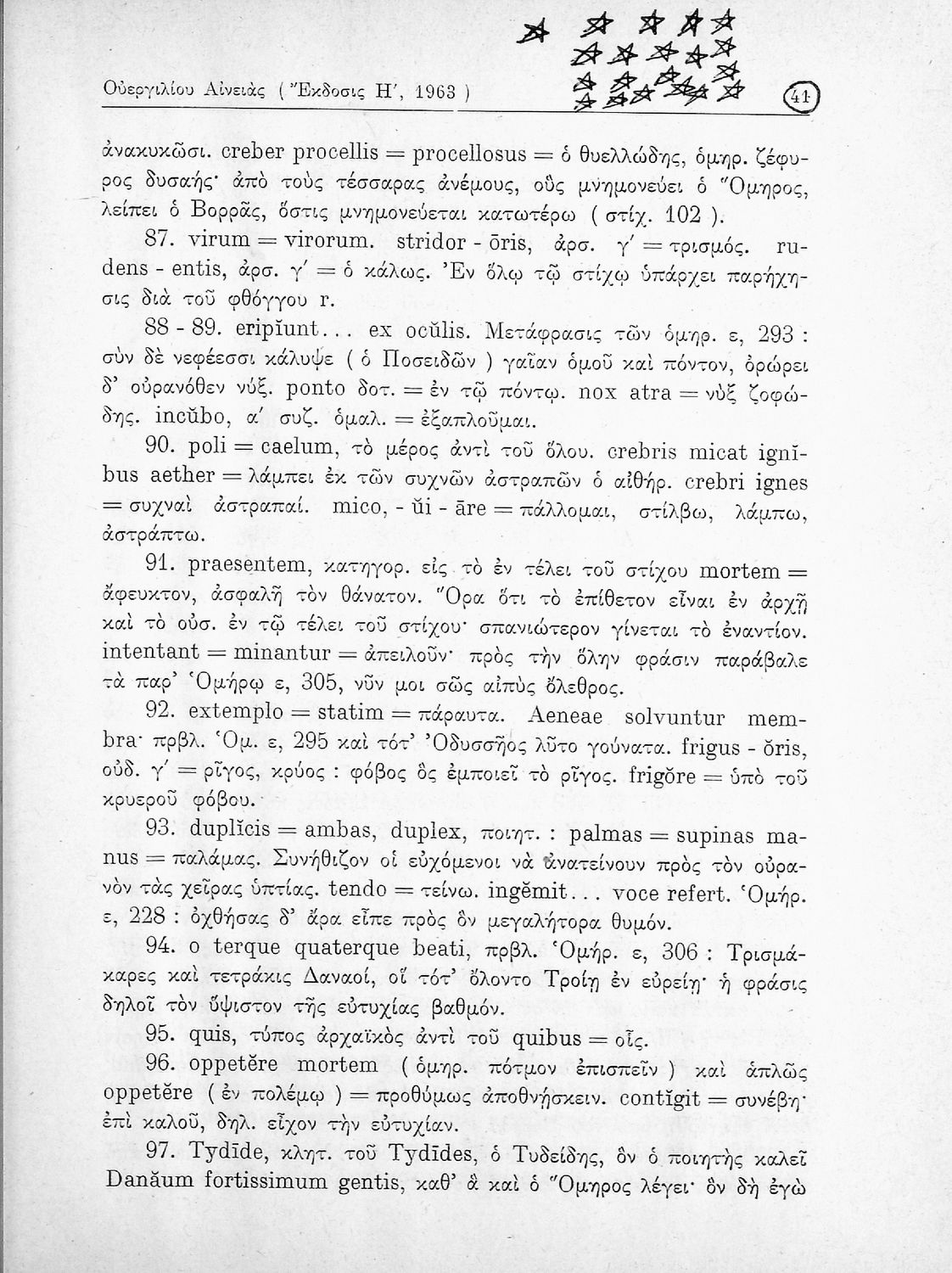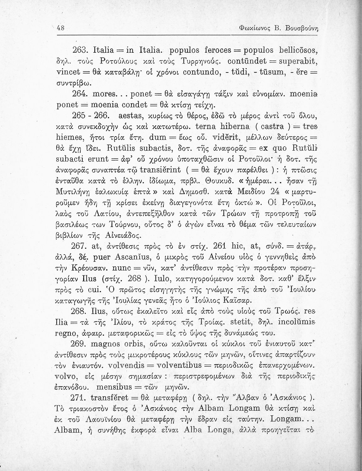 Πόπλιος Βιργίλιος Μάρων (P. Vergilius Maro), Μάρκος Τύλλιος Κικέρωνας (Marcus Tullius Ciceco), Κουίντος Οράτιος Φλάκκος (Q. Horati Flacci), Φωκίωνας Β. Βουσβούνης, Ερρίκος Σκάσσης, Ζαφείριος Ν. Φραγκίσκος (σχόλια)