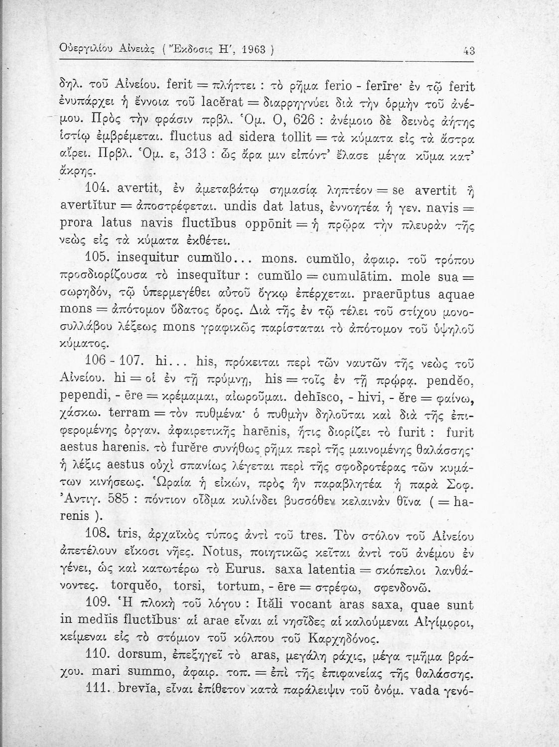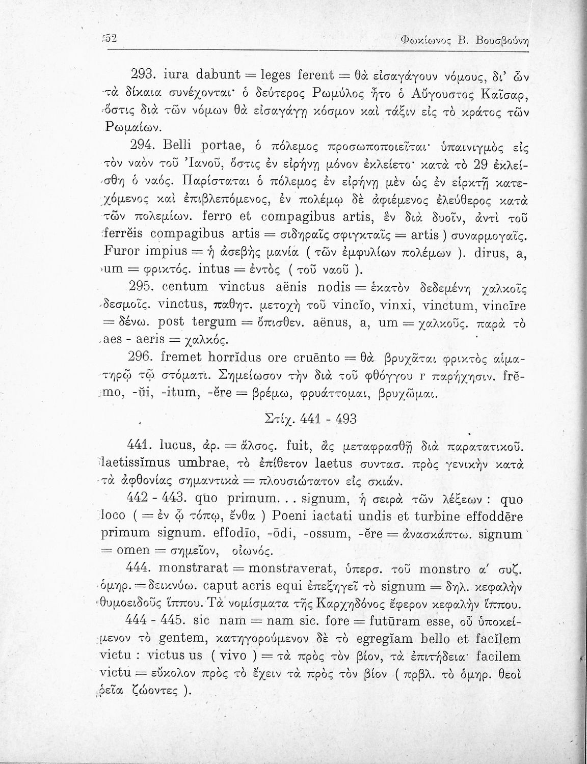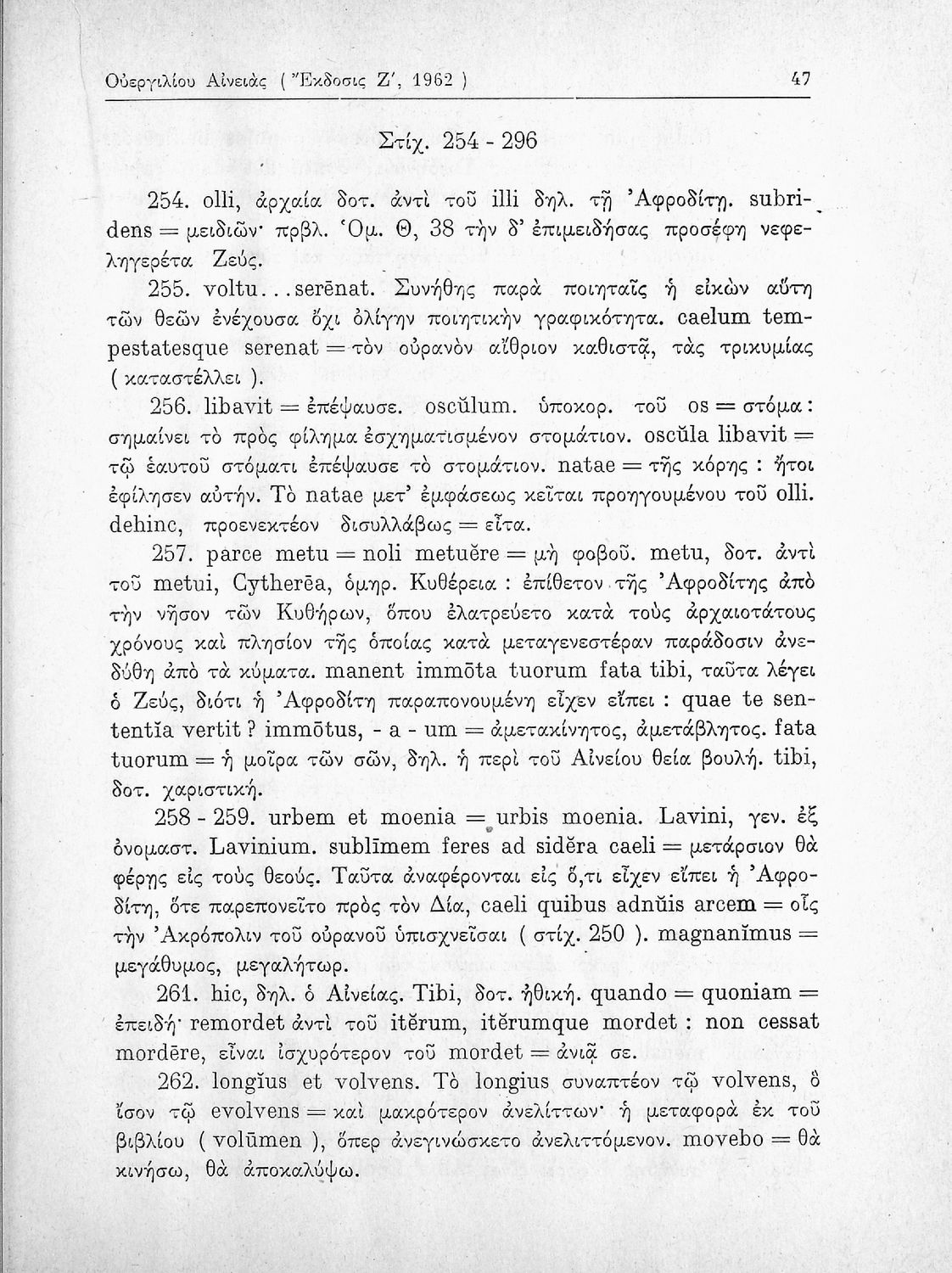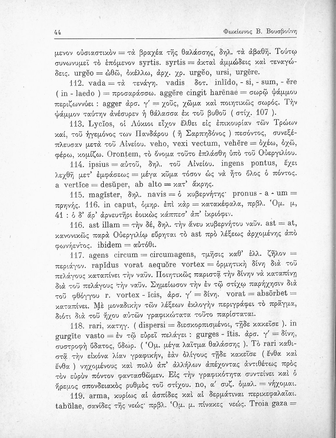Πόπλιος Βιργίλιος Μάρων (P. Vergilius Maro), Μάρκος Τύλλιος Κικέρωνας (Marcus Tullius Ciceco), Κουίντος Οράτιος Φλάκκος (Q. Horati Flacci), Φωκίωνας Β. Βουσβούνης, Ερρίκος Σκάσσης, Ζαφείριος Ν. Φραγκίσκος (σχόλια)