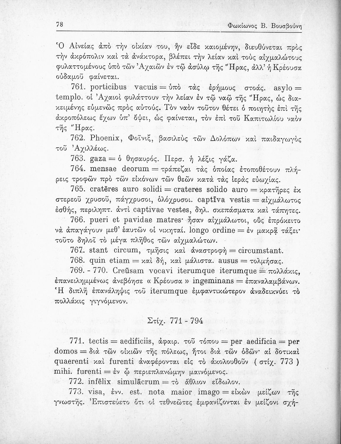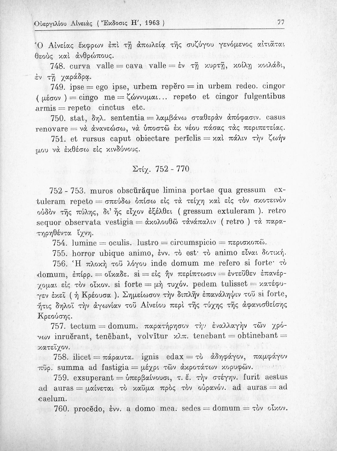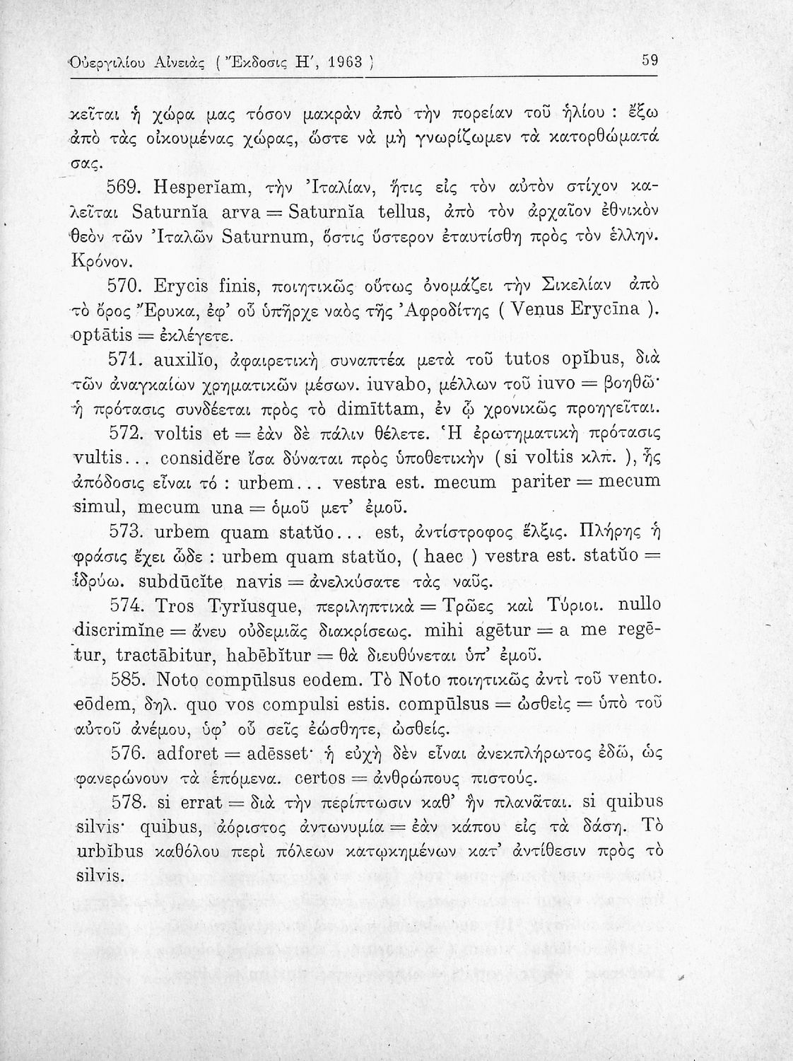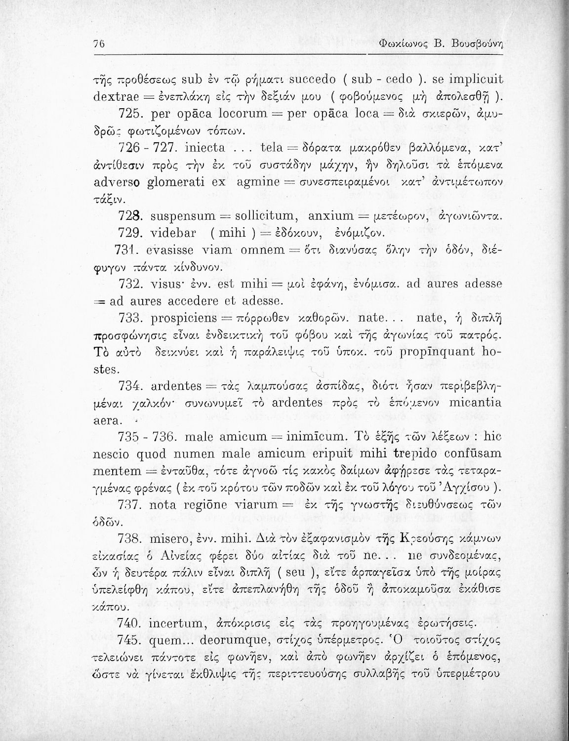 Πόπλιος Βιργίλιος Μάρων (P. Vergilius Maro), Μάρκος Τύλλιος Κικέρωνας (Marcus Tullius Ciceco), Κουίντος Οράτιος Φλάκκος (Q. Horati Flacci), Φωκίωνας Β. Βουσβούνης, Ερρίκος Σκάσσης, Ζαφείριος Ν. Φραγκίσκος (σχόλια)