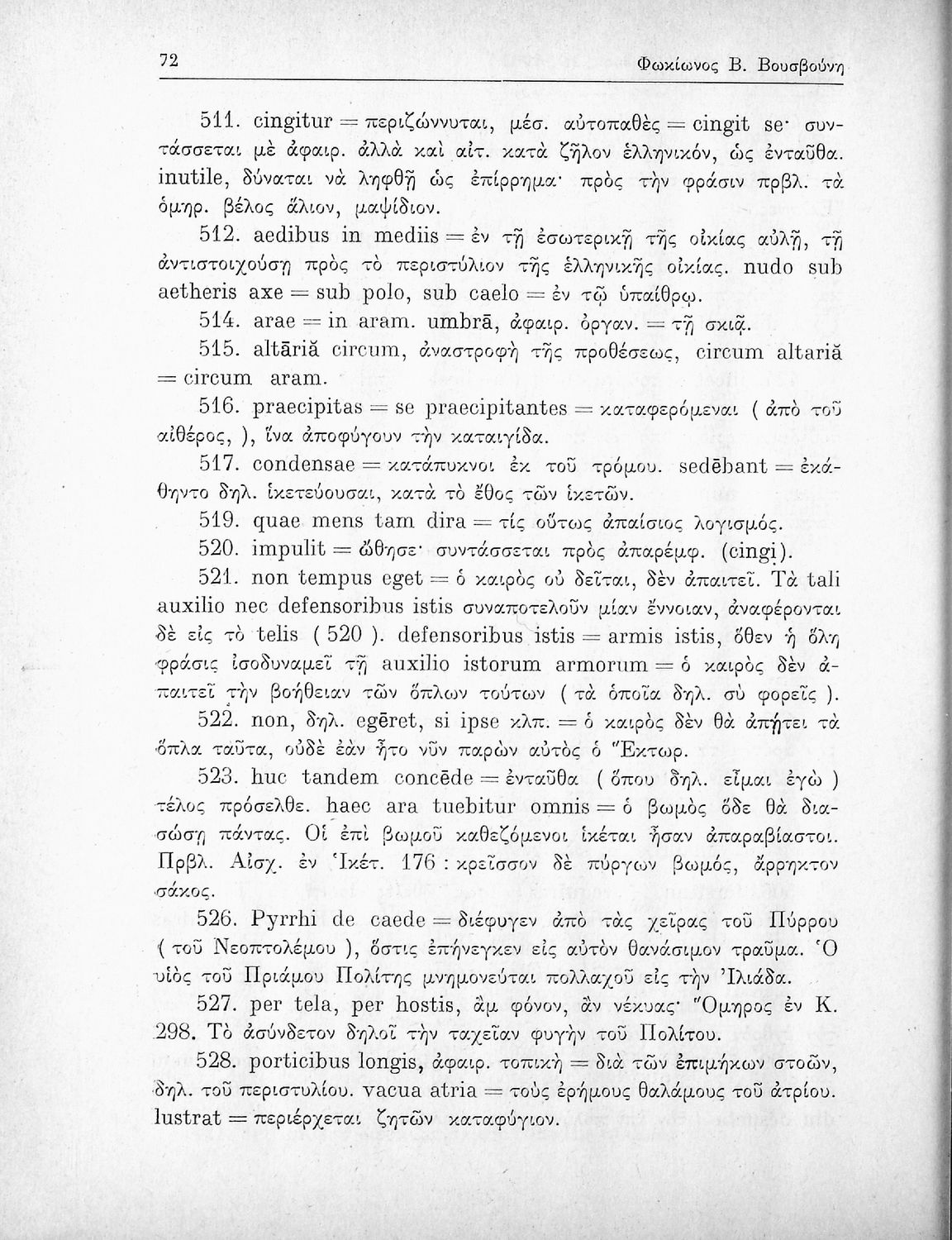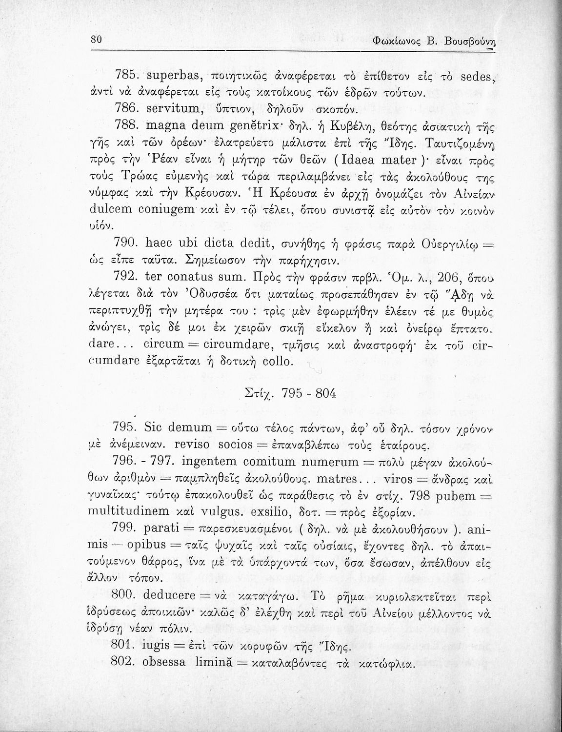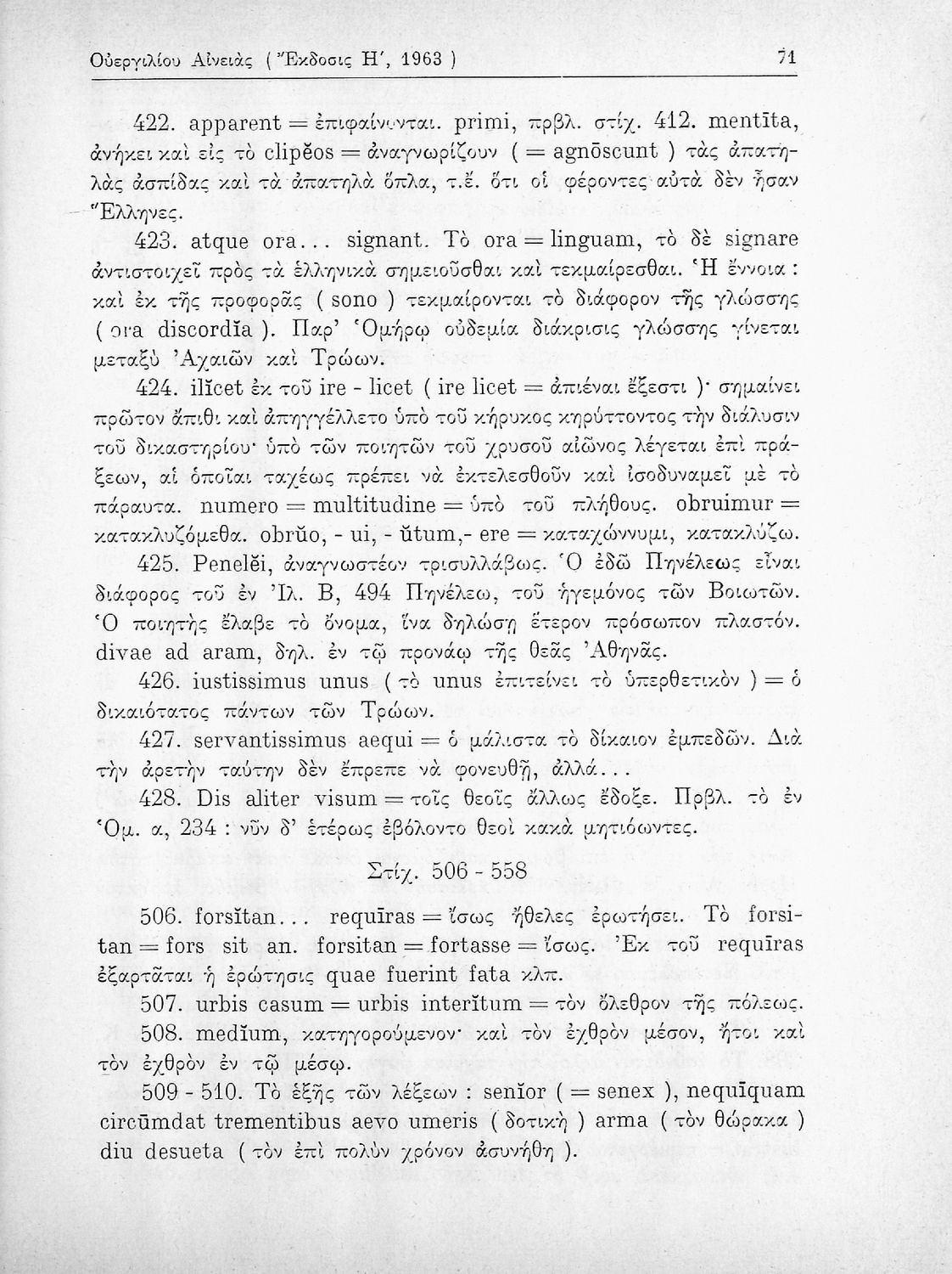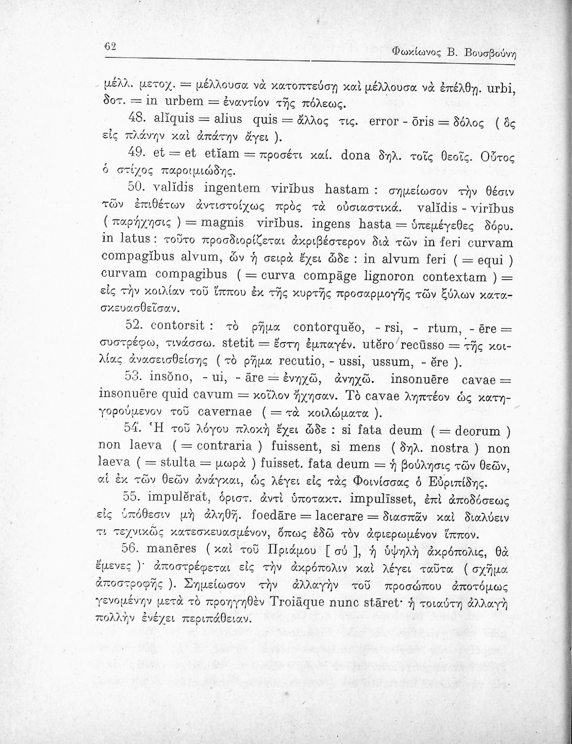 Πόπλιος Βιργίλιος Μάρων (P. Vergilius Maro), Μάρκος Τύλλιος Κικέρωνας (Marcus Tullius Ciceco), Κουίντος Οράτιος Φλάκκος (Q. Horati Flacci), Φωκίωνας Β. Βουσβούνης, Ερρίκος Σκάσσης, Ζαφείριος Ν. Φραγκίσκος (σχόλια)