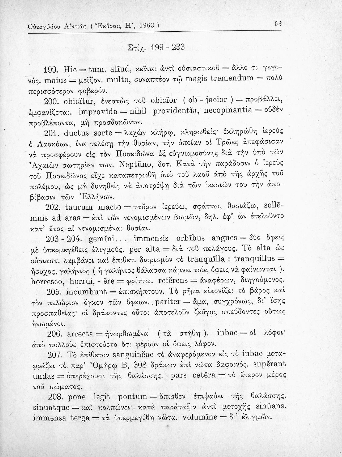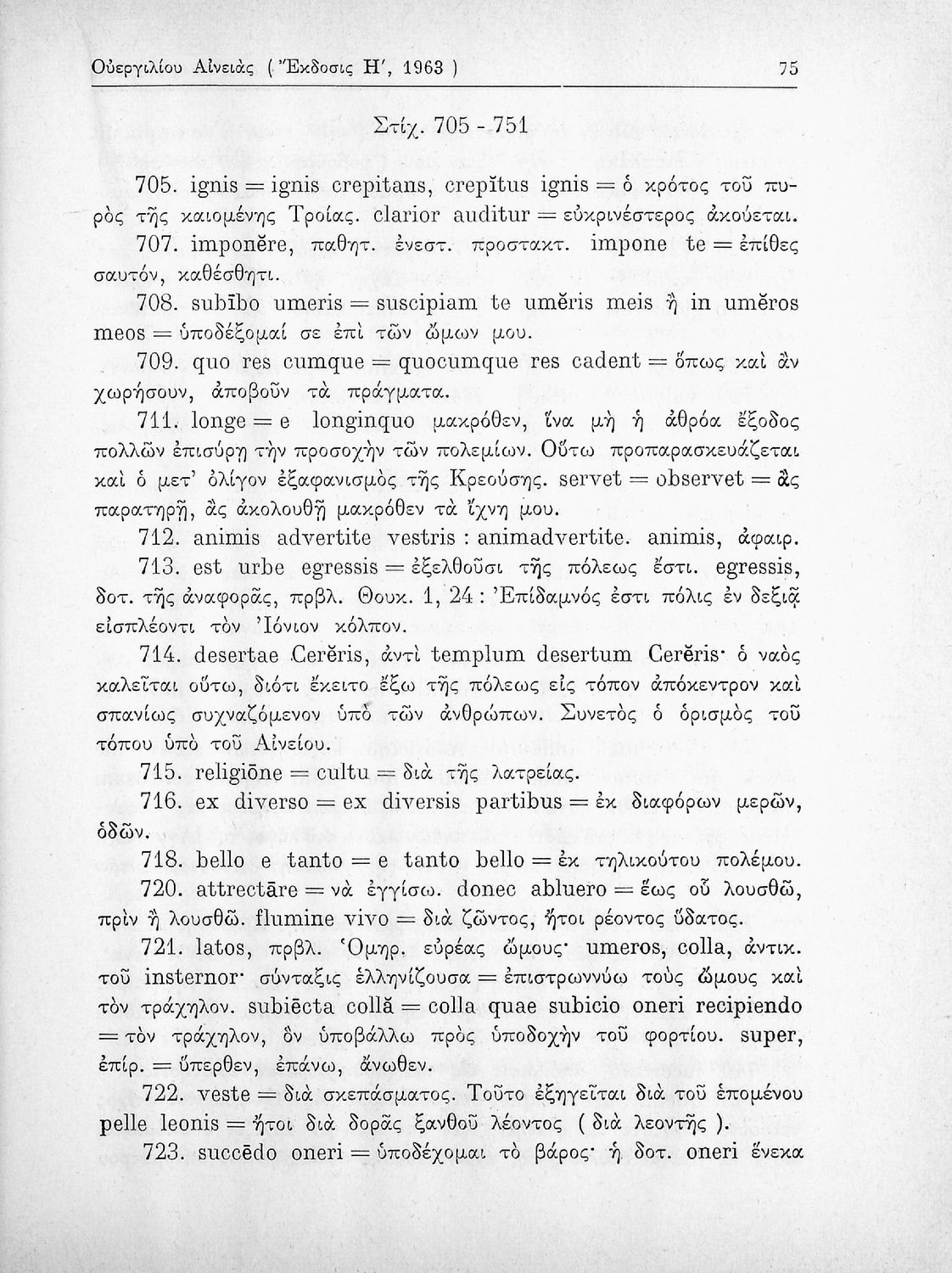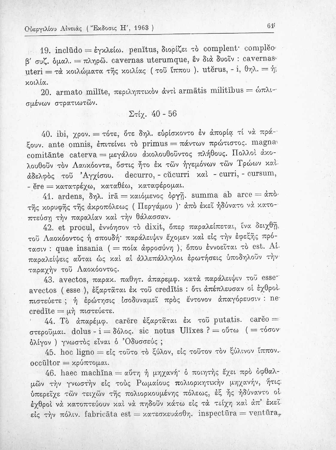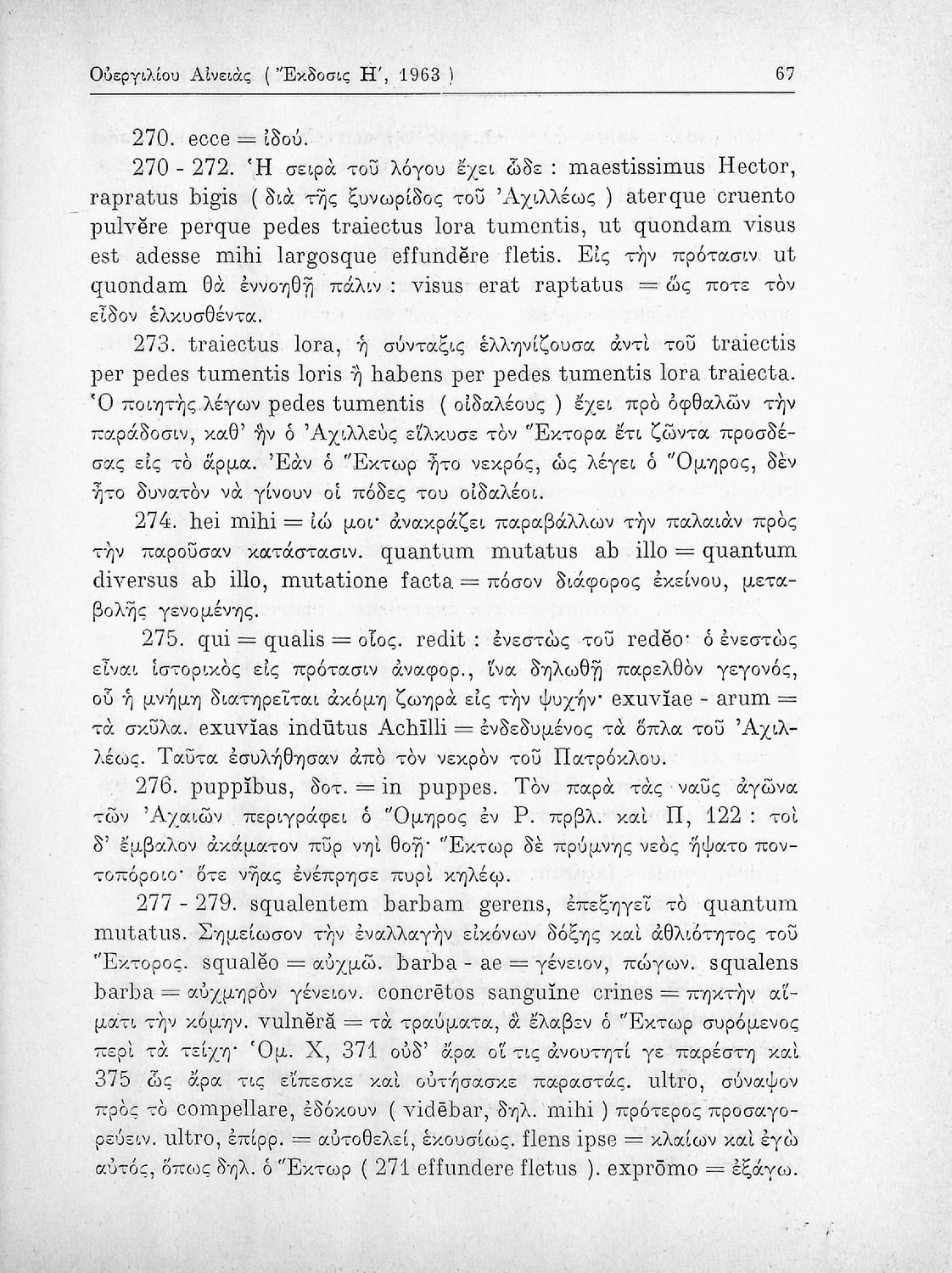 Πόπλιος Βιργίλιος Μάρων (P. Vergilius Maro), Μάρκος Τύλλιος Κικέρωνας (Marcus Tullius Ciceco), Κουίντος Οράτιος Φλάκκος (Q. Horati Flacci), Φωκίωνας Β. Βουσβούνης, Ερρίκος Σκάσσης, Ζαφείριος Ν. Φραγκίσκος (σχόλια)