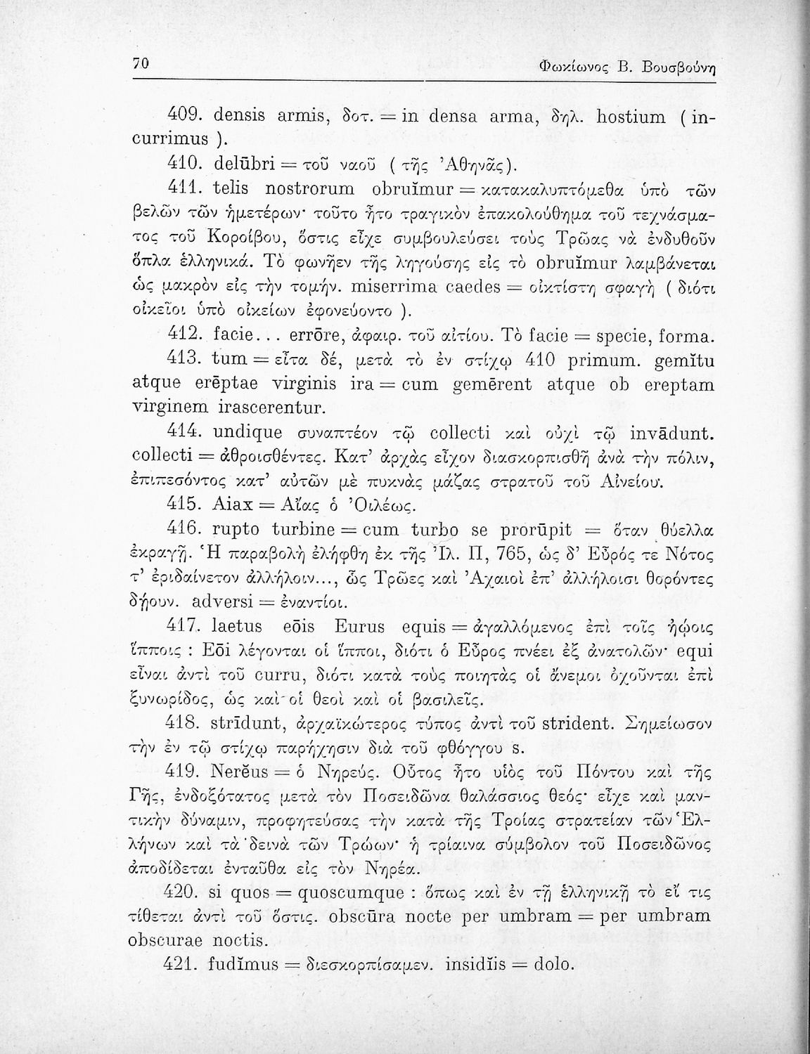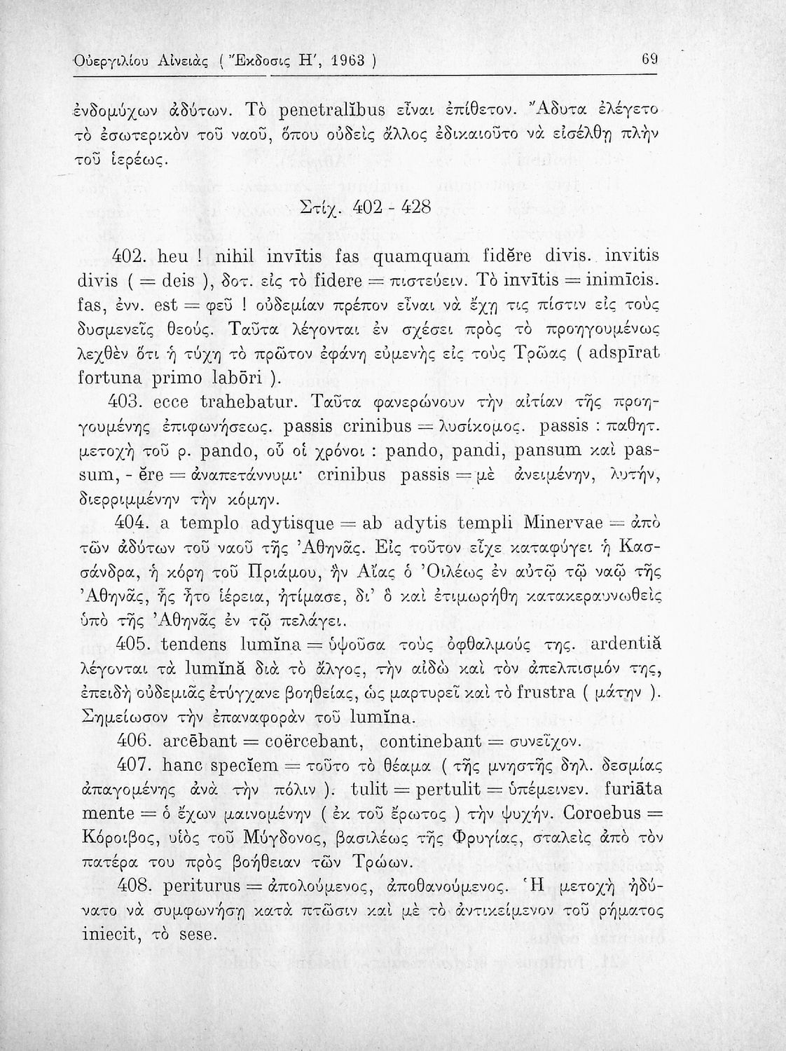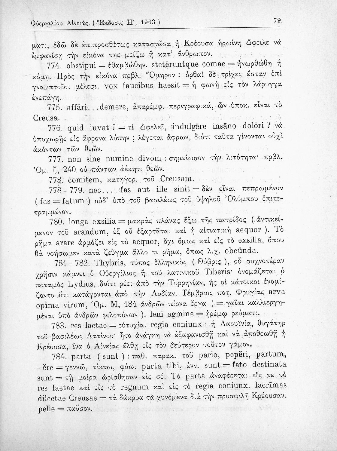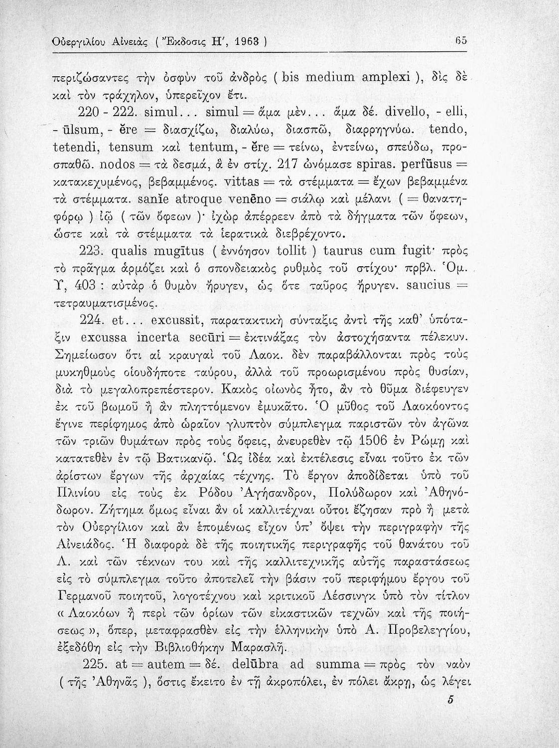 Πόπλιος Βιργίλιος Μάρων (P. Vergilius Maro), Μάρκος Τύλλιος Κικέρωνας (Marcus Tullius Ciceco), Κουίντος Οράτιος Φλάκκος (Q. Horati Flacci), Φωκίωνας Β. Βουσβούνης, Ερρίκος Σκάσσης, Ζαφείριος Ν. Φραγκίσκος (σχόλια)