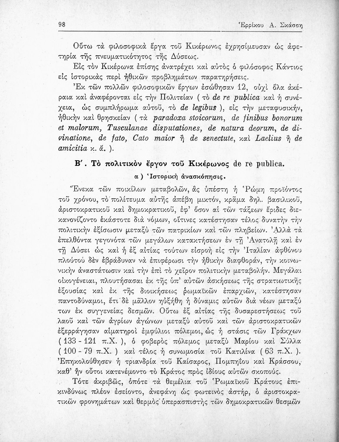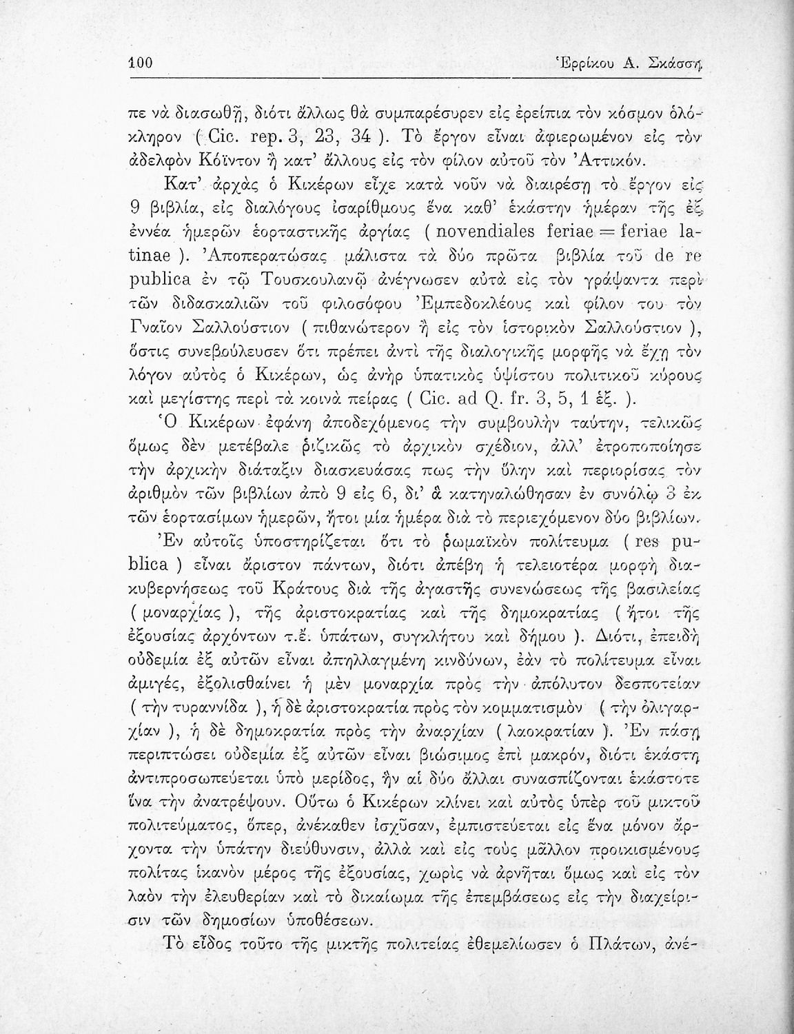 Μάρκος Τύλλιος Κικέρωνας (M. Tullius Cicero), Ερρίκος Α. Σκάσσης (εισαγωγή, σχόλια)