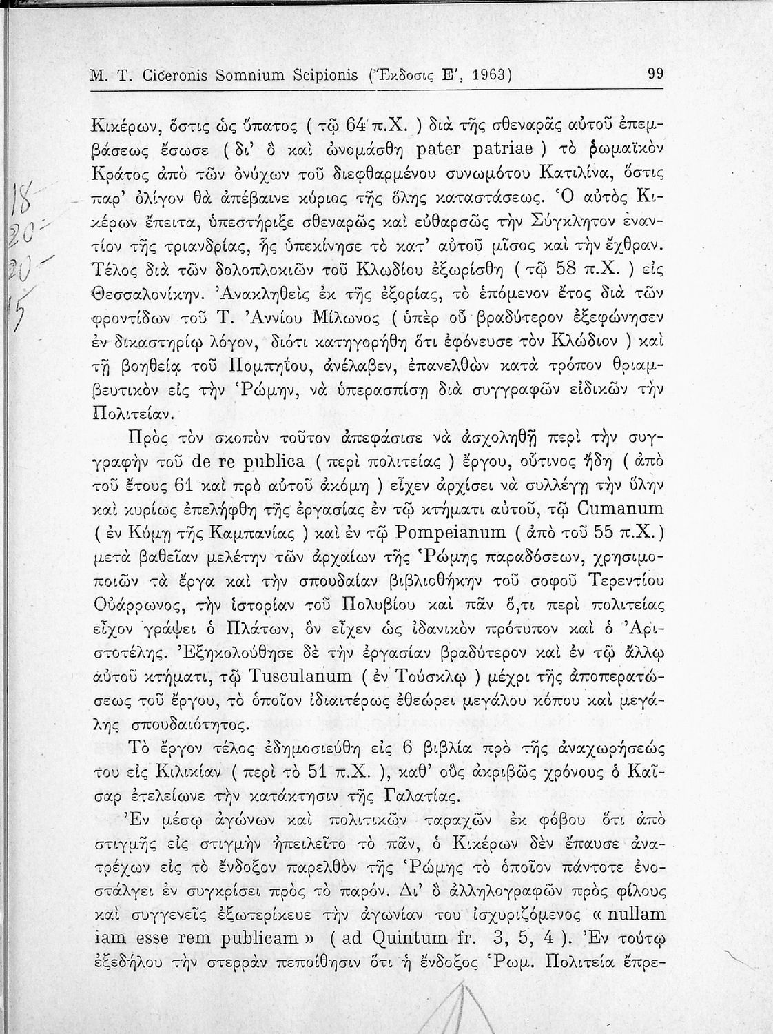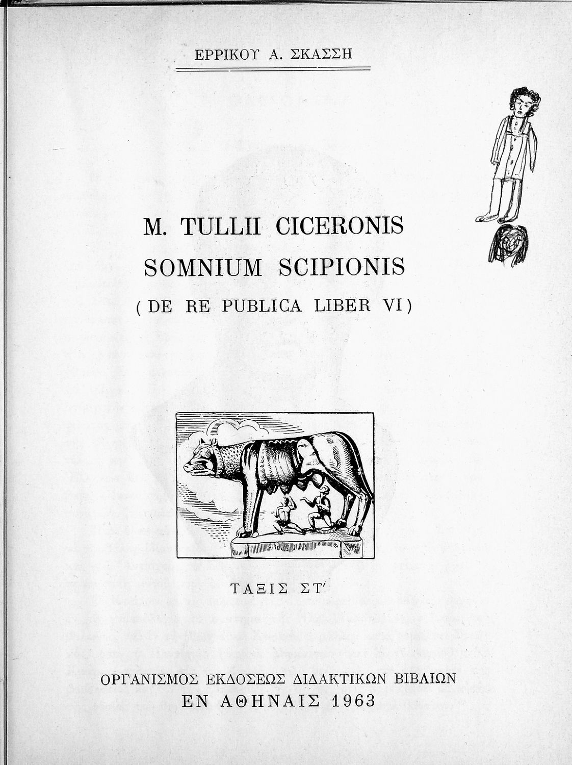 Σχολικό εγχειρίδιο Λατινικών ΣΤ΄ Γυμνασίου που περιλαμβάνει εισαγωγή στο έργο και τη ζωή του Κικέρωνα, το έργο του Ενύπνιον Σκιπίωνος και γλωσσικές και ερμηνευτικές σημειώσεις.