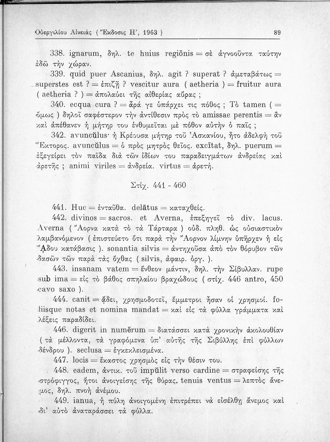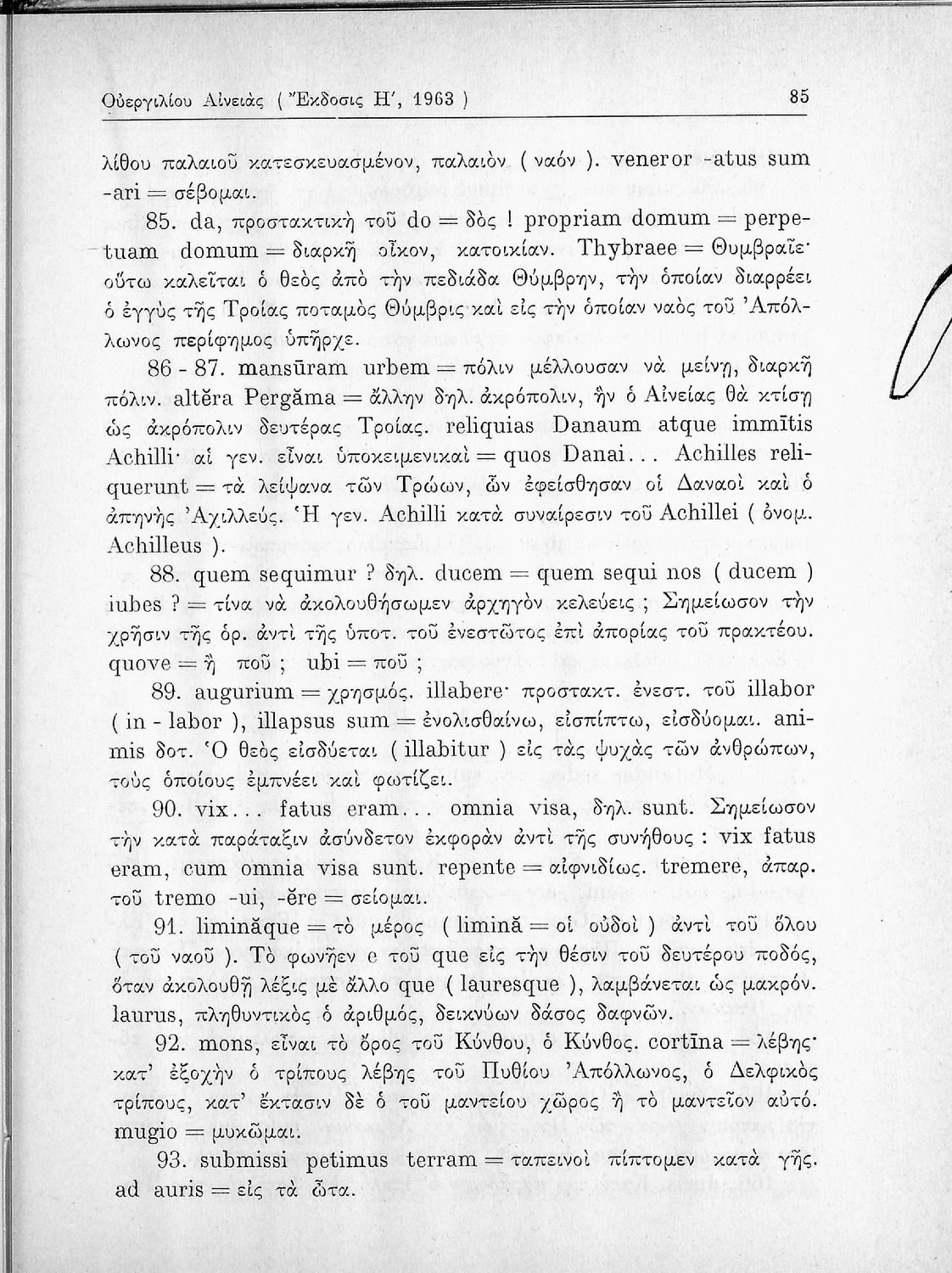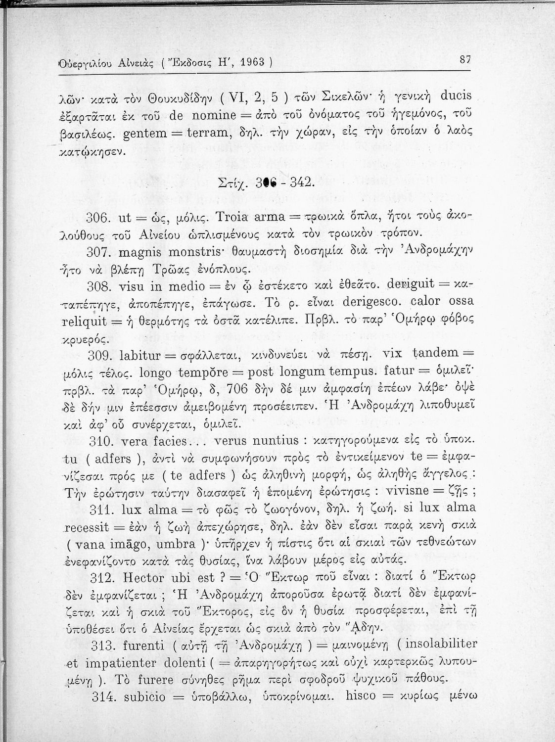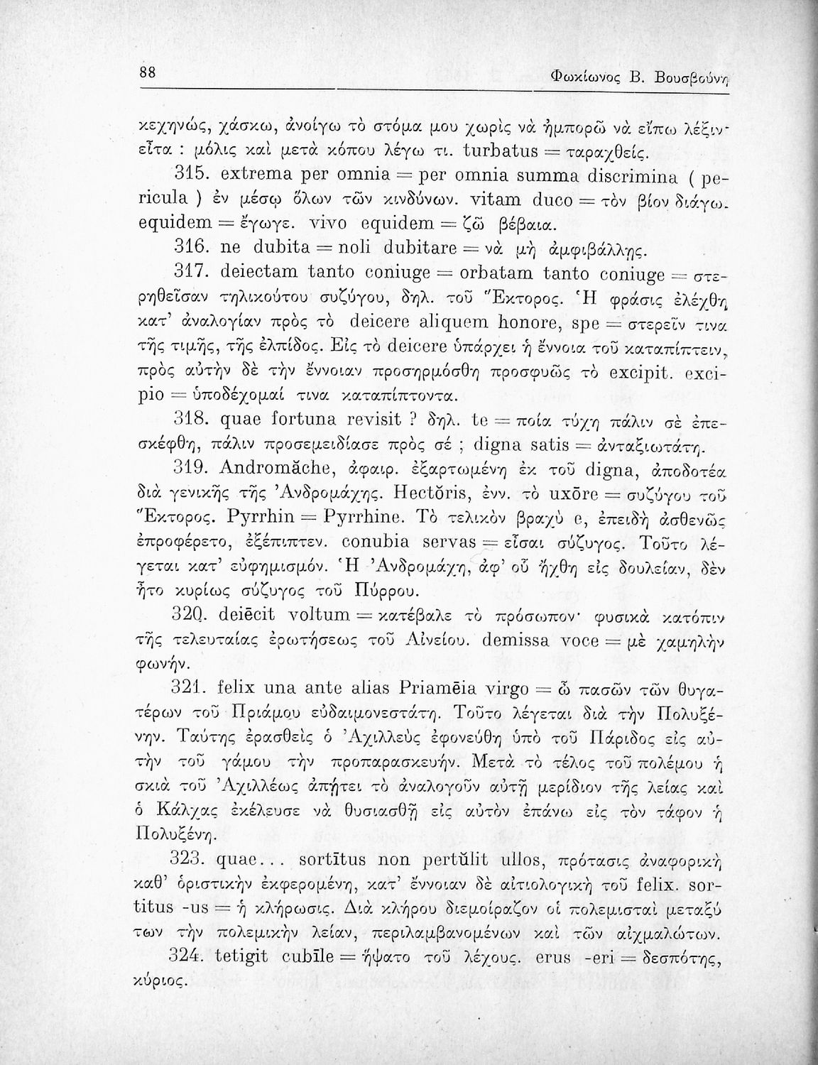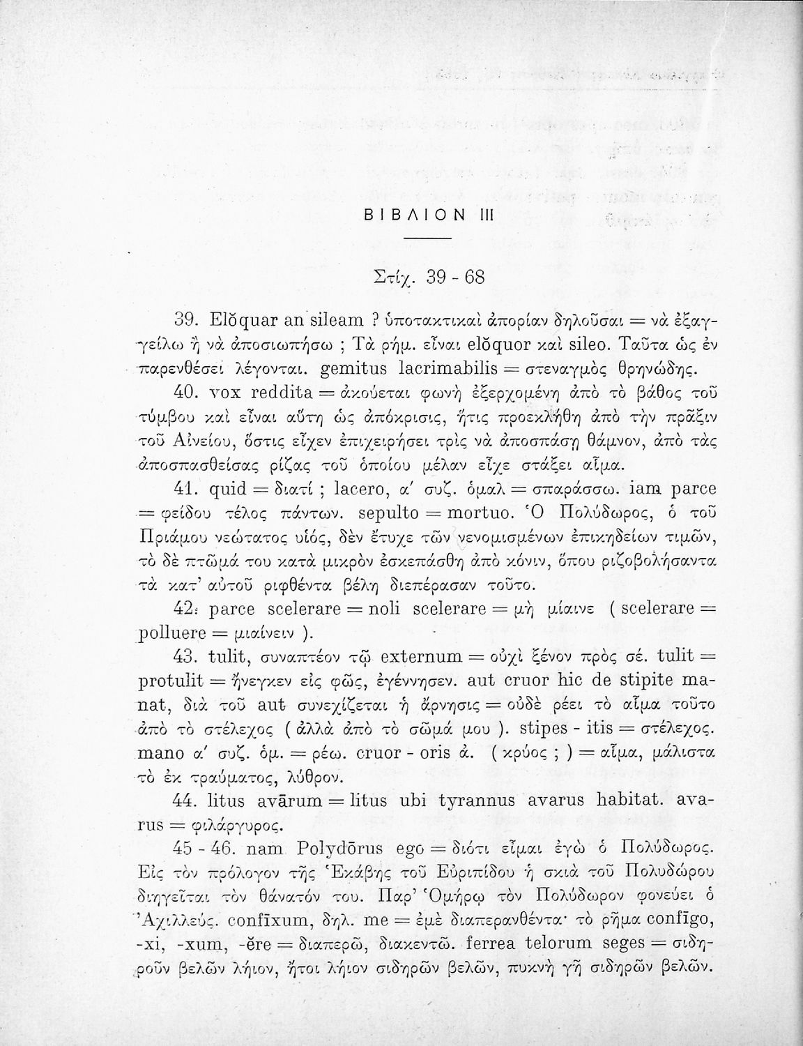 Πόπλιος Βιργίλιος Μάρων (P. Vergilius Maro), Μάρκος Τύλλιος Κικέρωνας (Marcus Tullius Ciceco), Κουίντος Οράτιος Φλάκκος (Q. Horati Flacci), Φωκίωνας Β. Βουσβούνης, Ερρίκος Σκάσσης, Ζαφείριος Ν. Φραγκίσκος (σχόλια)