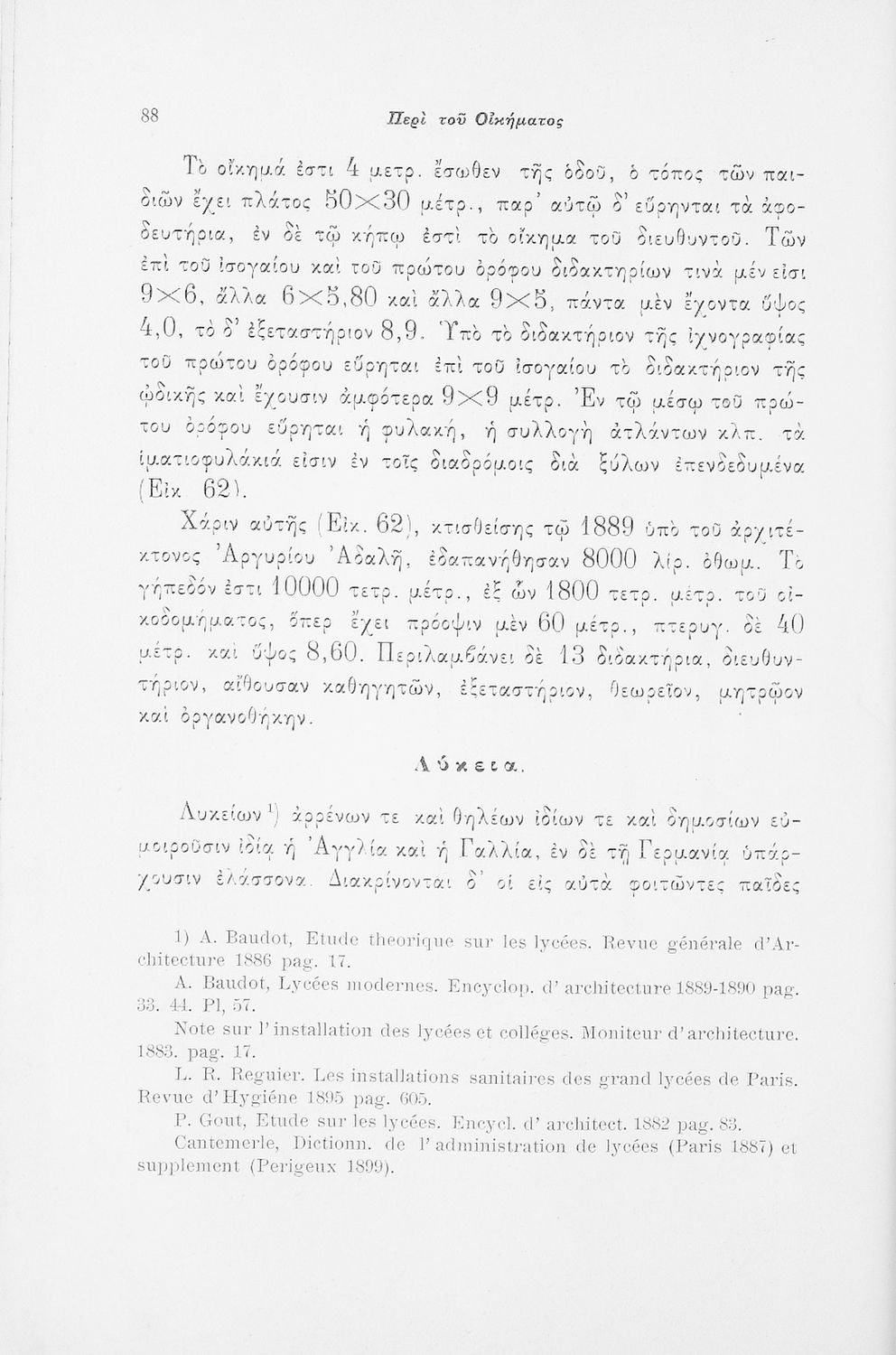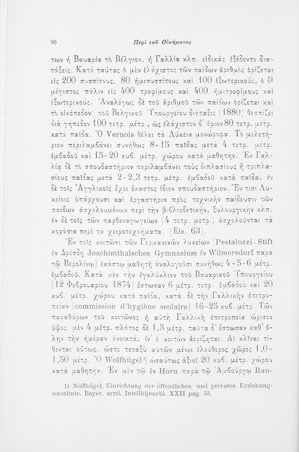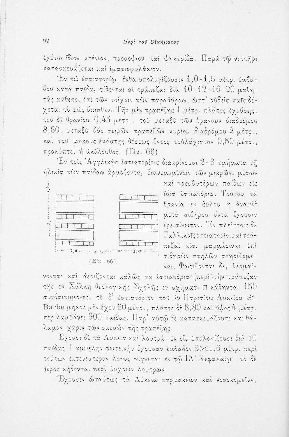 Επιστημονικό σύγγραμμα με εκτενείς αναφορές στην σχετική ξενόγλωσση βιβλιογραφία που πραγματεύεται ζητήματα υγιεινής των σχολικών κτηρίων και της διδασκαλίας και ιατρικής εποπτείας.