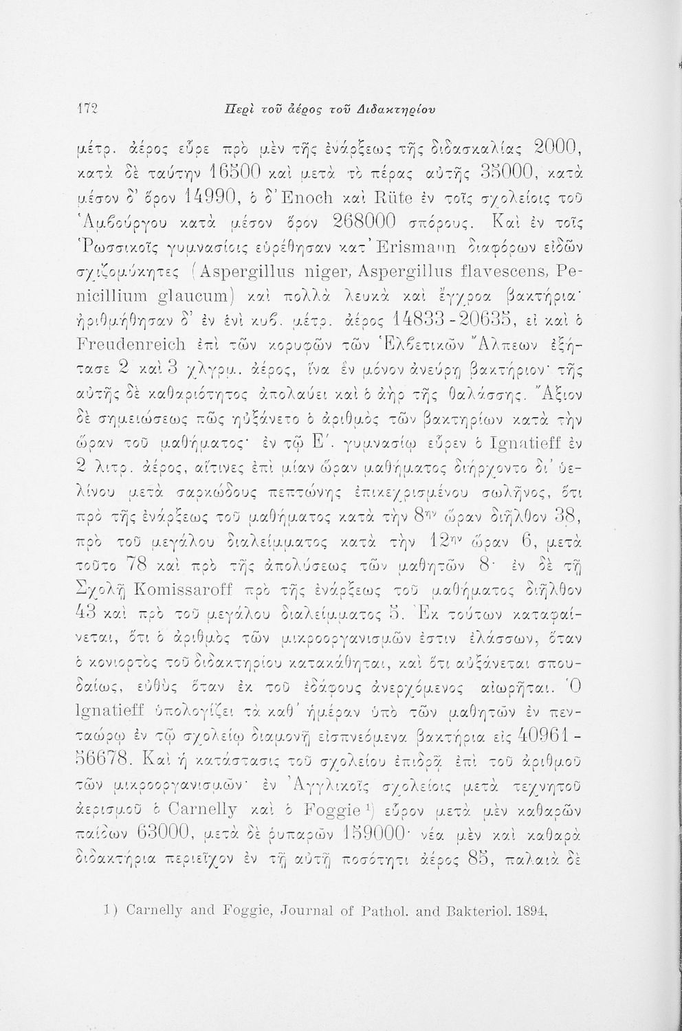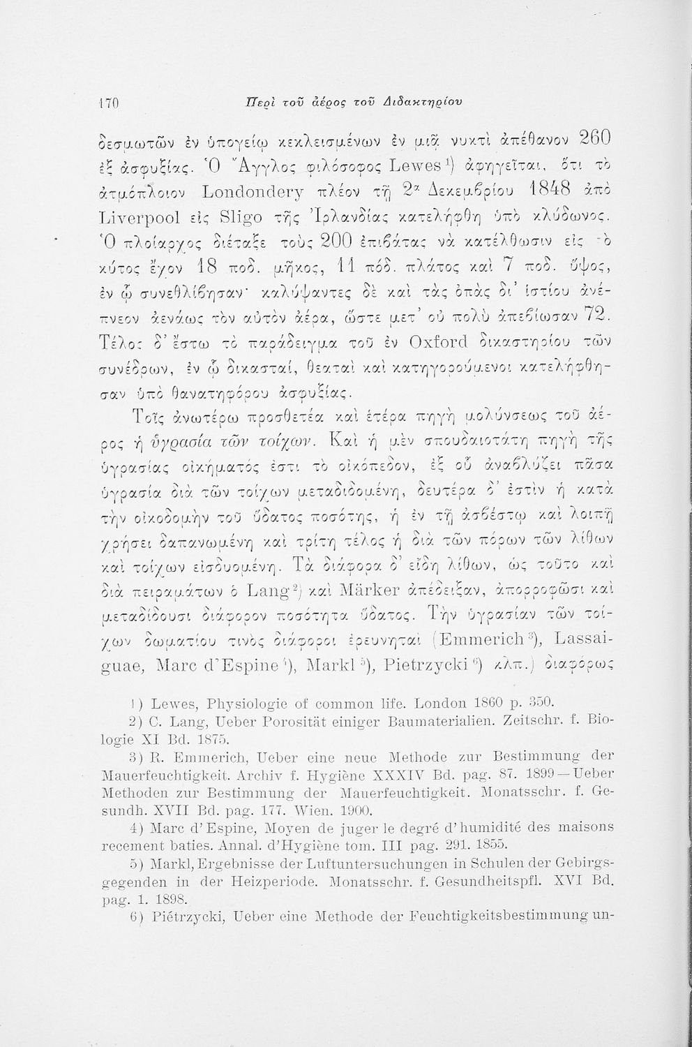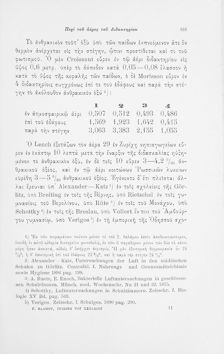 Επιστημονικό σύγγραμμα με εκτενείς αναφορές στην σχετική ξενόγλωσση βιβλιογραφία που πραγματεύεται ζητήματα υγιεινής των σχολικών κτηρίων και της διδασκαλίας και ιατρικής εποπτείας.