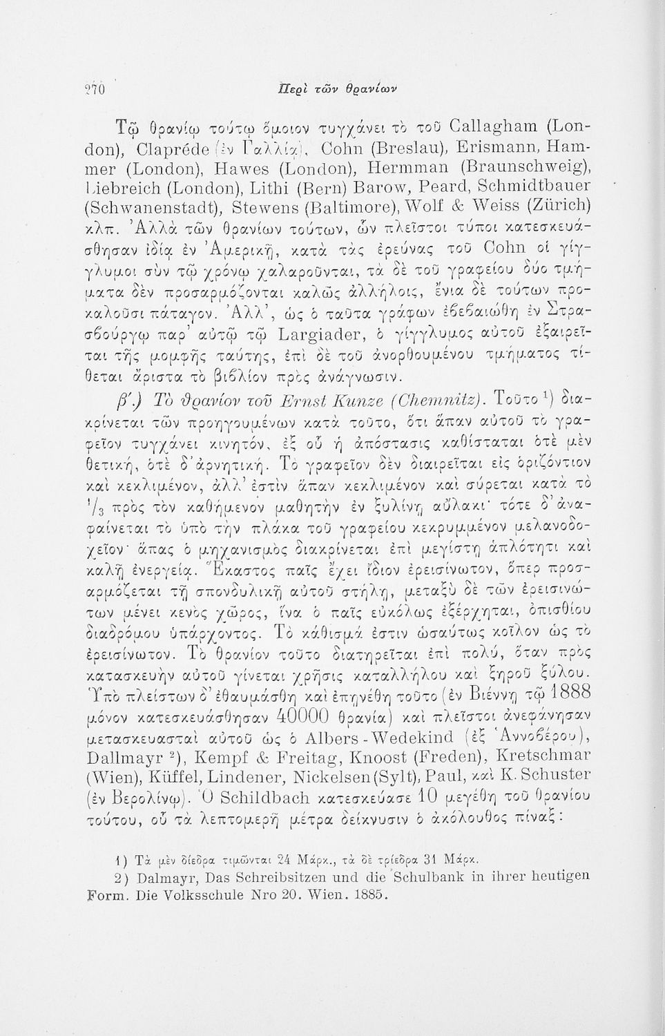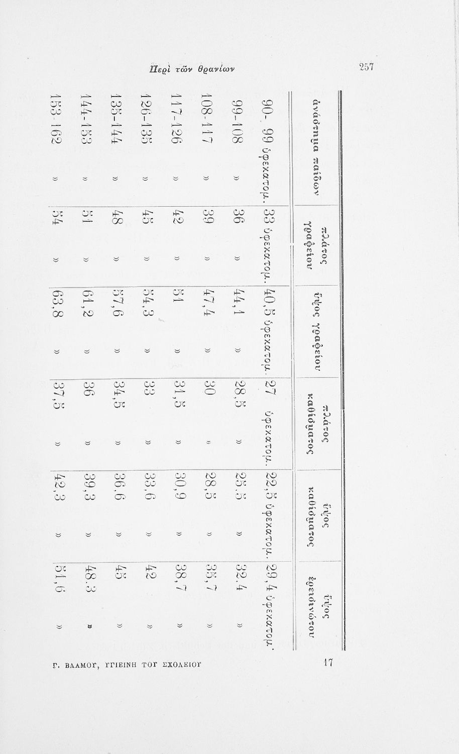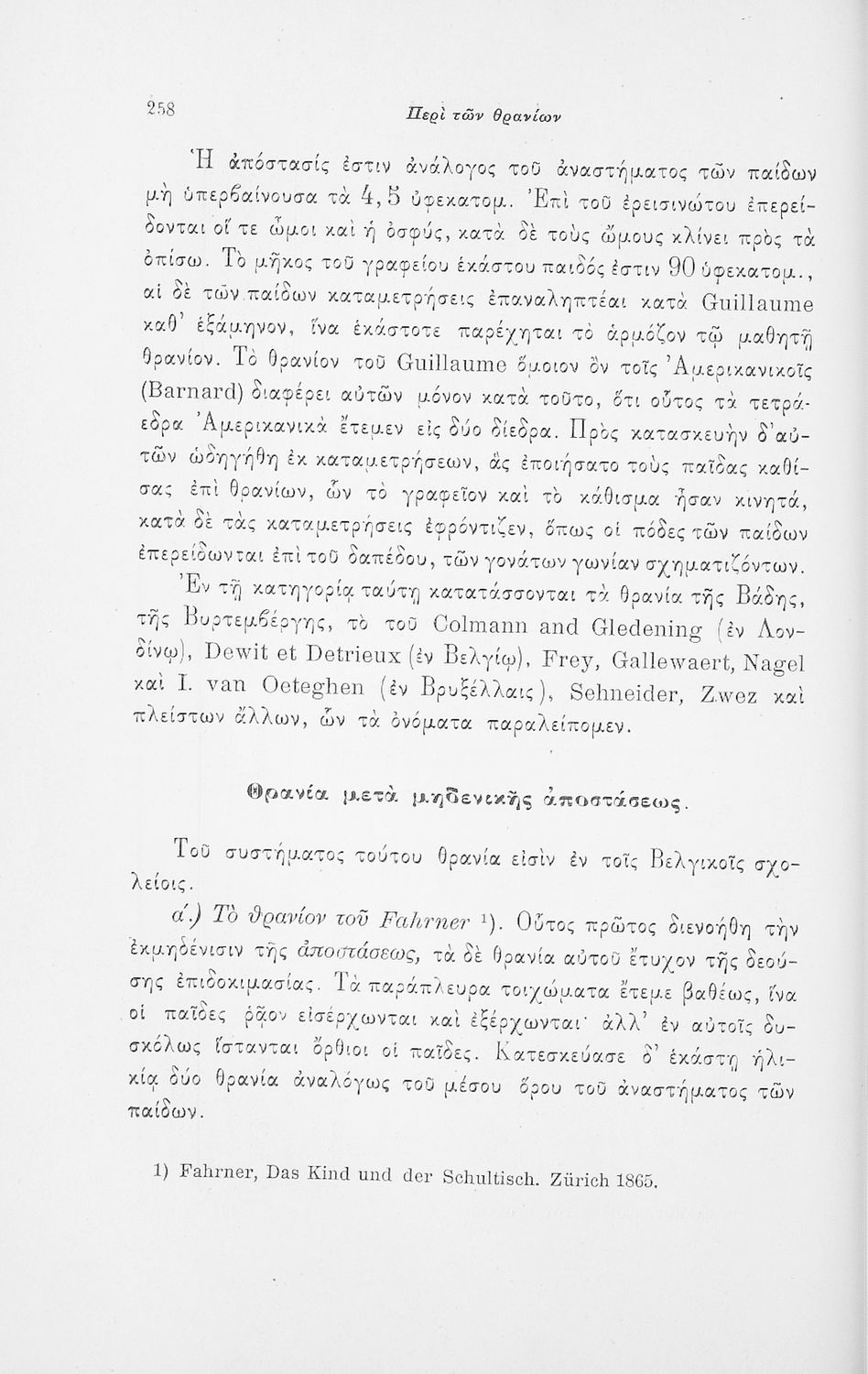Επιστημονικό σύγγραμμα με εκτενείς αναφορές στην σχετική ξενόγλωσση βιβλιογραφία που πραγματεύεται ζητήματα υγιεινής των σχολικών κτηρίων και της διδασκαλίας και ιατρικής εποπτείας.