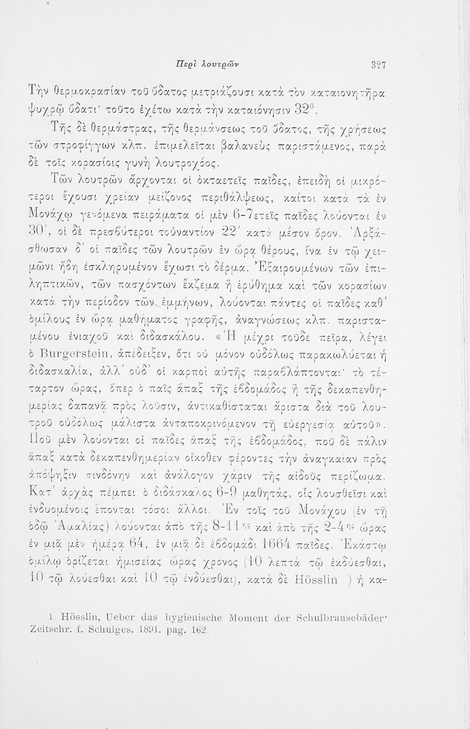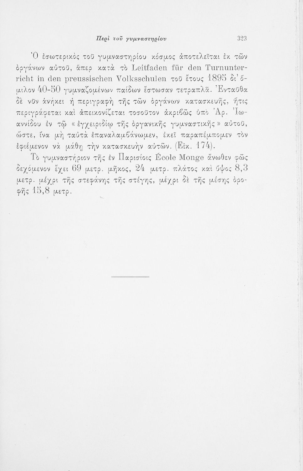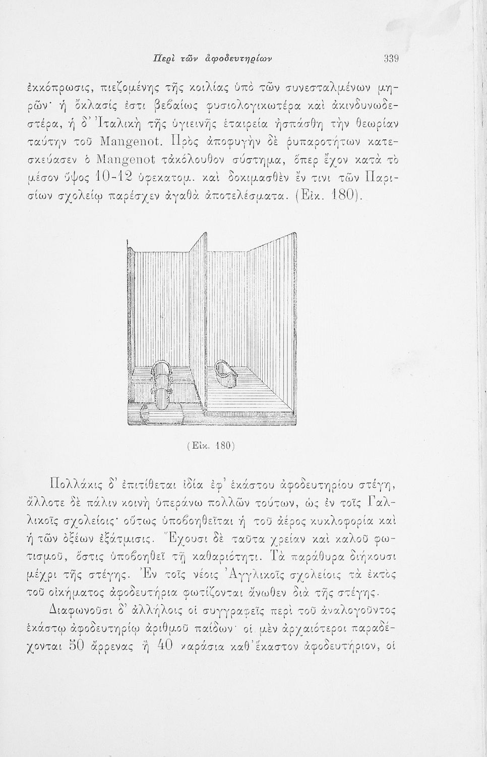 Παρουσίαση περιεχομένου: Επιστημονικό σύγγραμμα με εκτενείς αναφορές στην σχετική ξενόγλωσση βιβλιογραφία που πραγματεύεται ζητήματα υγιεινής των σχολικών κτηρίων και της διδασκαλίας και ιατρικής εποπτείας.