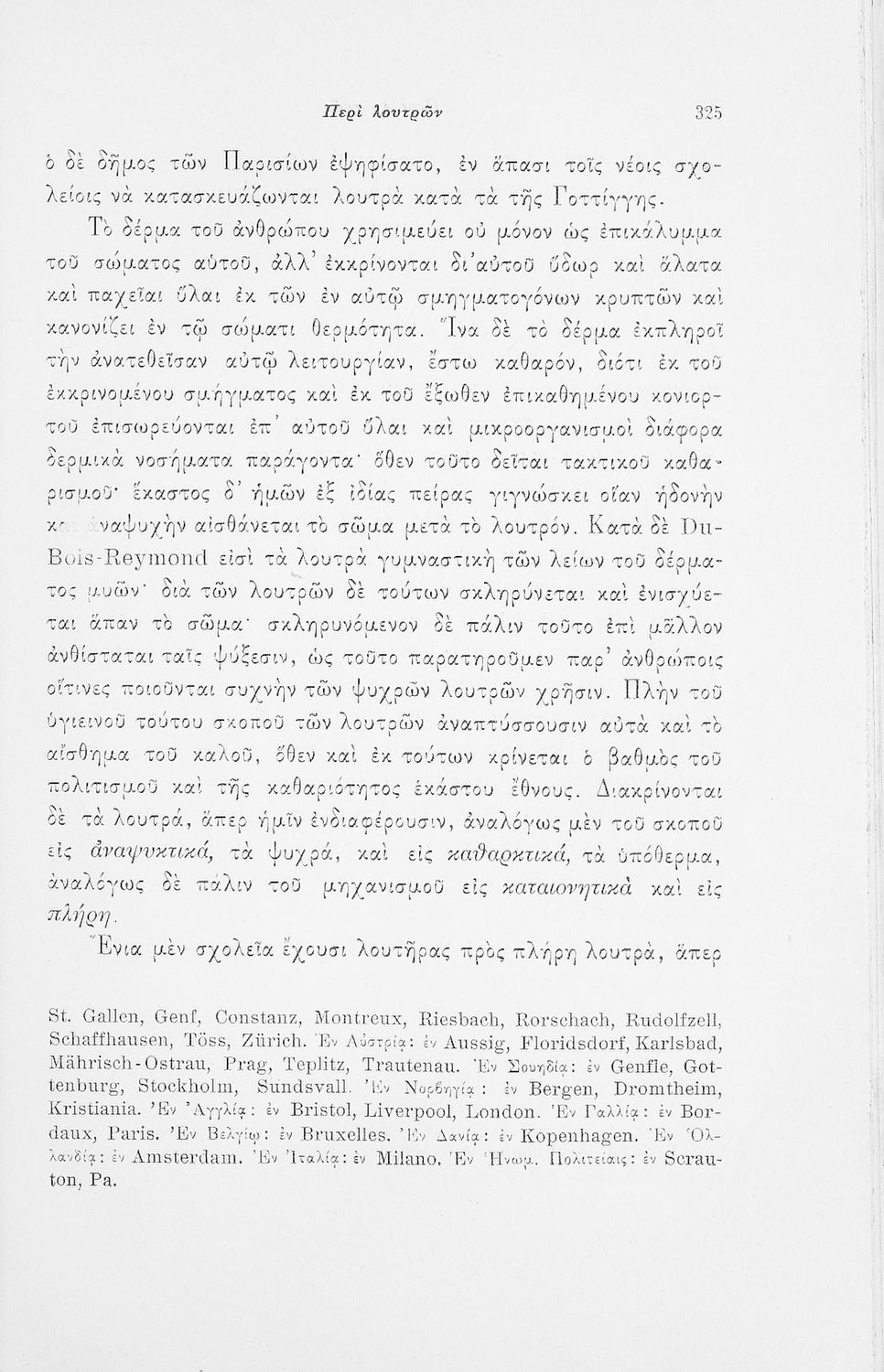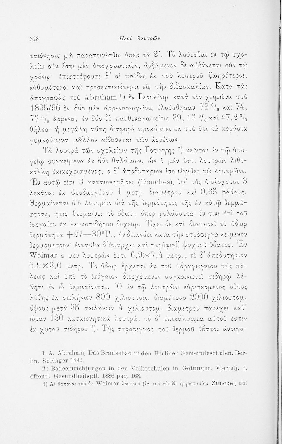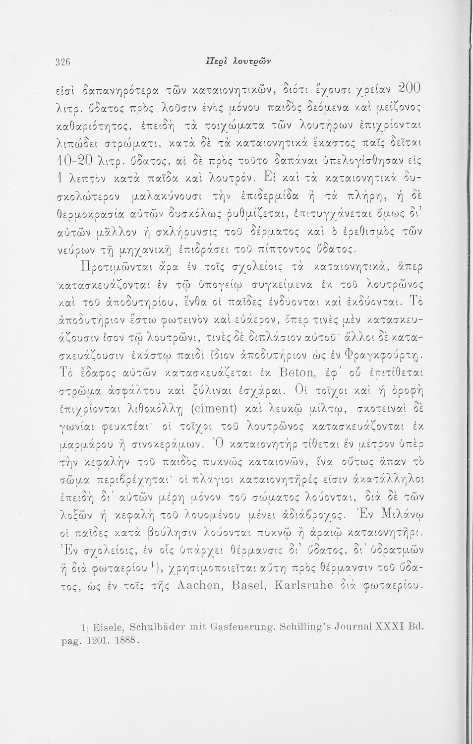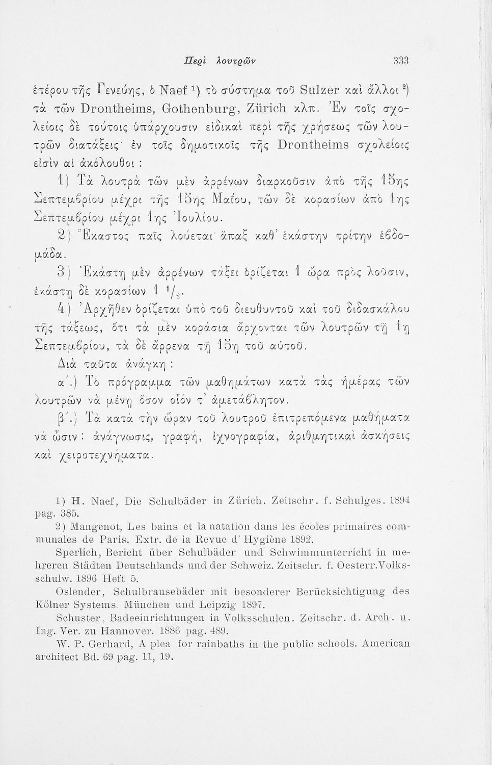 Επιστημονικό σύγγραμμα με εκτενείς αναφορές στην σχετική ξενόγλωσση βιβλιογραφία που πραγματεύεται ζητήματα υγιεινής των σχολικών κτηρίων και της διδασκαλίας και ιατρικής εποπτείας.