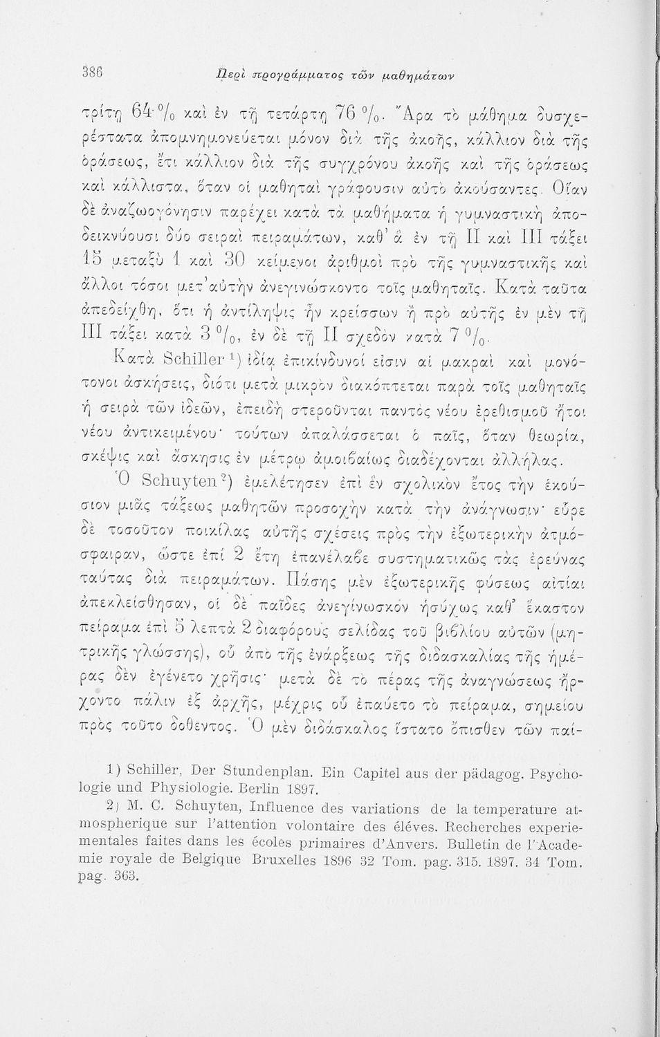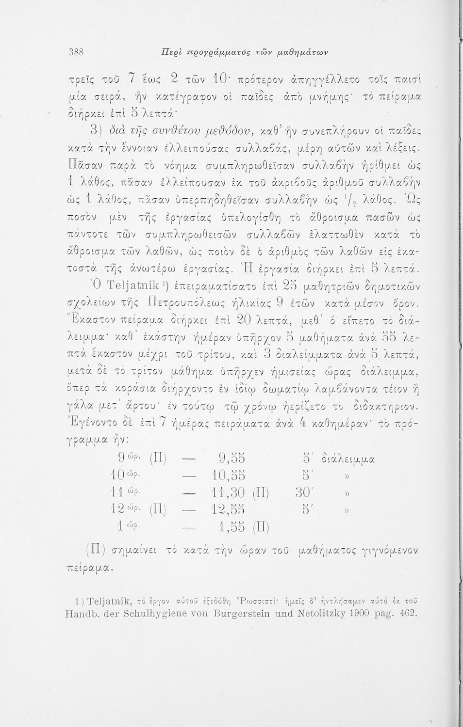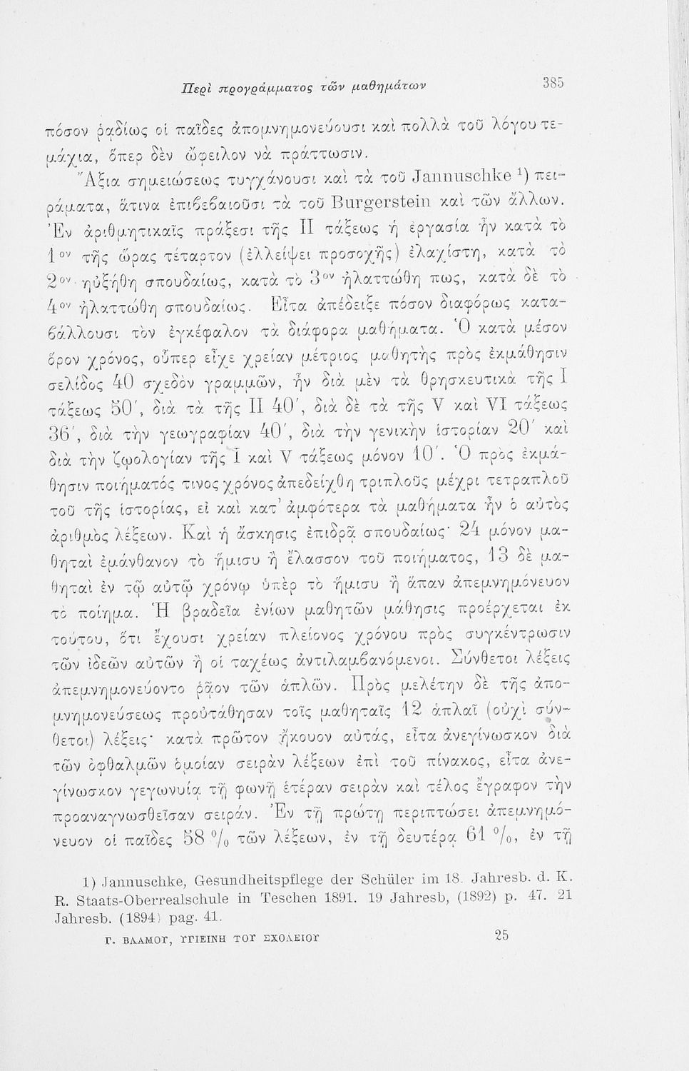 Επιστημονικό σύγγραμμα με εκτενείς αναφορές στην σχετική ξενόγλωσση βιβλιογραφία που πραγματεύεται ζητήματα υγιεινής των σχολικών κτηρίων και της διδασκαλίας και ιατρικής εποπτείας.