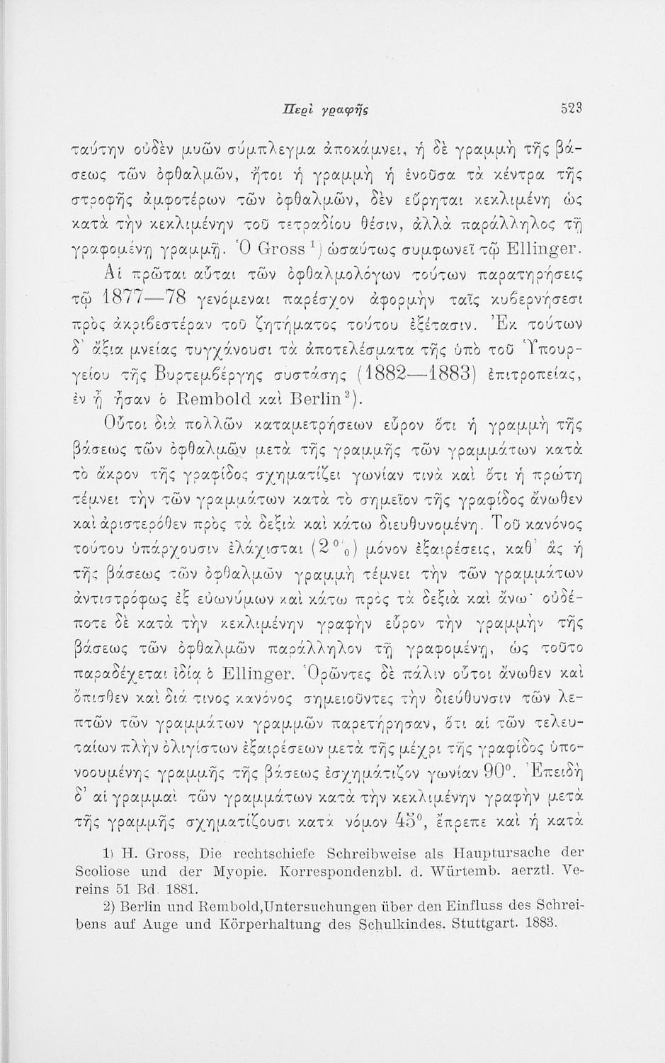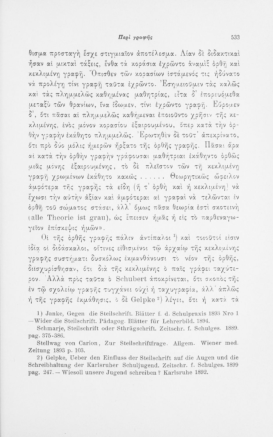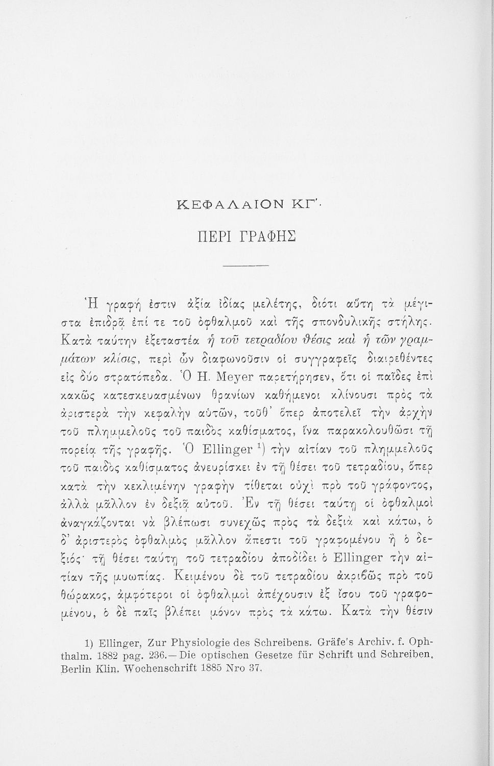 Επιστημονικό σύγγραμμα με εκτενείς αναφορές στην σχετική ξενόγλωσση βιβλιογραφία που πραγματεύεται ζητήματα υγιεινής των σχολικών κτηρίων και της διδασκαλίας και ιατρικής εποπτείας.