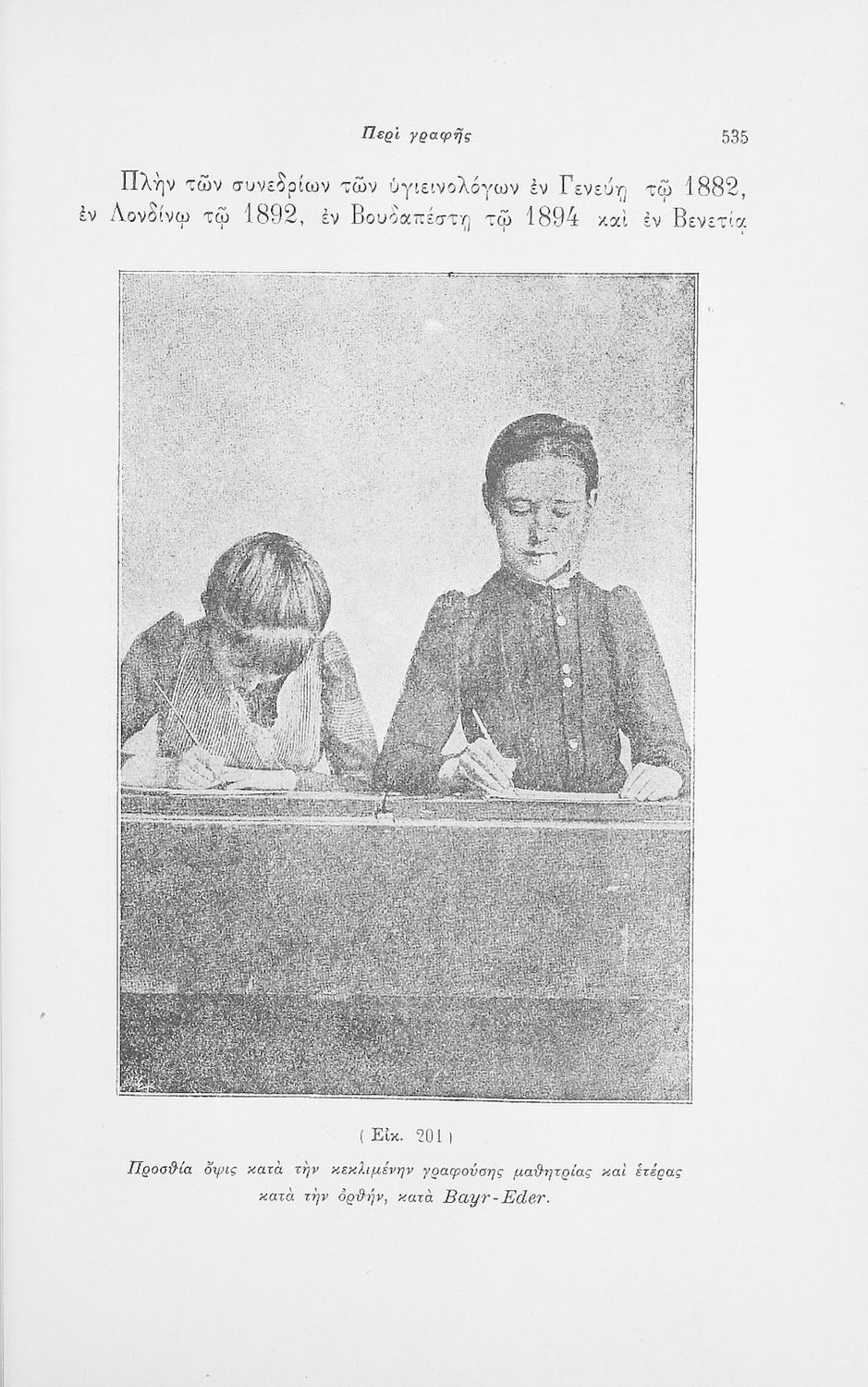 Παρουσίαση περιεχομένου: Επιστημονικό σύγγραμμα με εκτενείς αναφορές στην σχετική ξενόγλωσση βιβλιογραφία που πραγματεύεται ζητήματα υγιεινής των σχολικών κτηρίων και της διδασκαλίας και ιατρικής εποπτείας.