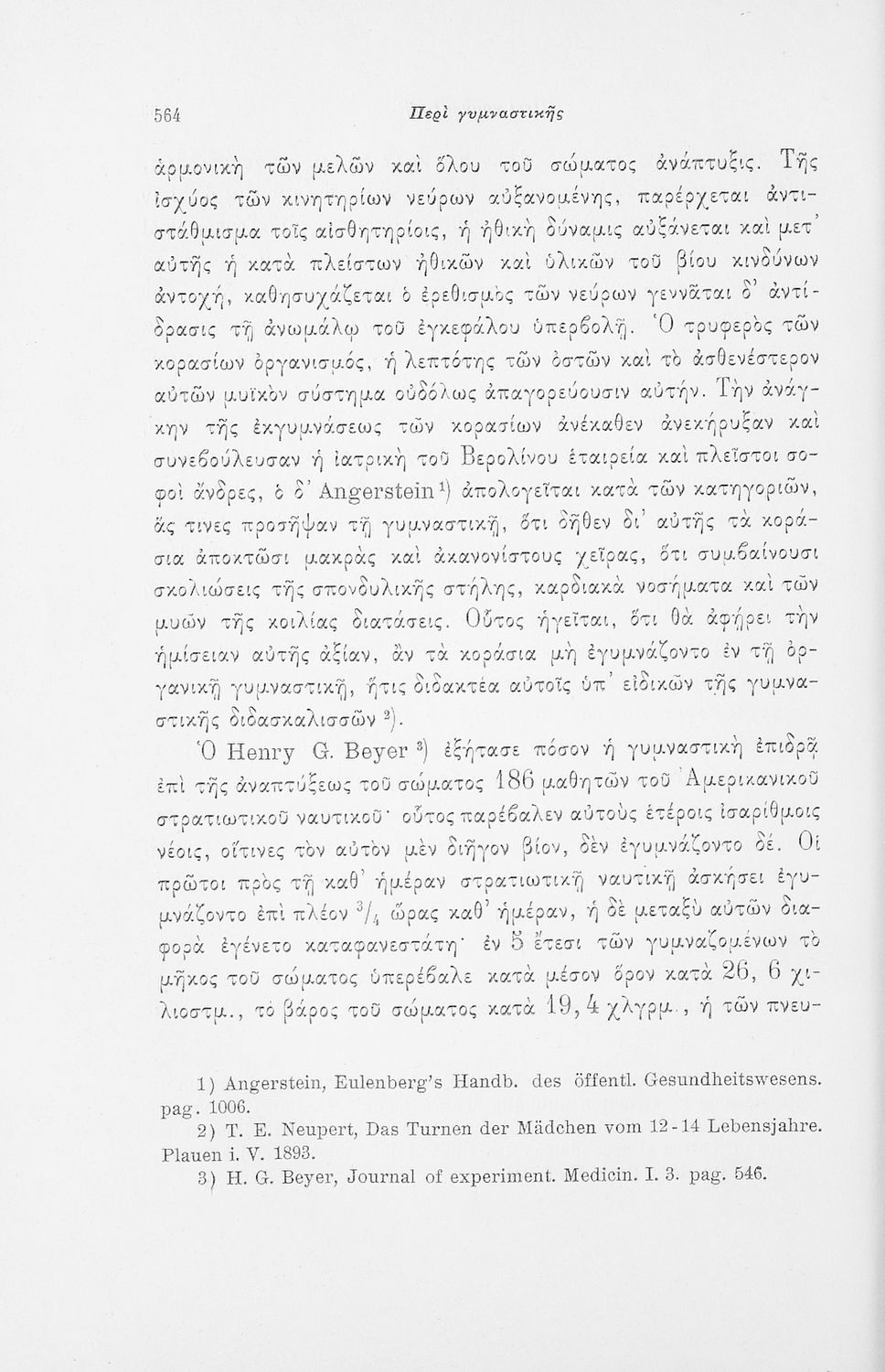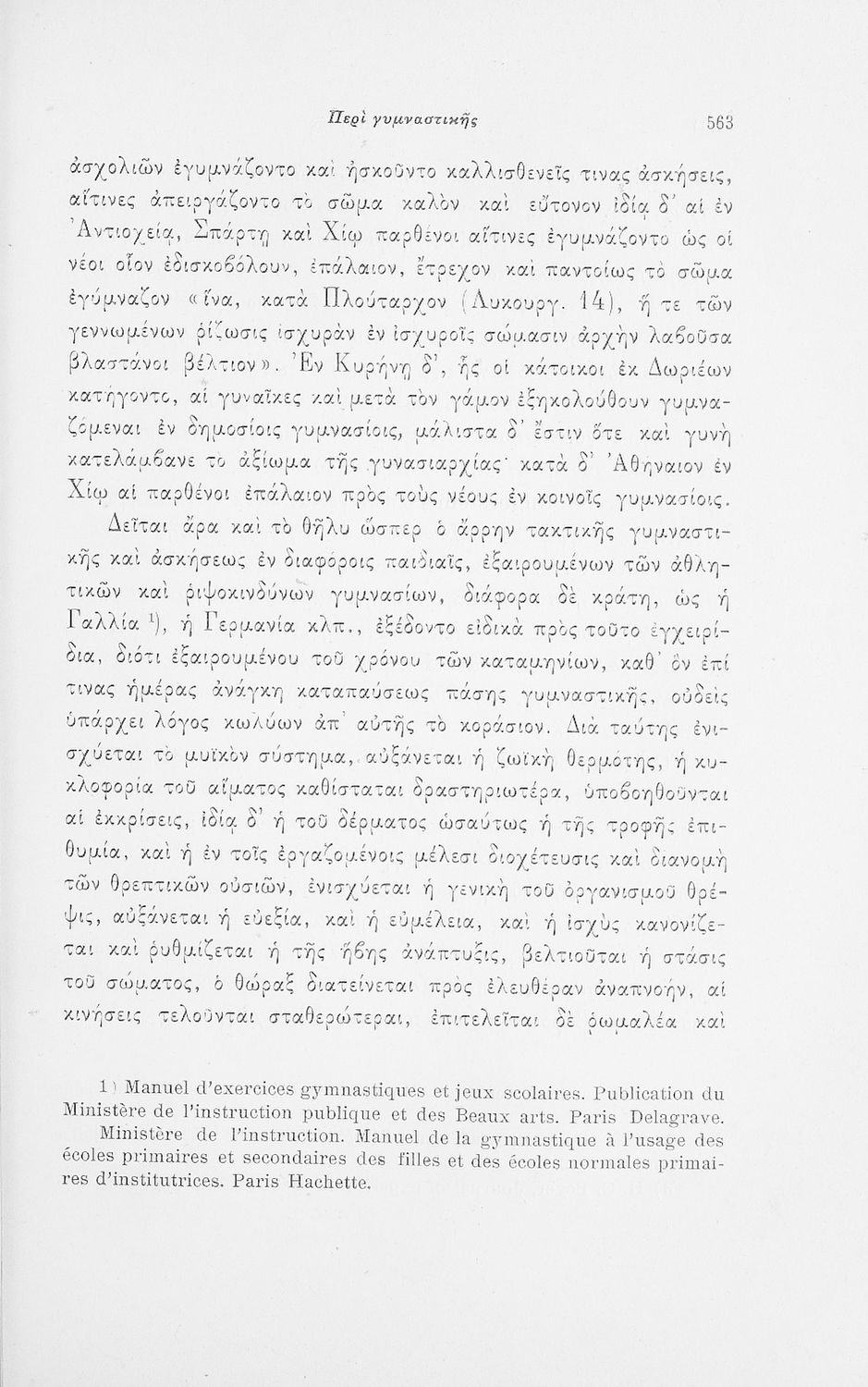Επιστημονικό σύγγραμμα με εκτενείς αναφορές στην σχετική ξενόγλωσση βιβλιογραφία που πραγματεύεται ζητήματα υγιεινής των σχολικών κτηρίων και της διδασκαλίας και ιατρικής εποπτείας.