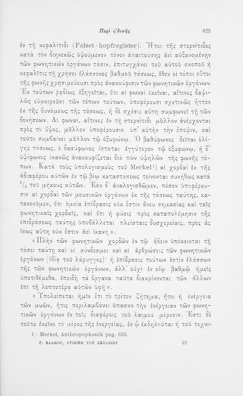 Επιστημονικό σύγγραμμα με εκτενείς αναφορές στην σχετική ξενόγλωσση βιβλιογραφία που πραγματεύεται ζητήματα υγιεινής των σχολικών κτηρίων και της διδασκαλίας και ιατρικής εποπτείας.