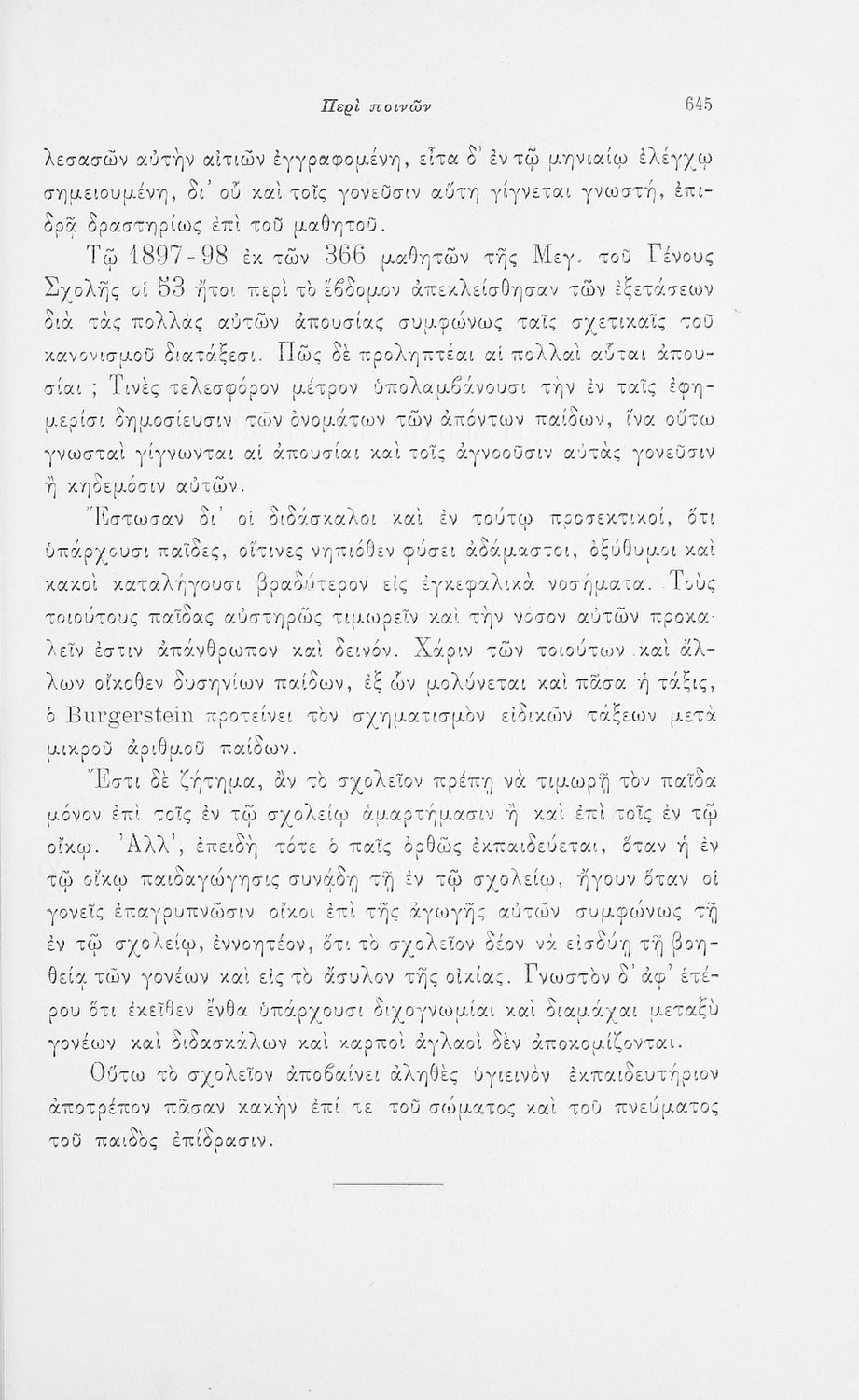 Παρουσίαση περιεχομένου: Επιστημονικό σύγγραμμα με εκτενείς αναφορές στην σχετική ξενόγλωσση βιβλιογραφία που πραγματεύεται ζητήματα υγιεινής των σχολικών κτηρίων και της διδασκαλίας και ιατρικής εποπτείας.