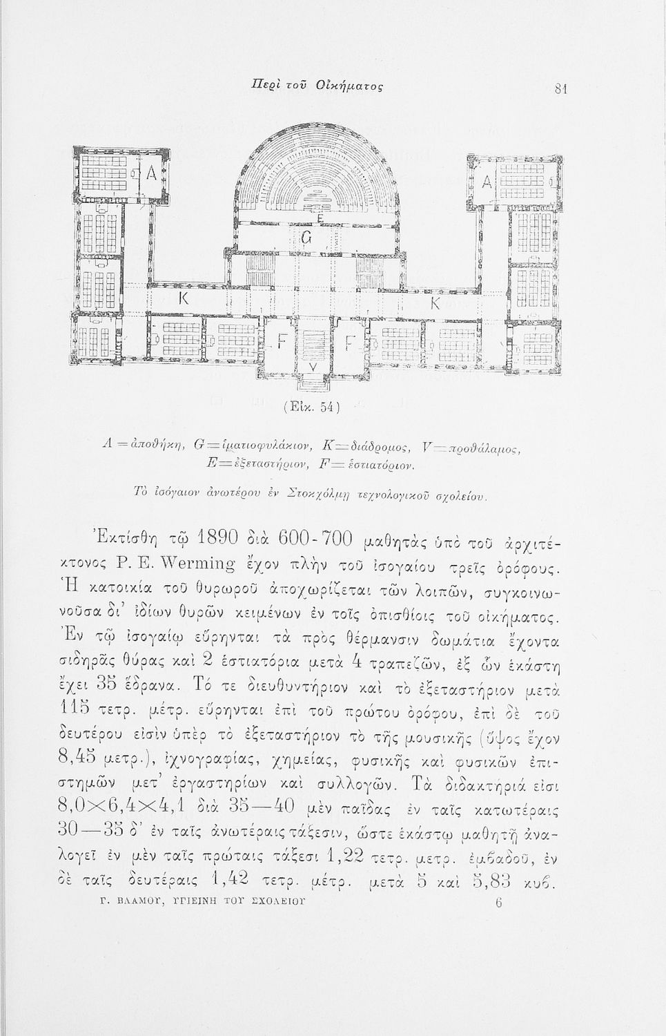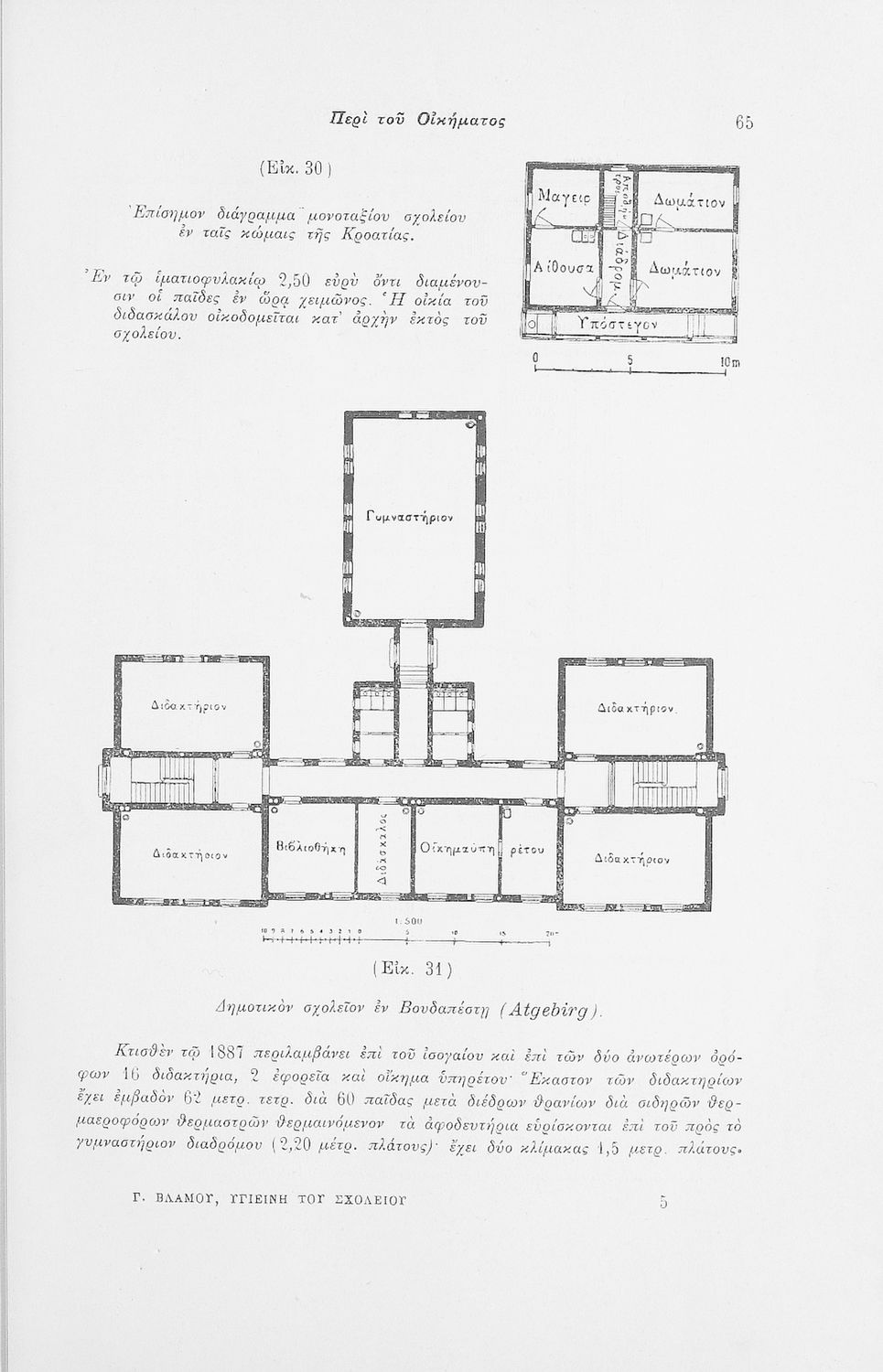 Επιστημονικό σύγγραμμα με εκτενείς αναφορές στην σχετική ξενόγλωσση βιβλιογραφία που πραγματεύεται ζητήματα υγιεινής των σχολικών κτηρίων και της διδασκαλίας και ιατρικής εποπτείας.