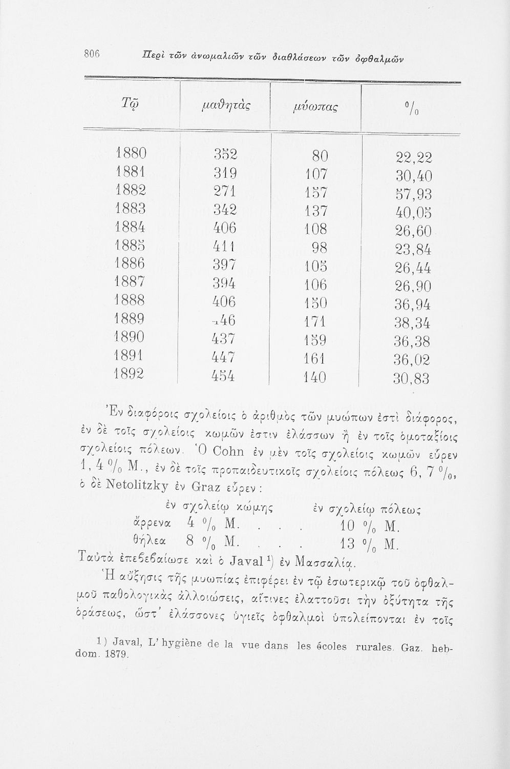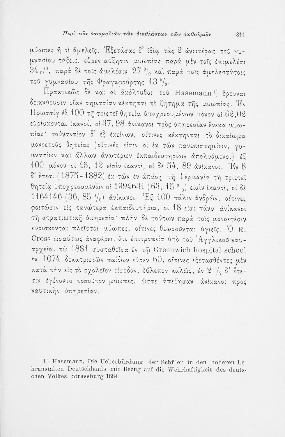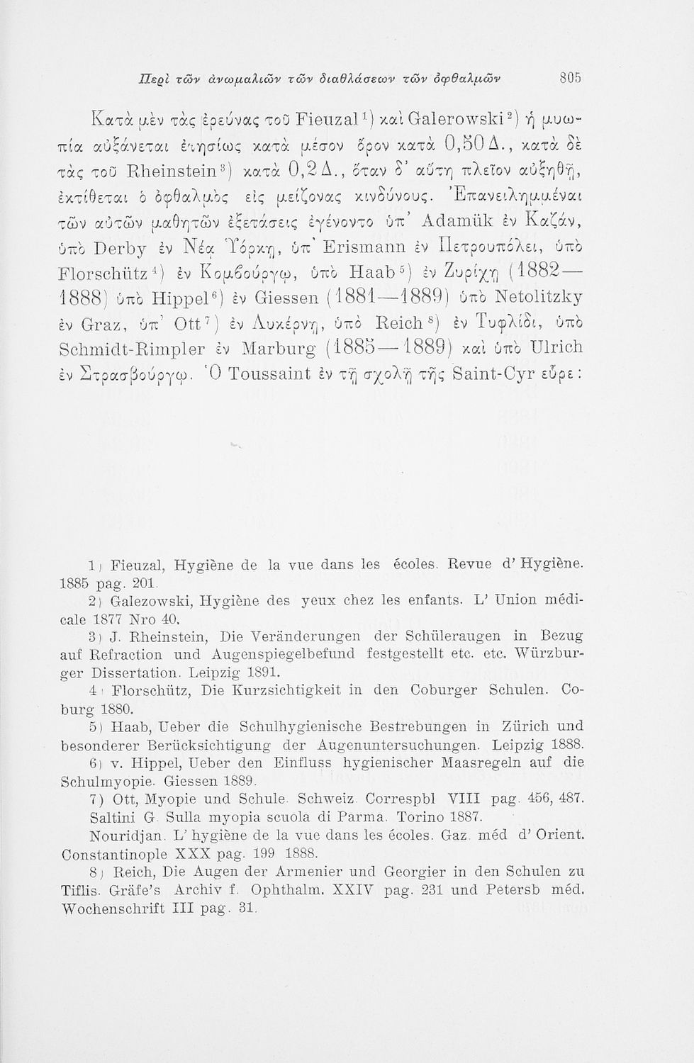 Επιστημονικό σύγγραμμα με εκτενείς αναφορές στην σχετική ξενόγλωσση βιβλιογραφία που πραγματεύεται ζητήματα υγιεινής των σχολικών κτηρίων και της διδασκαλίας και ιατρικής εποπτείας.