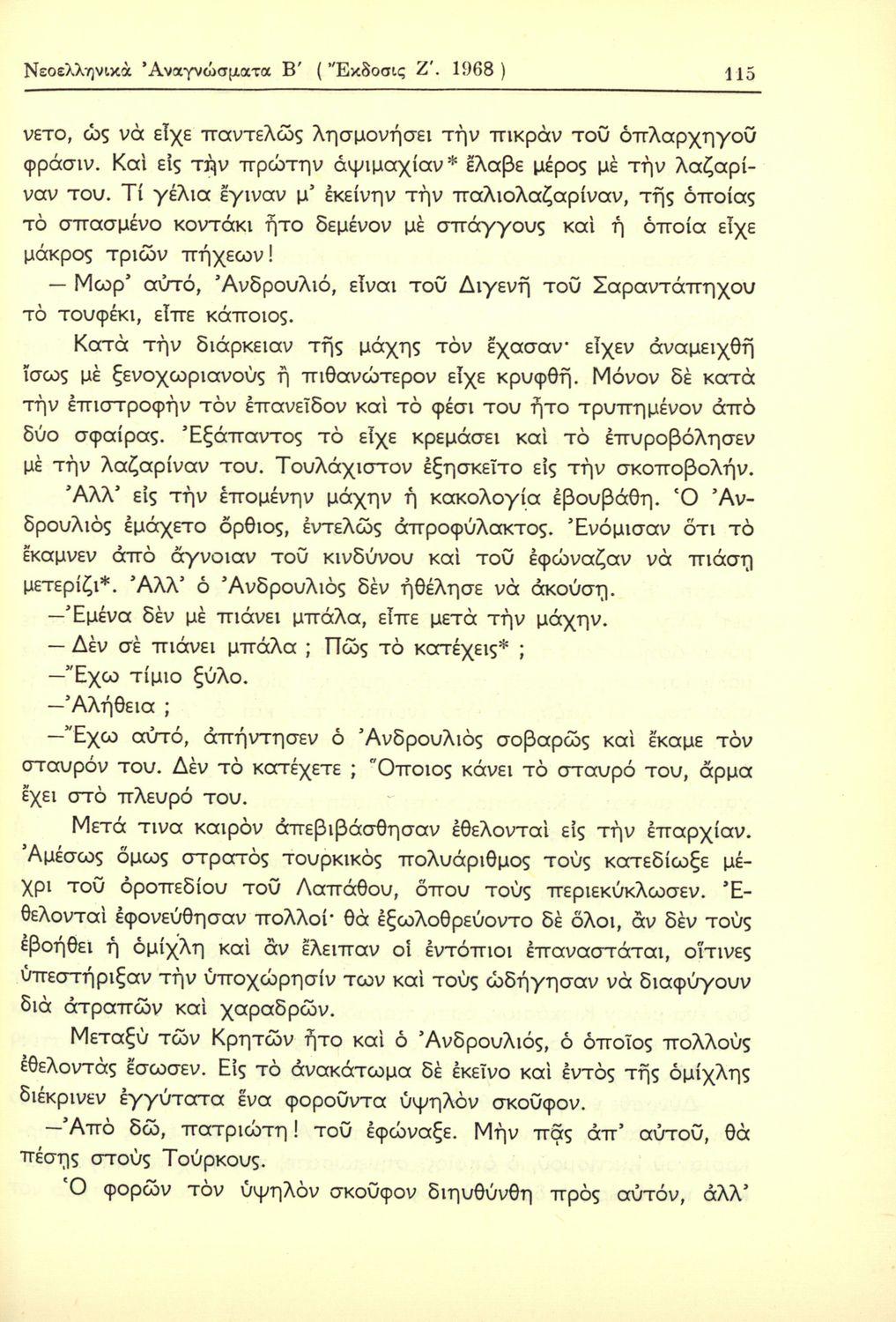 Σχολικό εγχειρίδιο Νέων Ελληνικών Β΄ Εξατάξιου Γυμνασίου που περιλαμβάνει ποιήματα και πεζά Ελλήνων συγγραφέων και δημοτικά τραγούδια εμπνευσμένα από την σύγχρονη ελληνική ιστορία, τη βυζαντινή ιστορία, την ...