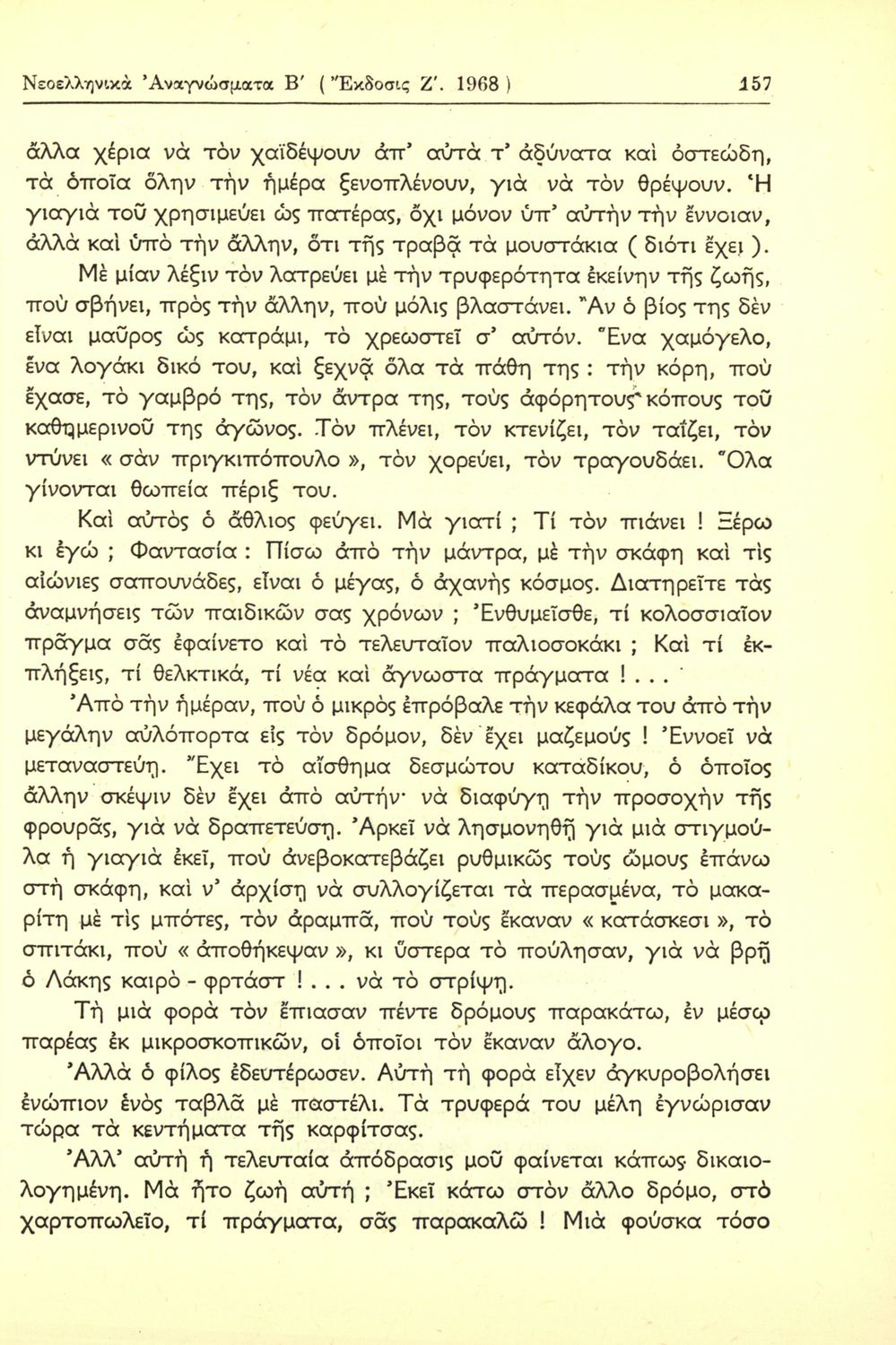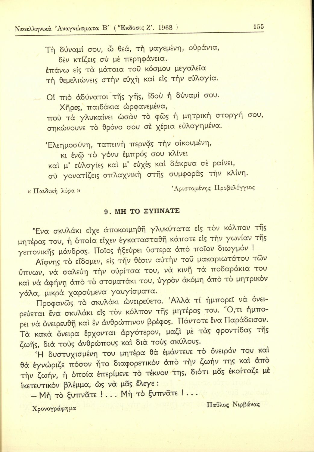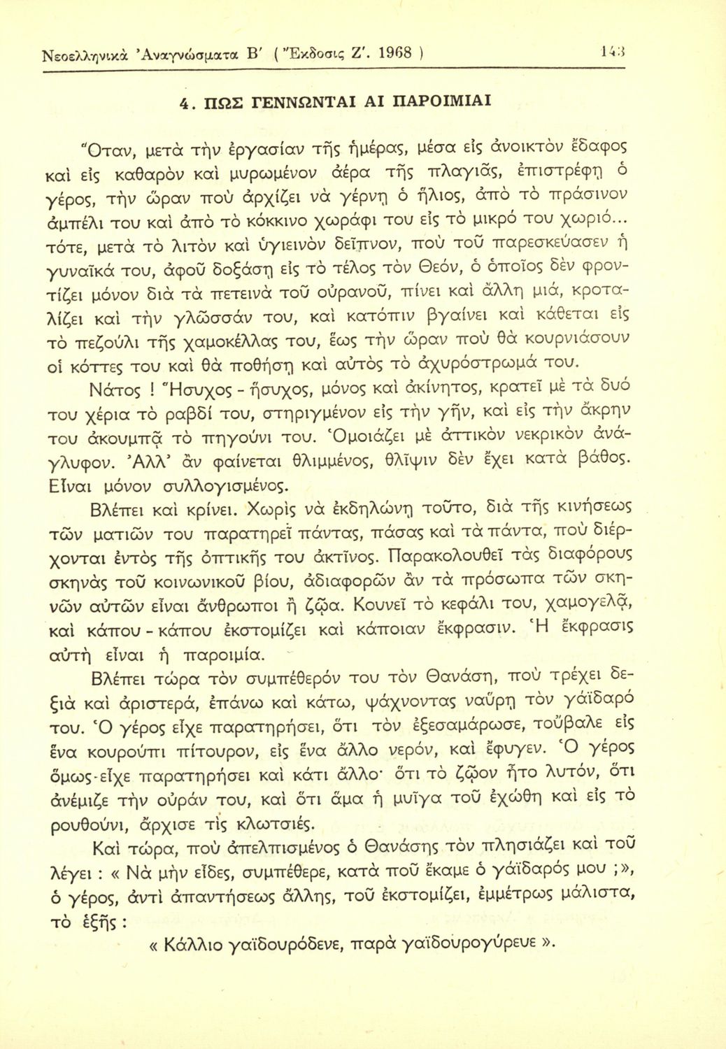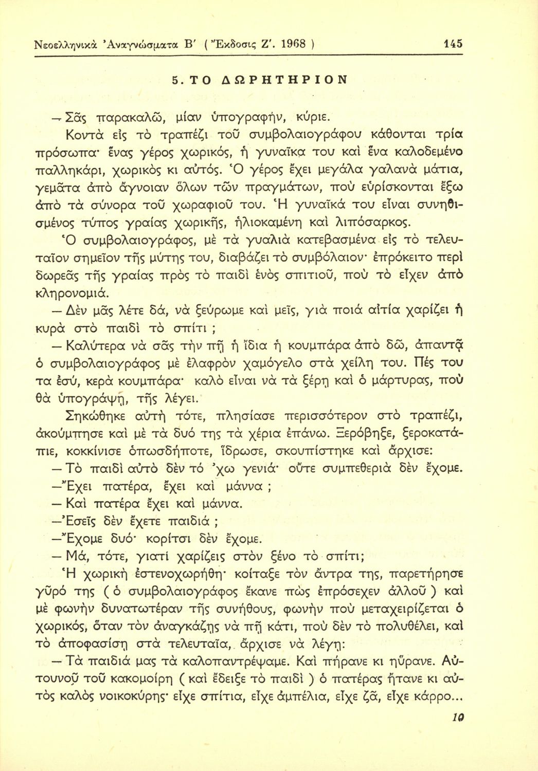 Σχολικό εγχειρίδιο Νέων Ελληνικών Δ΄ Γυμνασίου και Β΄ Αστικού Σχολείου που περιέχει πεζά και ποιήματα Ελλήνων συγγραφέων εμπνευσμένα από τη θρησκευτική και κοινωνική ζωή, την ελληνική μυθολογία, την αρχαία και