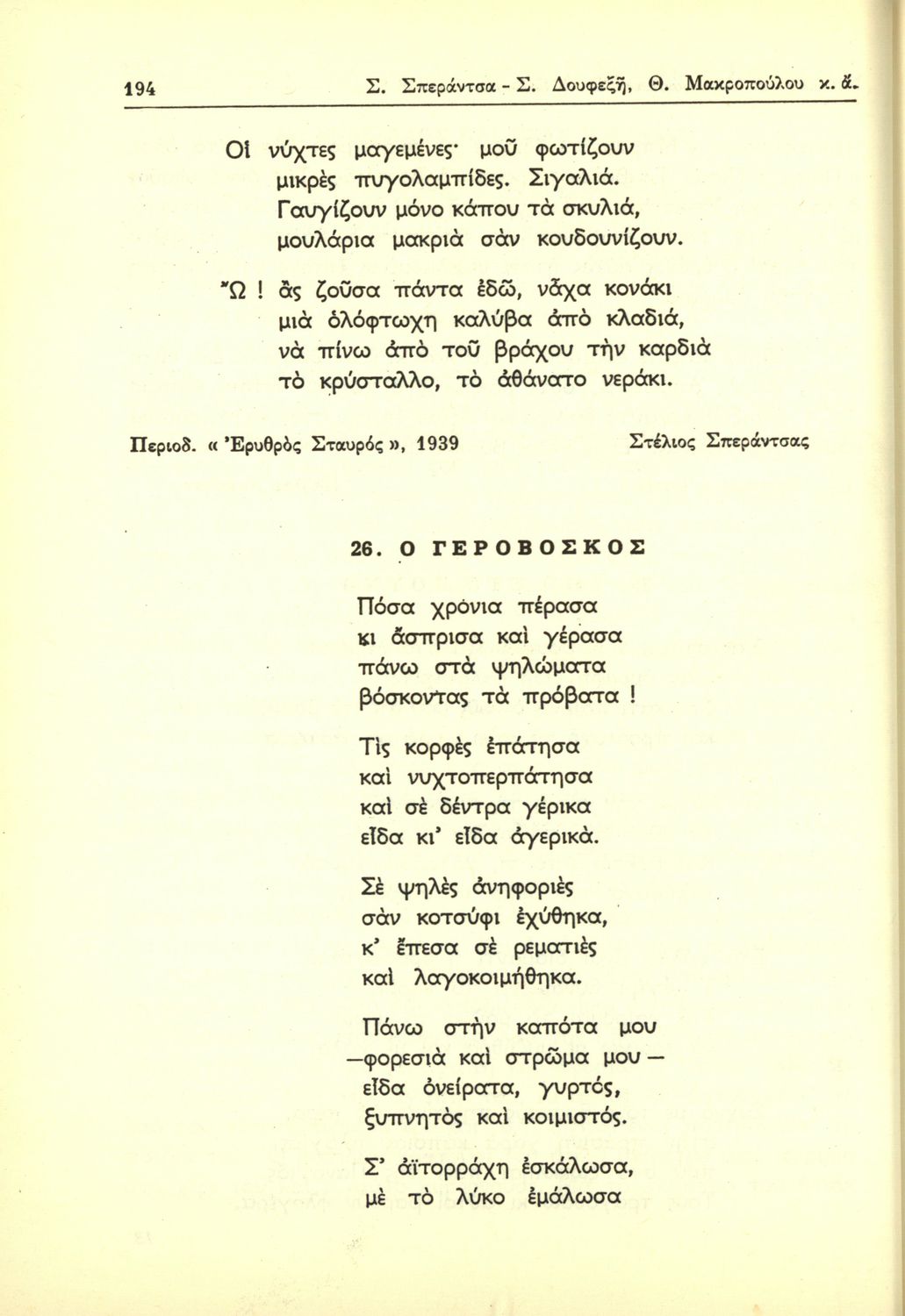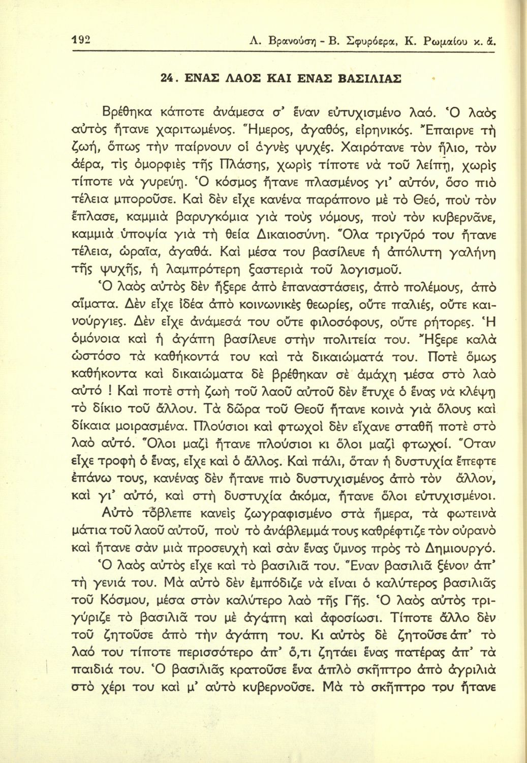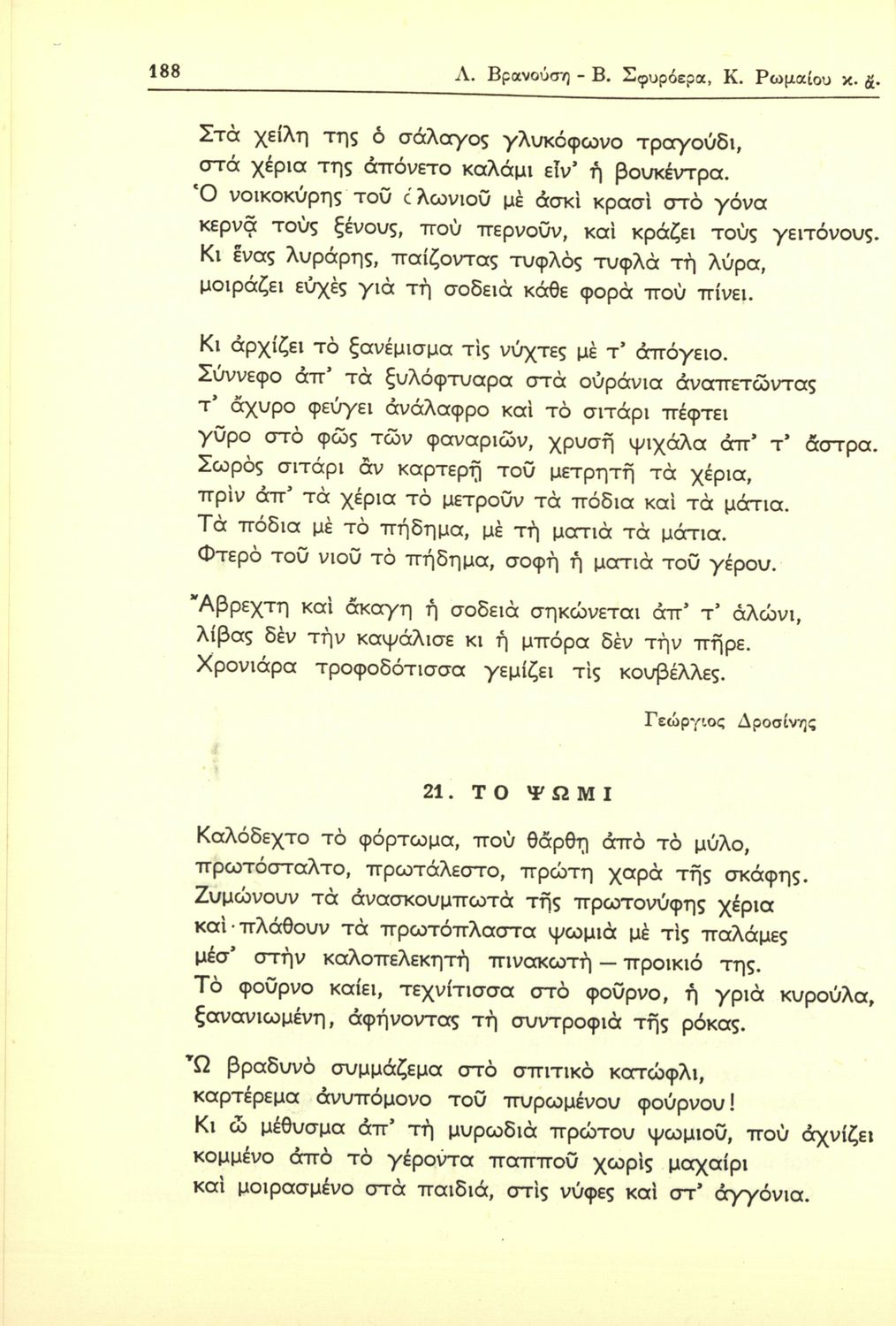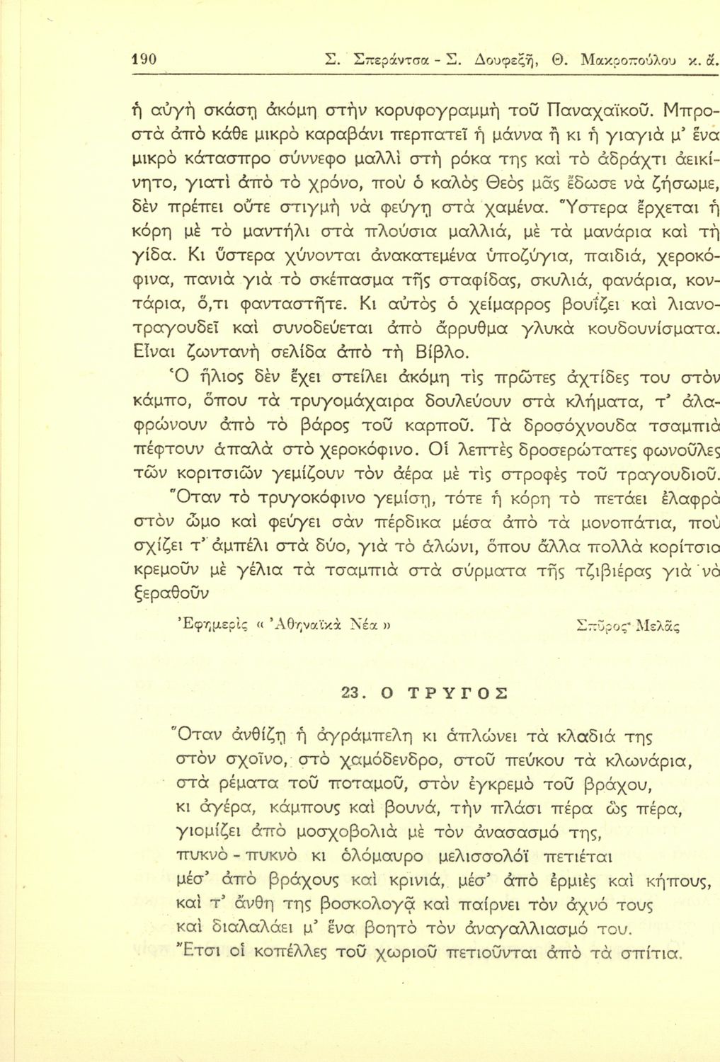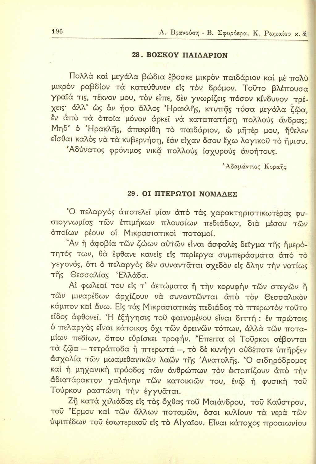 Σχολικό εγχειρίδιο Νέων Ελληνικών Β' Γυμνασίου που περιέχει ποιήματα και πεζά Ελλήνων συγγραφέων εμπνευσμένα από τη θρησκευτική, εθνική, οικογενειακή και κοινωνική ζωή και την ελληνική φύση. Περιέχει παράρτημα με βιογραφίες των συγγραφέων και λεξιλόγιο. Φέρει το σύμβολο της δικτατορίας.