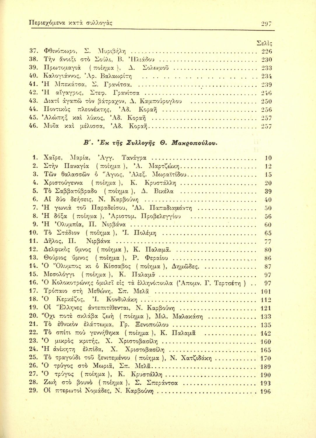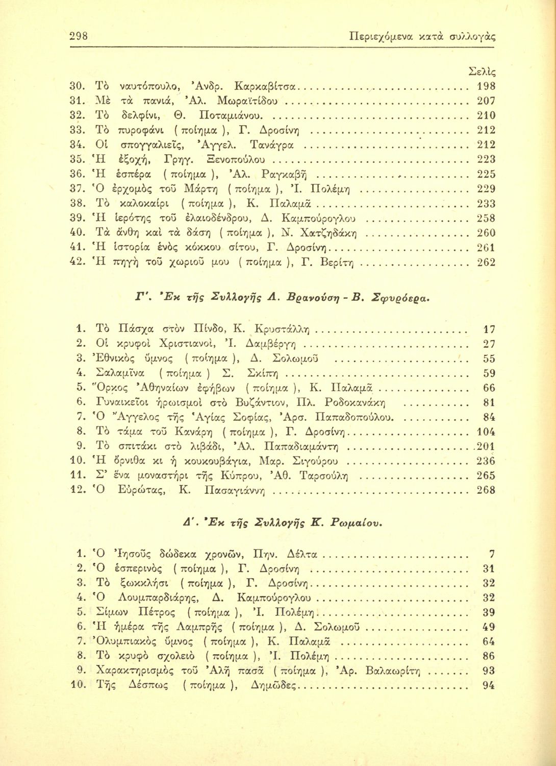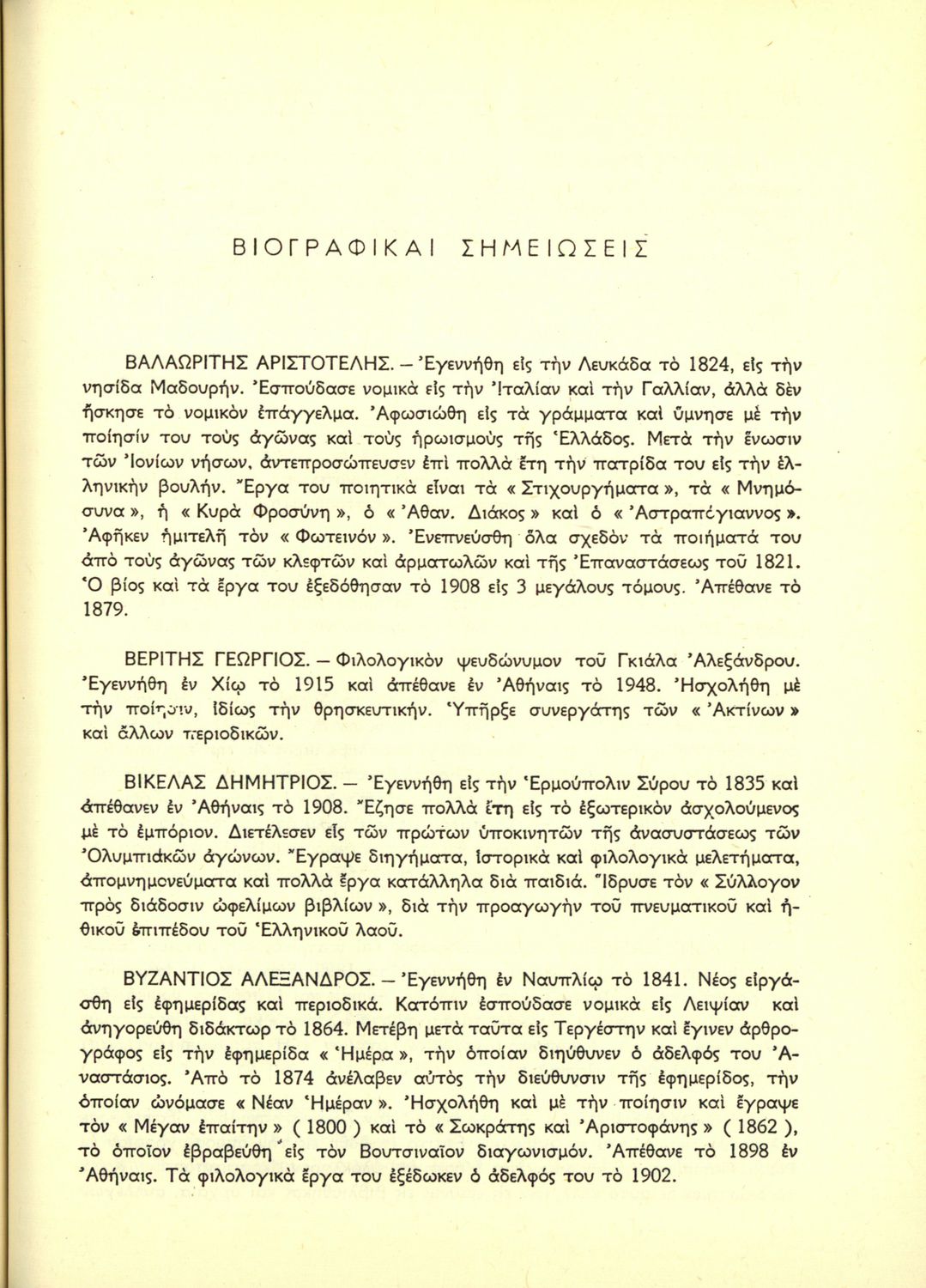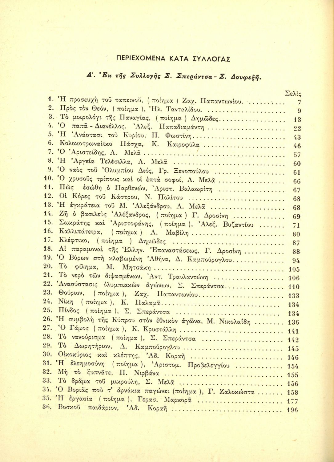 Σχολικό εγχειρίδιο Νέων Ελληνικών Β' Γυμνασίου που περιέχει ποιήματα και πεζά Ελλήνων συγγραφέων εμπνευσμένα από τη θρησκευτική, εθνική, οικογενειακή και κοινωνική ζωή και την ελληνική φύση. Περιέχει παράρτημα με βιογραφίες των συγγραφέων και λεξιλόγιο. Φέρει το σύμβολο της δικτατορίας.