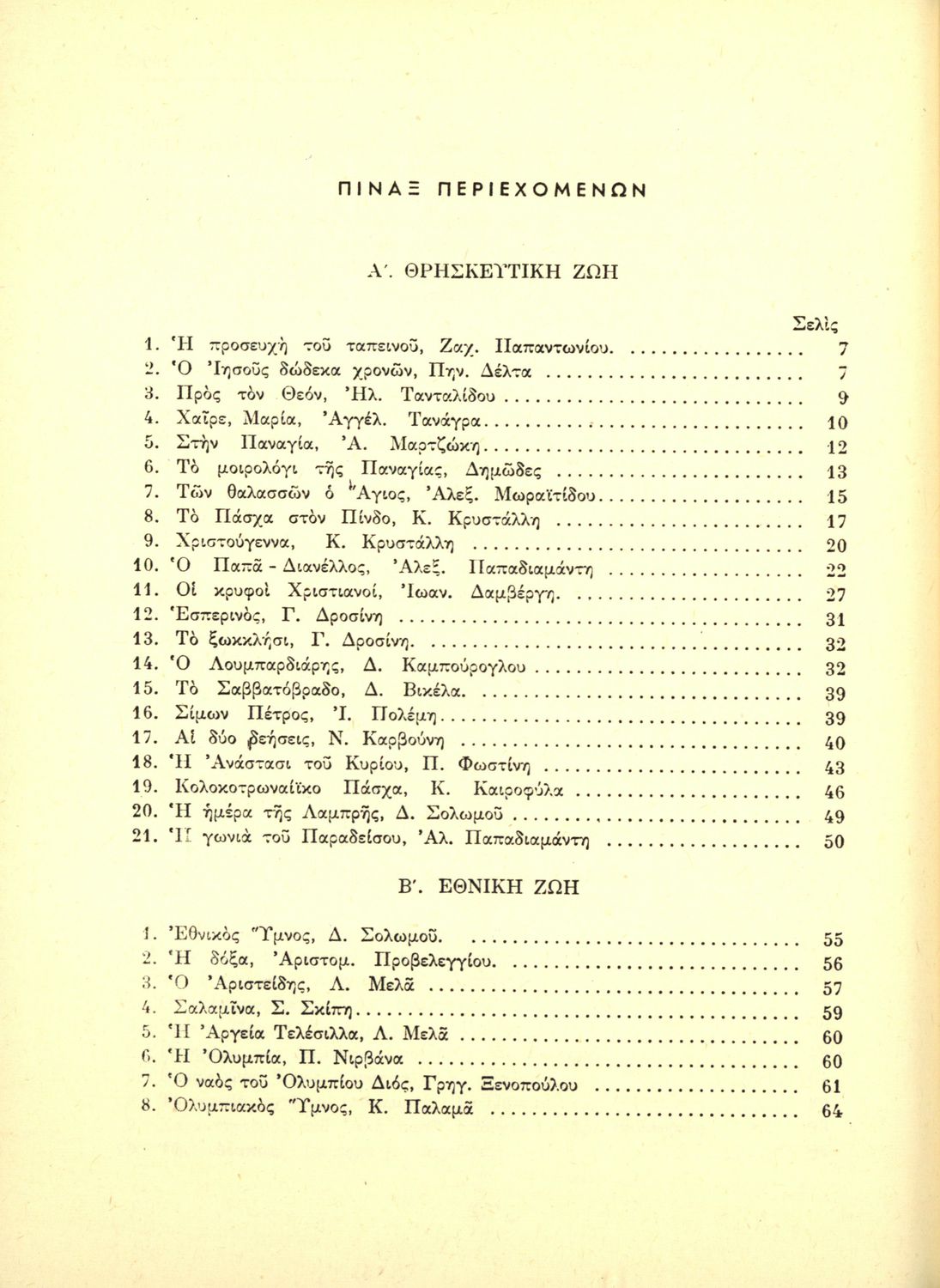 Σχολικό εγχειρίδιο Νέων Ελληνικών Δ΄ Γυμνασίου και Β΄ Αστικού Σχολείου που περιέχει πεζά και ποιήματα Ελλήνων συγγραφέων εμπνευσμένα από τη θρησκευτική και κοινωνική ζωή, την ελληνική μυθολογία, την αρχαία και
