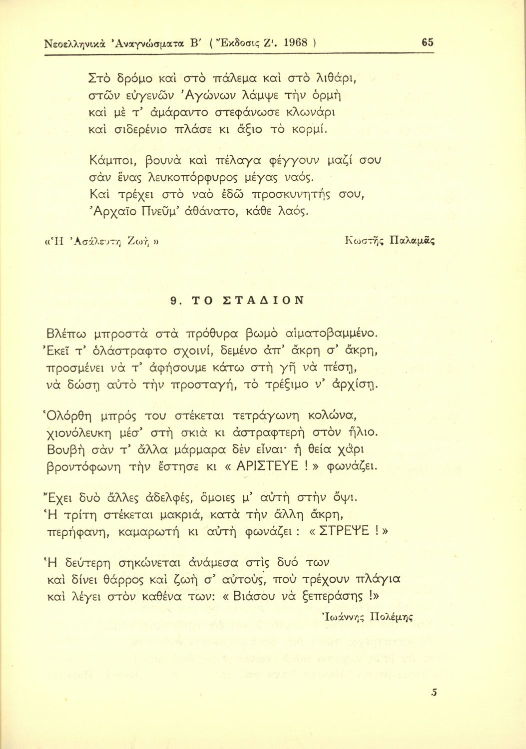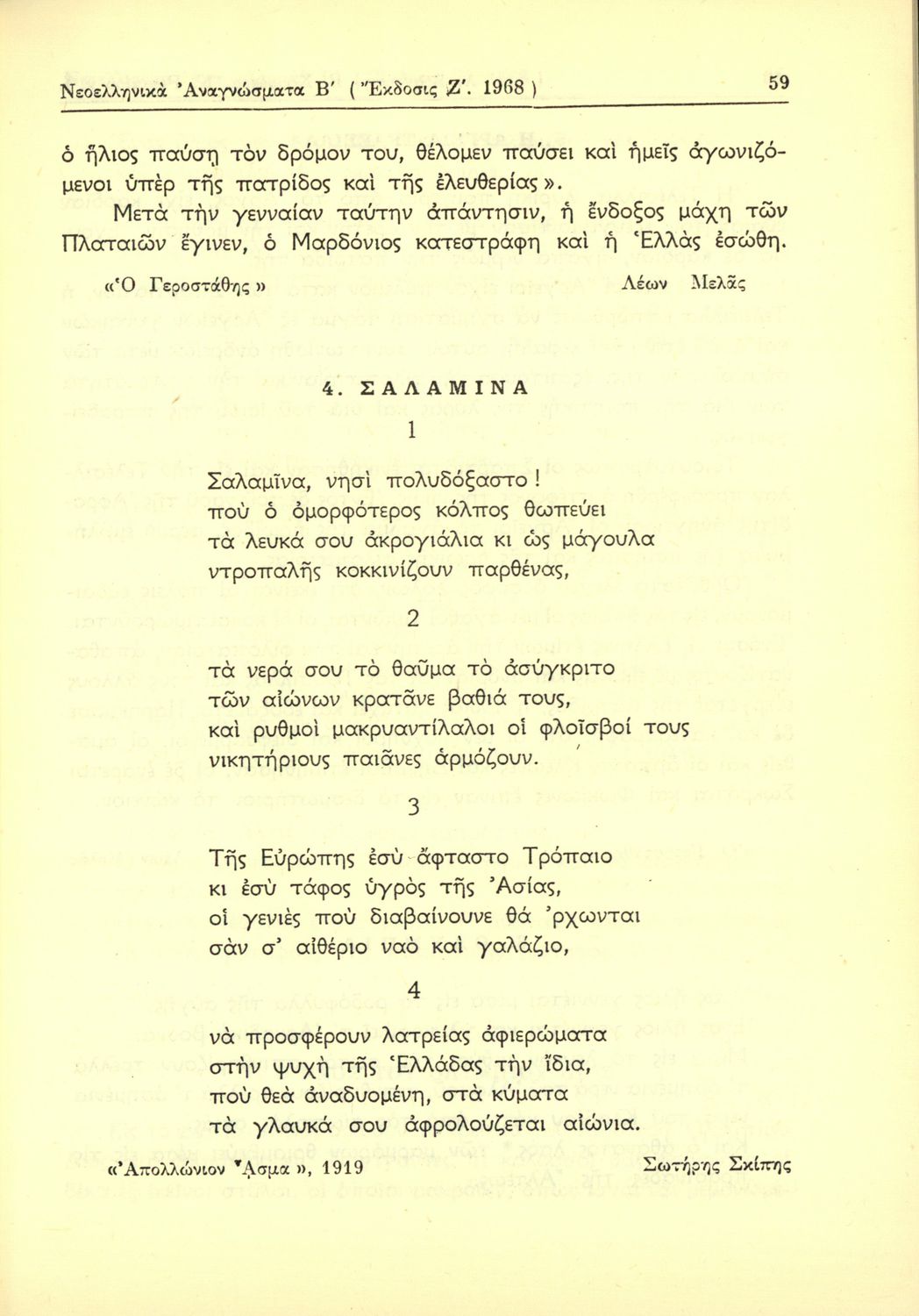 Σχολικό εγχειρίδιο Νέων Ελληνικών Β΄ Εξαταξίου Γυμνασίου που περιλαμβάνει που περιλαμβάνει ποιήματα και πεζά Ελλήνων συγγραφέων εμπνευσμένα από την αρχαία και σύγχρονη ελληνική ιστορία, την ελληνική φύση και ...