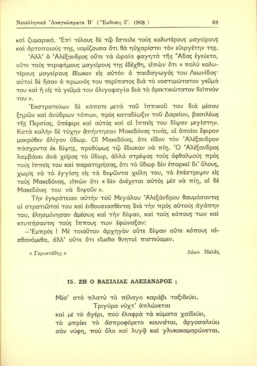 Σχολικό εγχειρίδιο Νέων Ελληνικών Β΄ Γυμνασίου που περιλαμβάνει ποιήματα και πεζά Ελλήνων συγγραφέων και δημοτικά τραγούδια εμπνευσμένα από την σύγχρονη ελληνική ιστορία, τη βυζαντινή ιστορία, την ελληνική ...